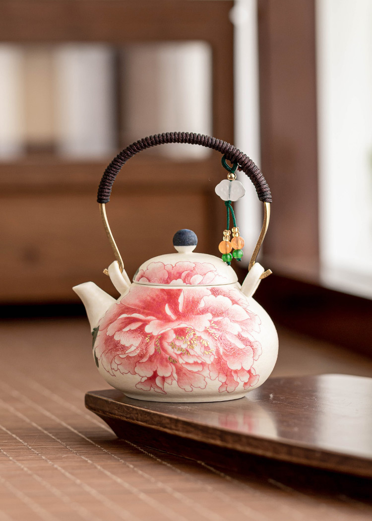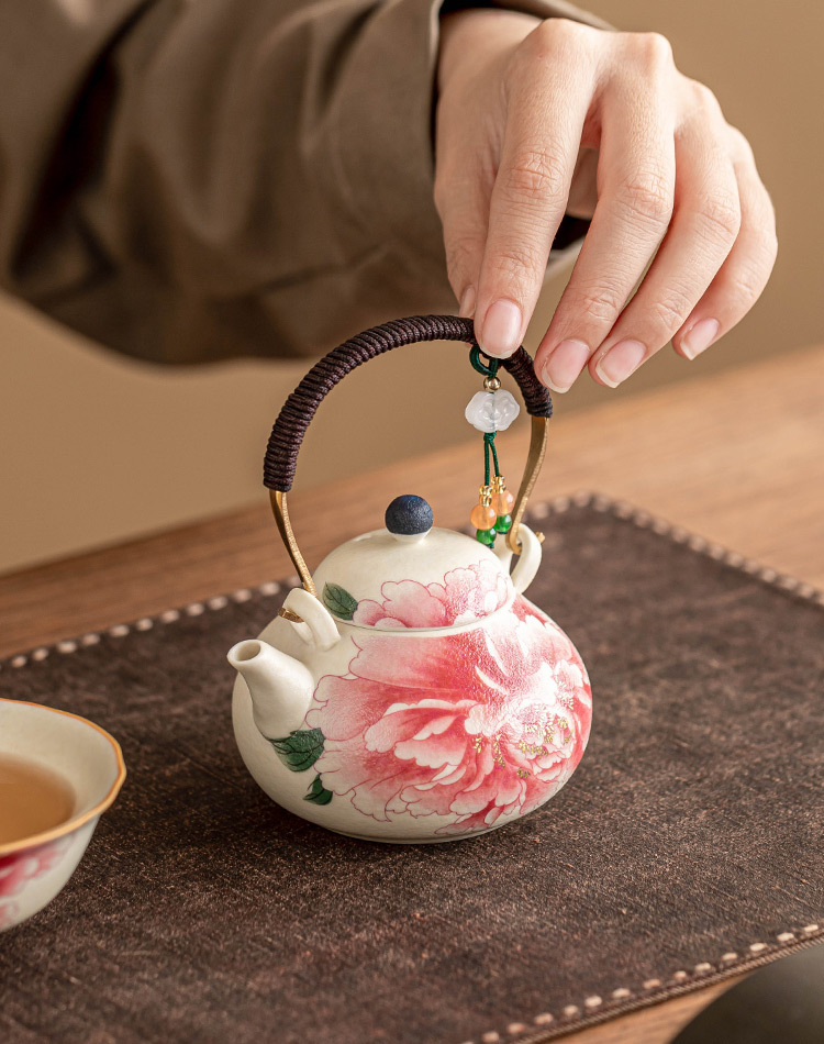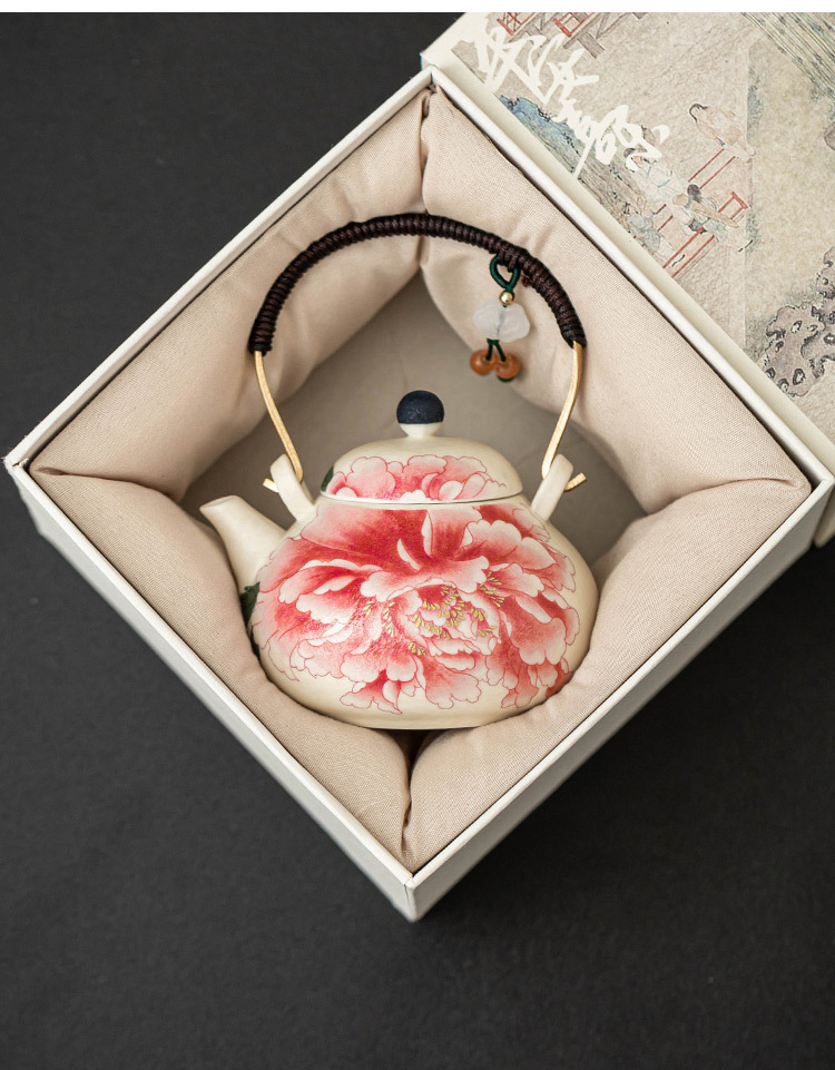- Ấm trà gốm trắng đá mỏ ấm trà mẫu đơn sơn vàng dụng cụ pha trà Kung Fu phong cách Trung Quốc gia dụng ấm đơn lọc