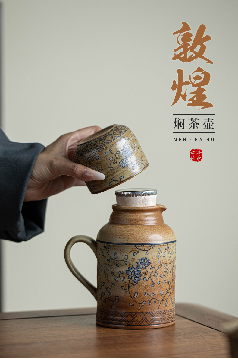 Ấm trà hầm Đôn Hoàng ấm trà gốm sứ dung tích lớn ấm đơn dụng cụ pha trà kung fu cổ điển văn phòng gia dụng ấm cách nhiệt pha trà