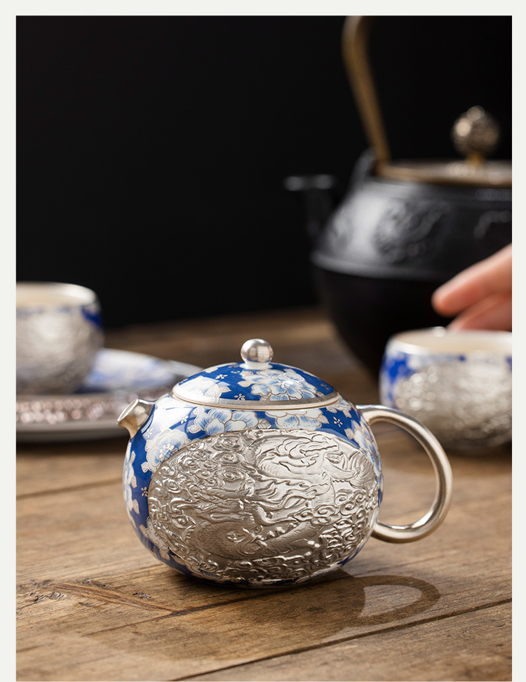 Ấm trà He Fusen mạ bạc Dragon and Phoenix Xishi cao cấp quà tặng sinh nhật nam nữ lãnh đạo người lớn tuổi quà tặng khách hàng
