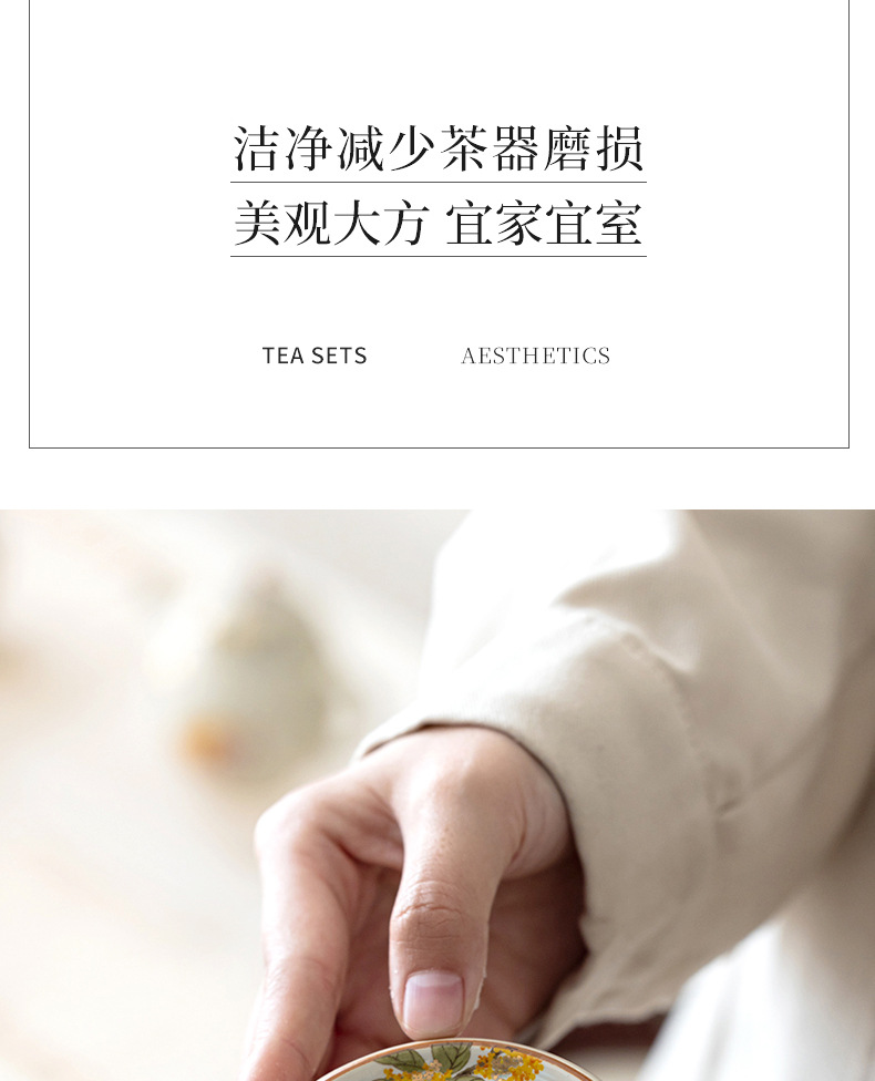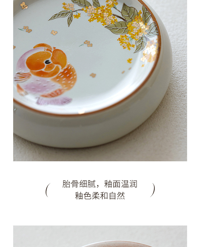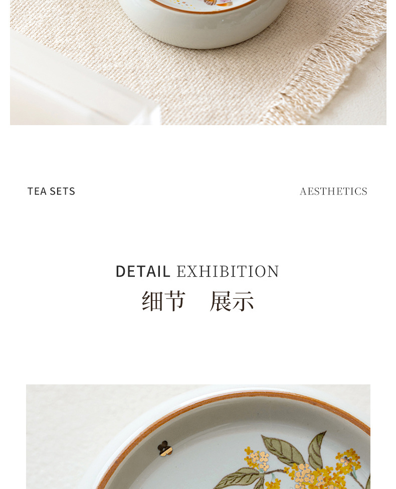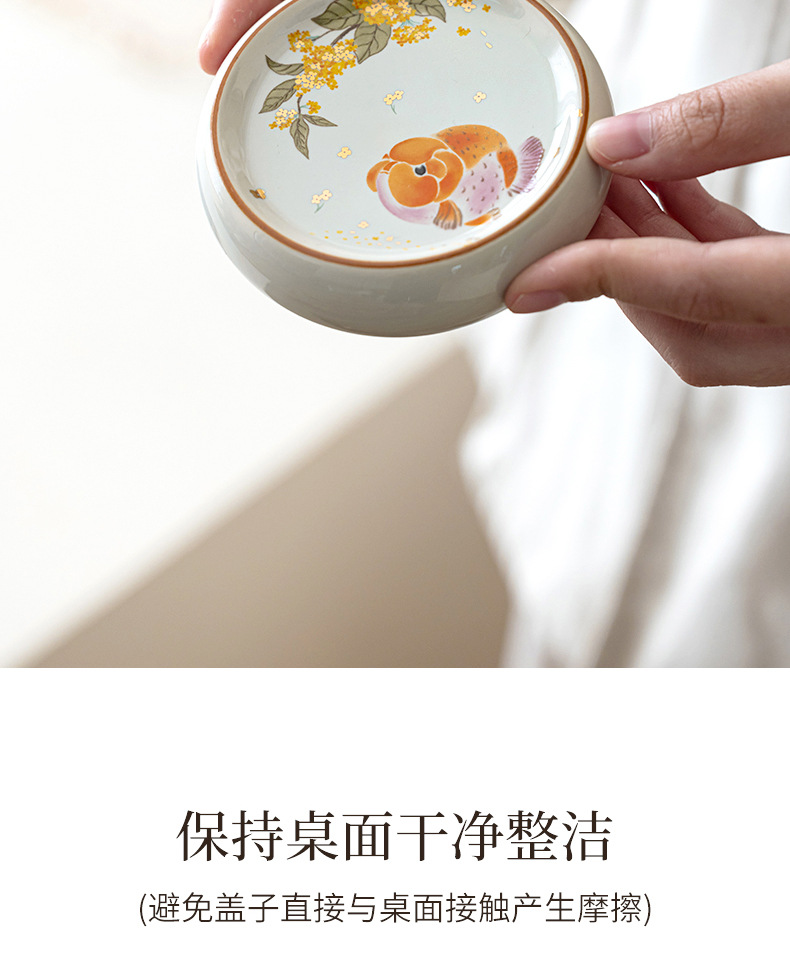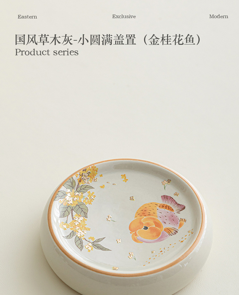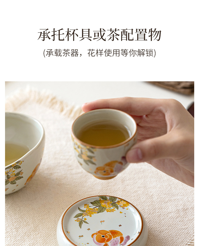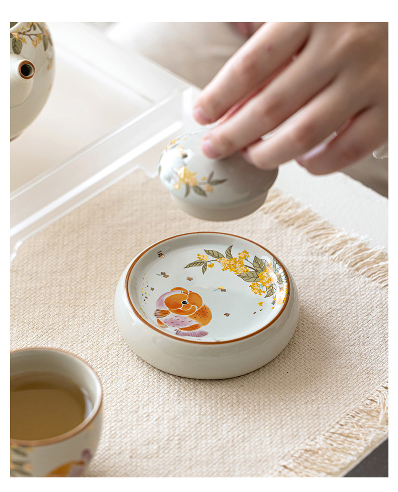 Ấm trà hình tròn có nắp đựng cá osmanthus màu xám thực vật phong cách dân tộc, cốc trà, đệm cách nhiệt, phụ kiện bộ trà Kung Fu gốm sứ gia dụng