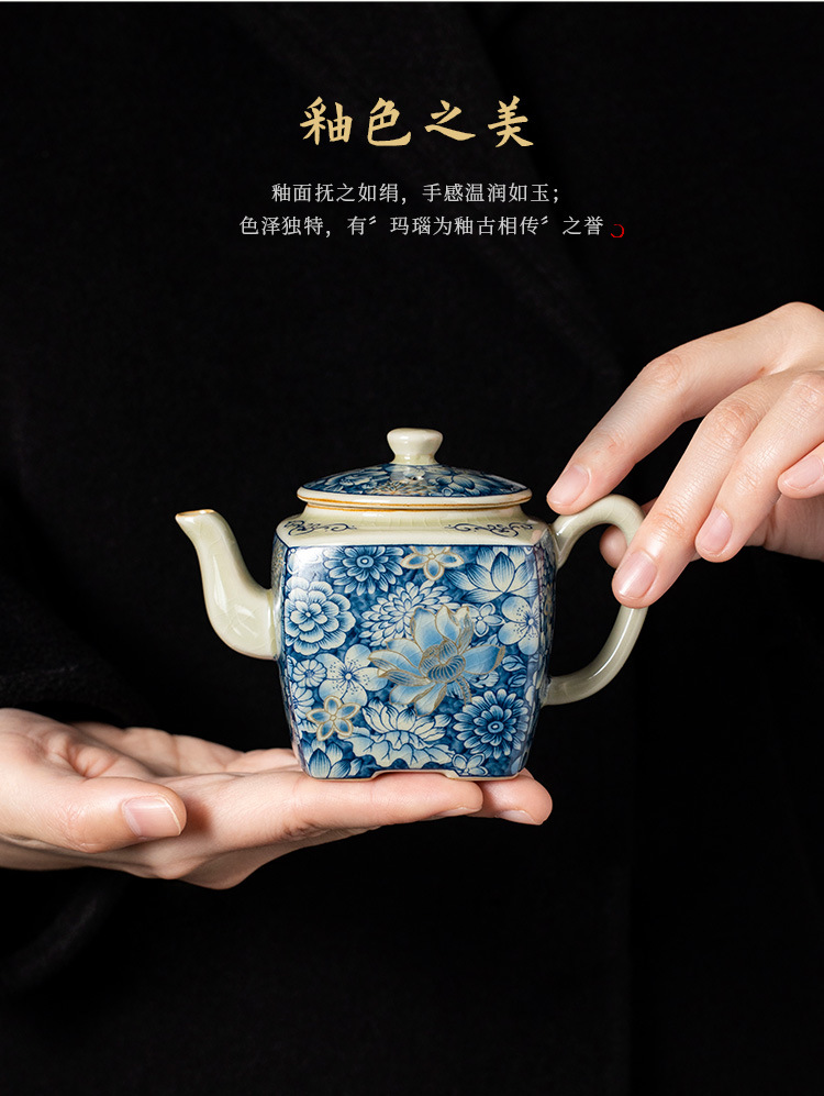 - Ấm trà hình vuông Hán Hoa vàng Ru Kiln ấm trà ấm trà tinh tế cao cấp gia dụng ấm trà bộ trà gốm sứ nhà sản xuất bán buôn