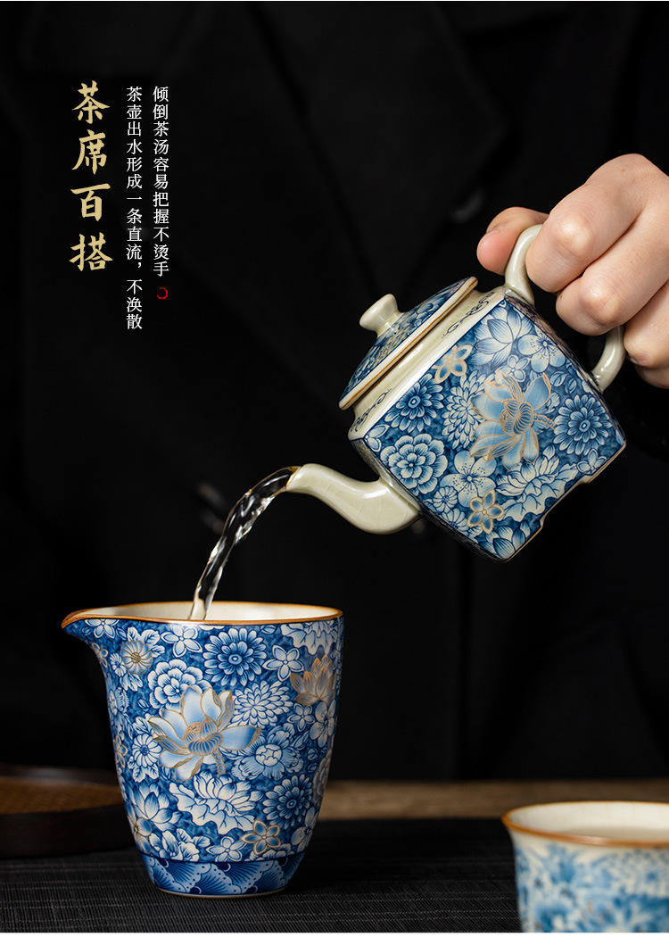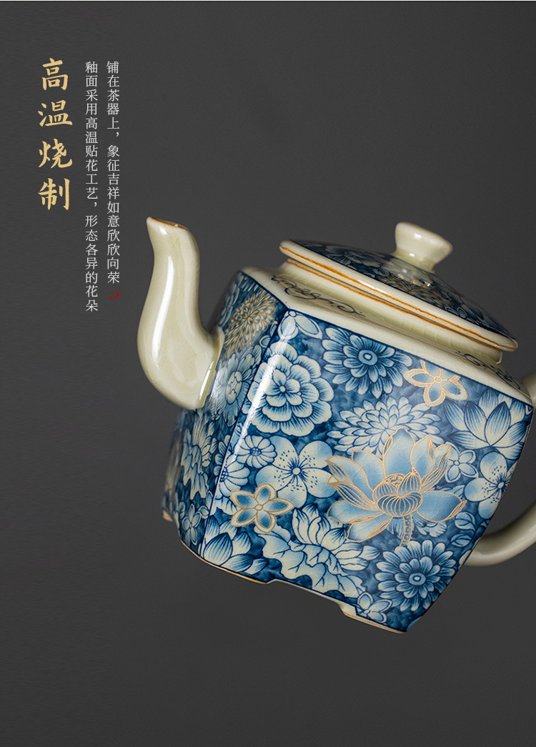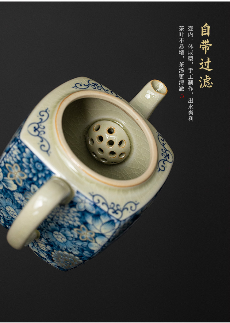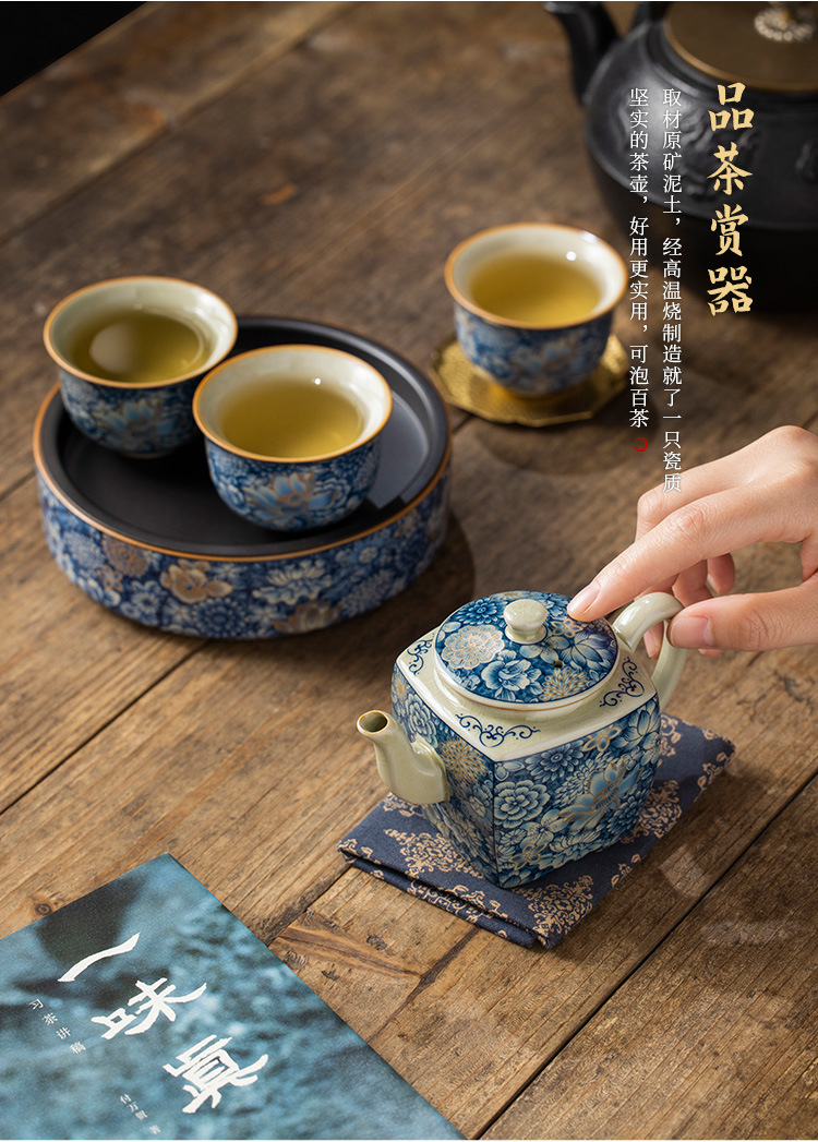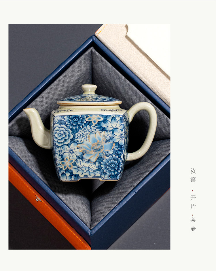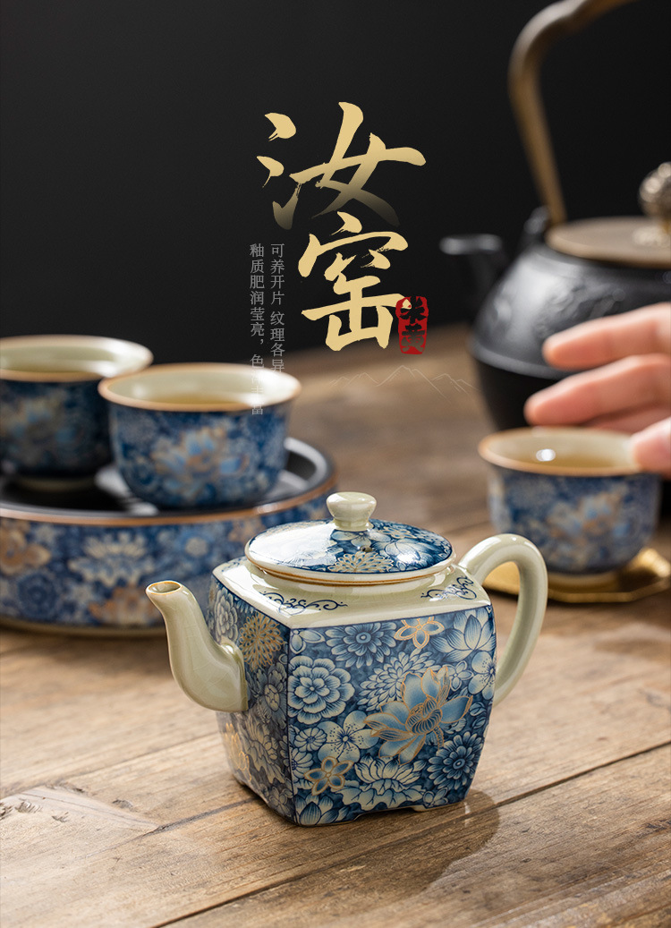 Ấm trà hình vuông Hán Hoa vàng Ru Kiln ấm trà ấm trà tinh tế cao cấp gia dụng ấm trà bộ trà gốm sứ nhà sản xuất bán buôn