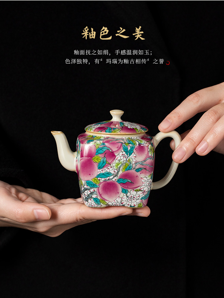 Ấm trà hình vuông Trung Quốc Ru Lò nung Wantao kiểu mới 2024 ấm trà ấm trà cao cấp gia dụng dụng cụ pha trà bộ trà Kung Fu