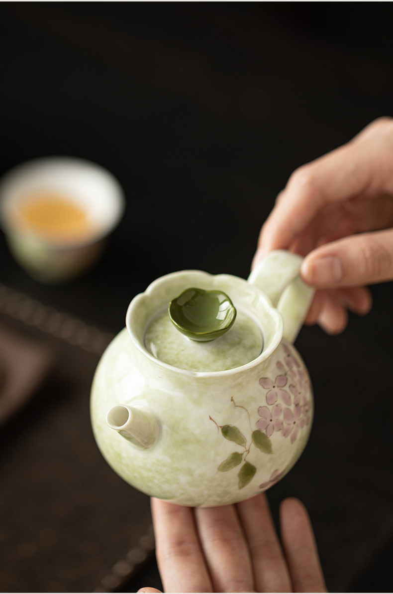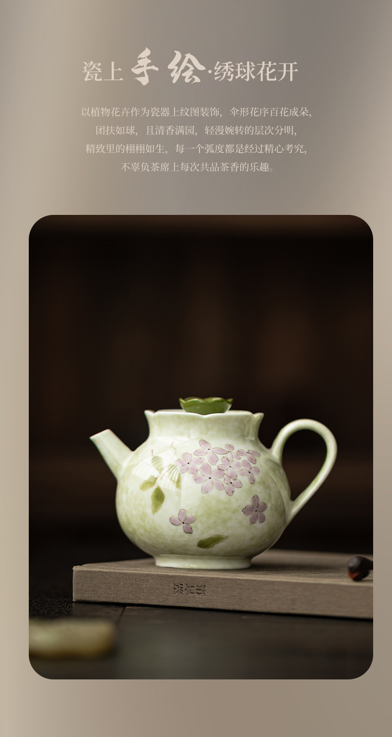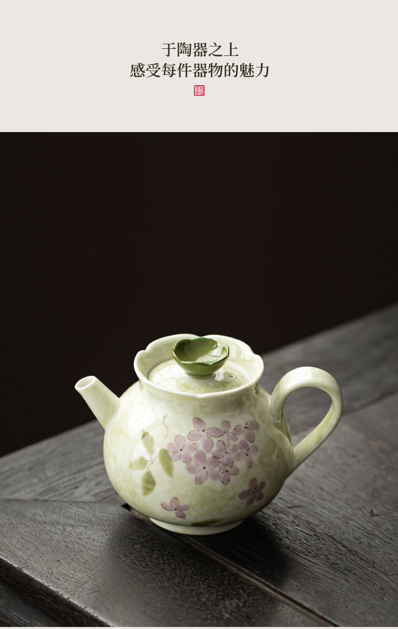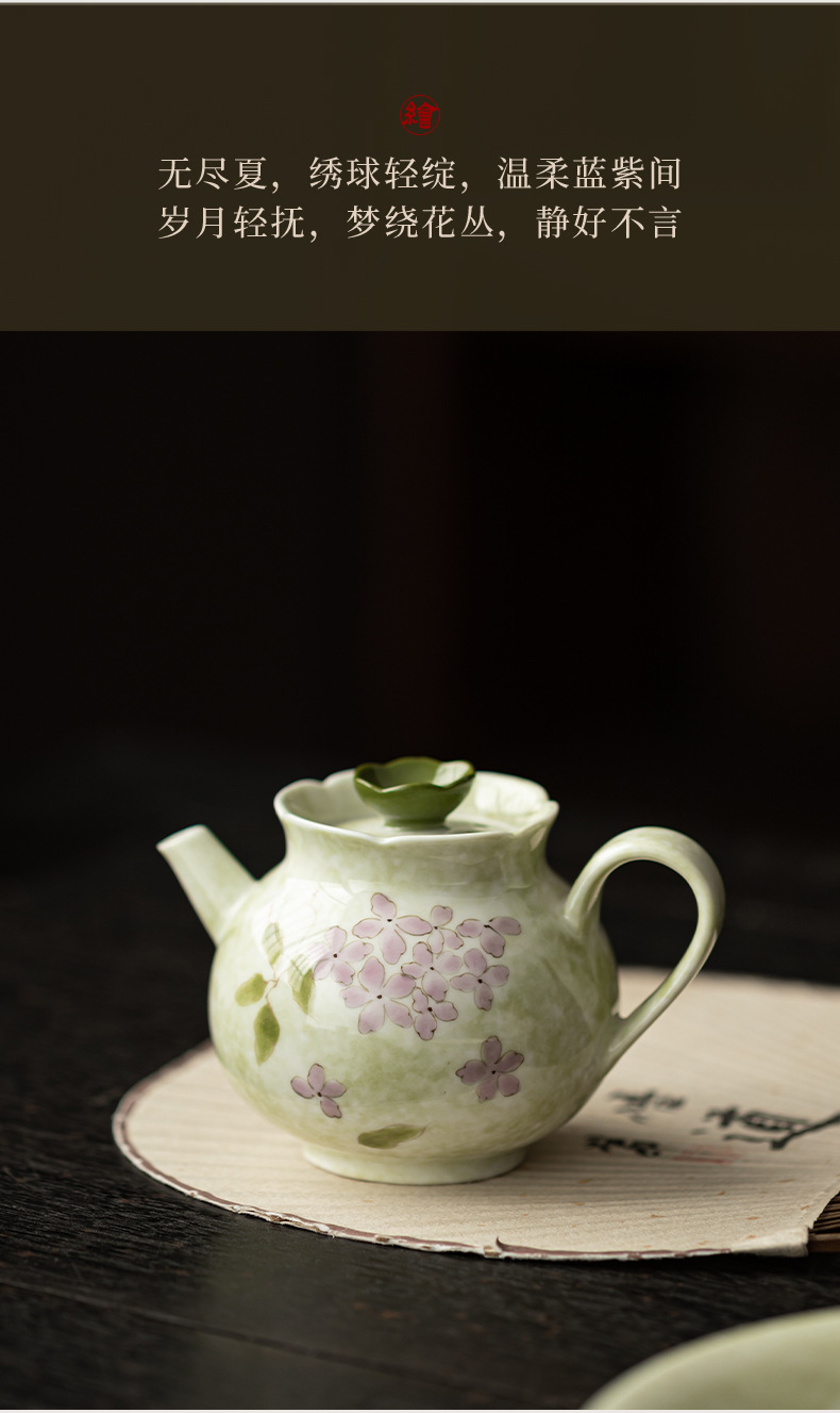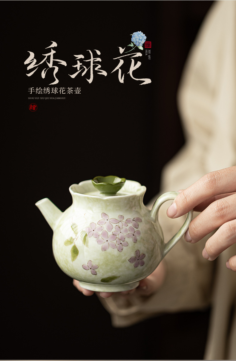 Ấm trà hoa cẩm tú cầu vẽ tay dụng cụ trà Kung Fu gốm sứ gia dụng ấm trà đơn phong cách Trung Quốc có lọc để tặng quà cho nữ