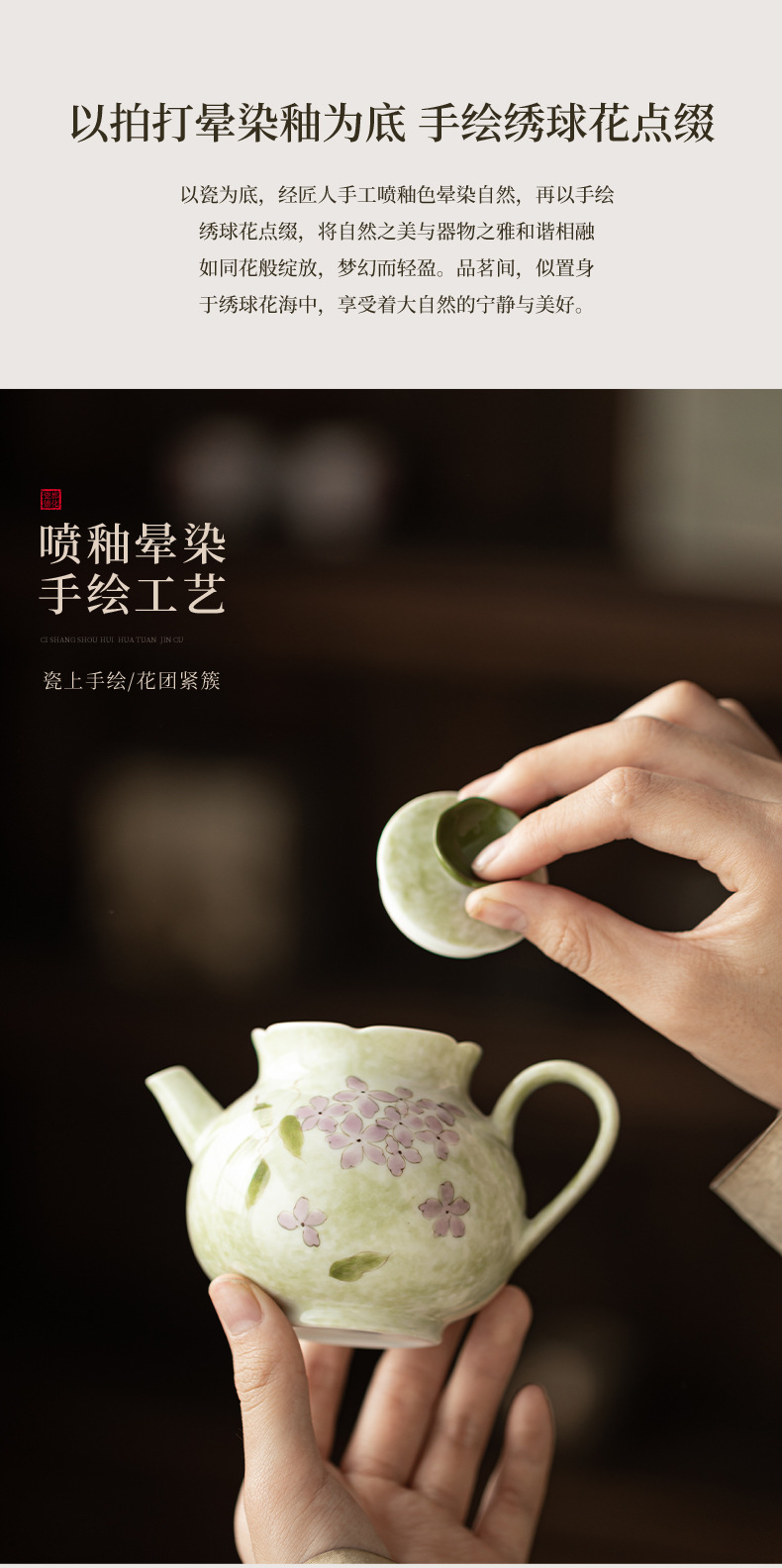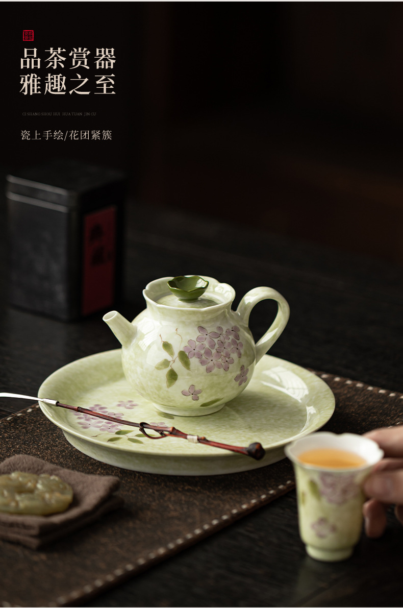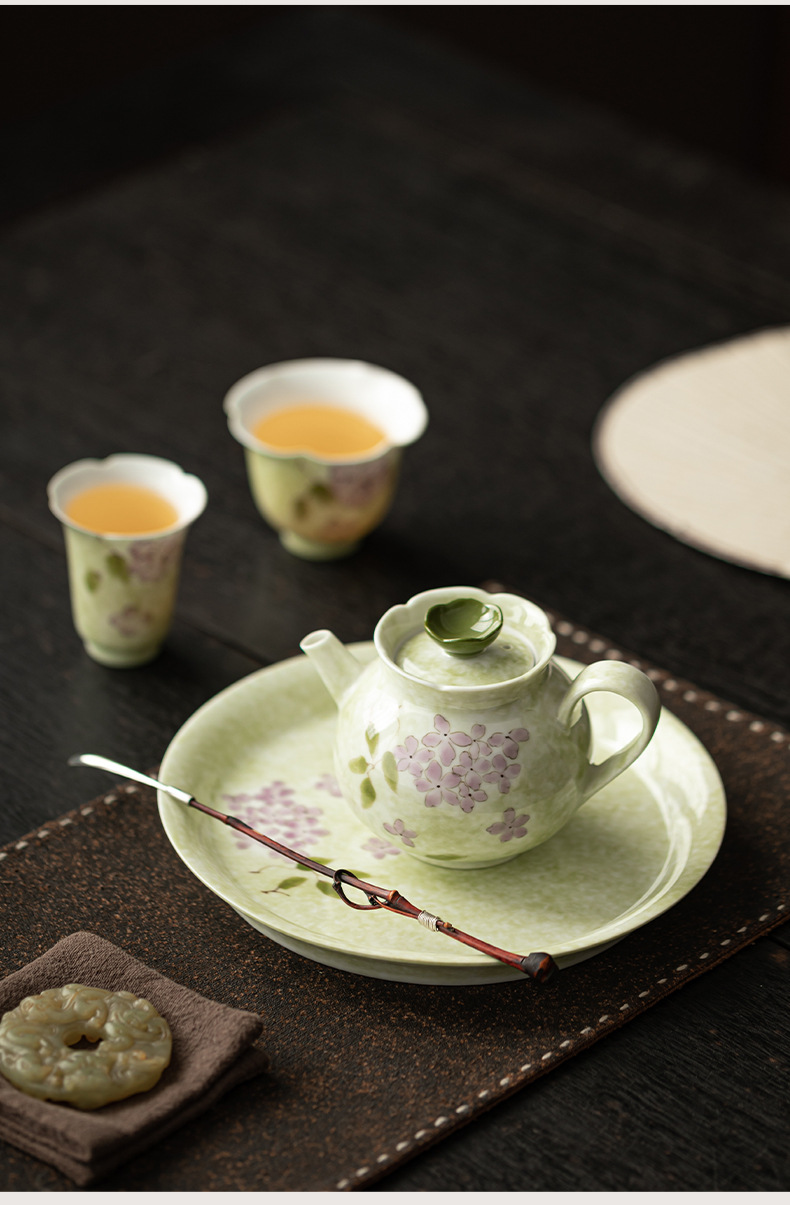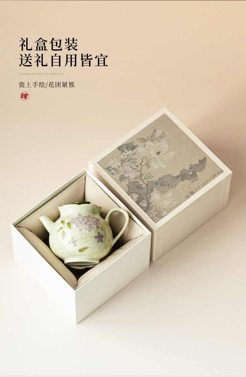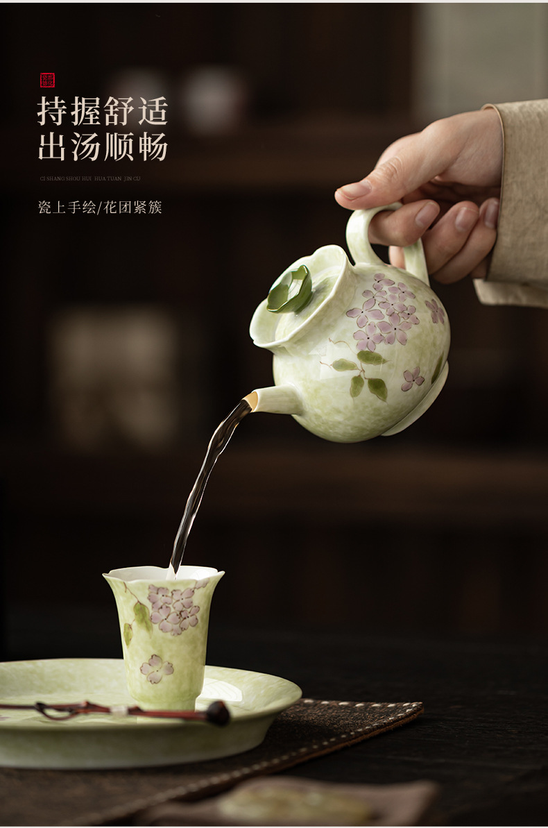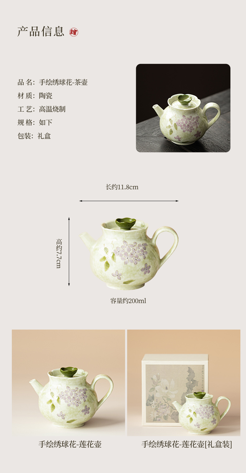 Ấm trà hoa cẩm tú cầu vẽ tay dụng cụ trà Kung Fu gốm sứ gia dụng ấm trà đơn phong cách Trung Quốc có lọc để tặng quà cho nữ