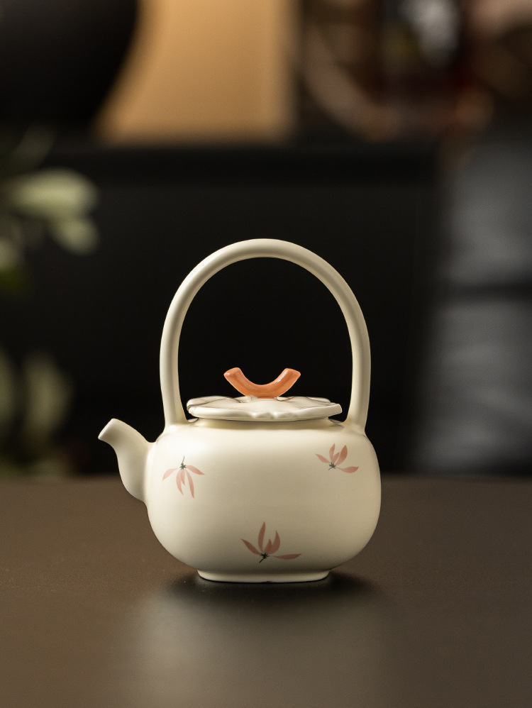 Ấm trà hoa lan tráng men màu vàng ấm trà ấm trà dụng cụ trà Kung Fu gốm sứ gia dụng ấm trà pha trà dung tích lớn cao cấp