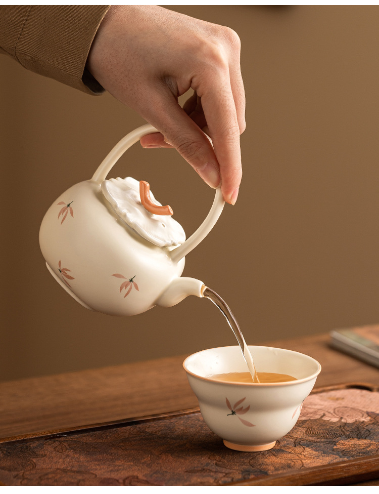 - Ấm trà hoa lan tráng men màu vàng ấm trà ấm trà dụng cụ trà Kung Fu gốm sứ gia dụng ấm trà pha trà dung tích lớn cao cấp