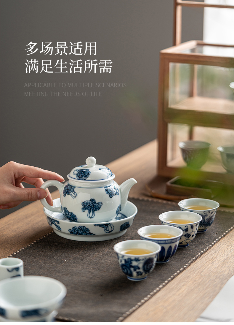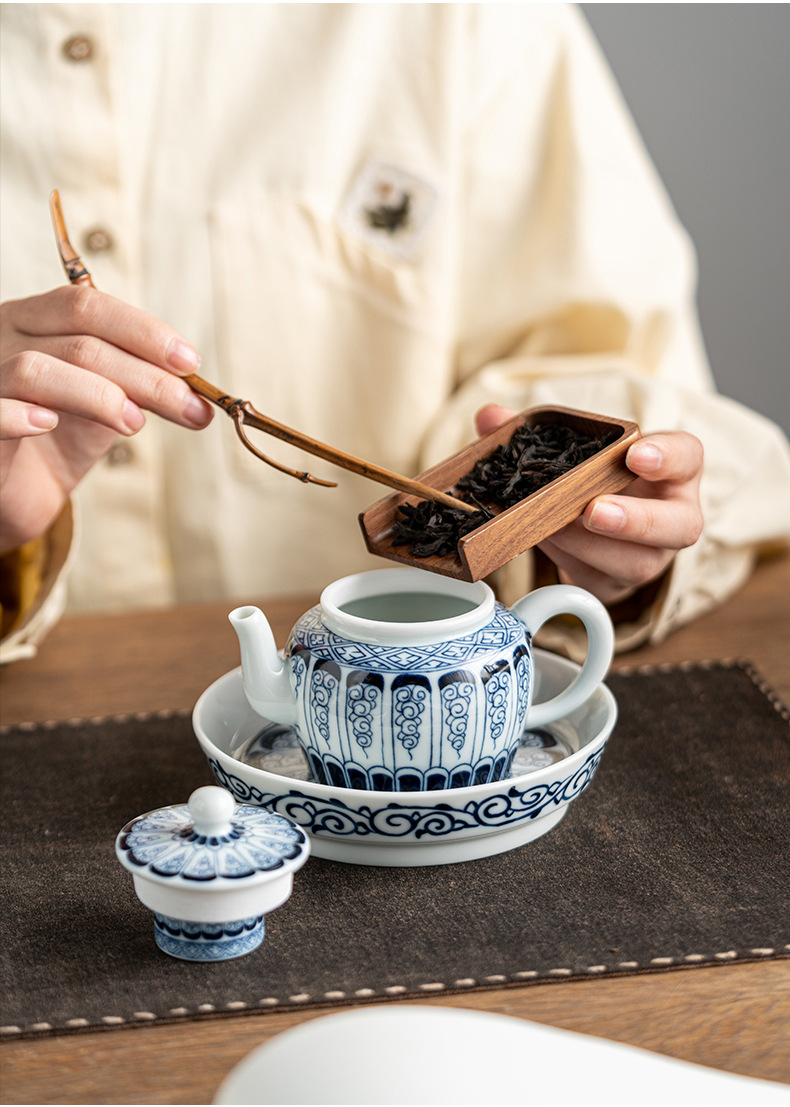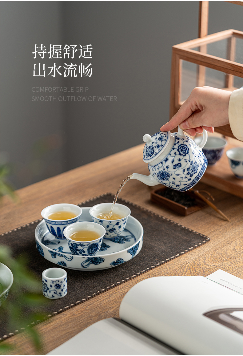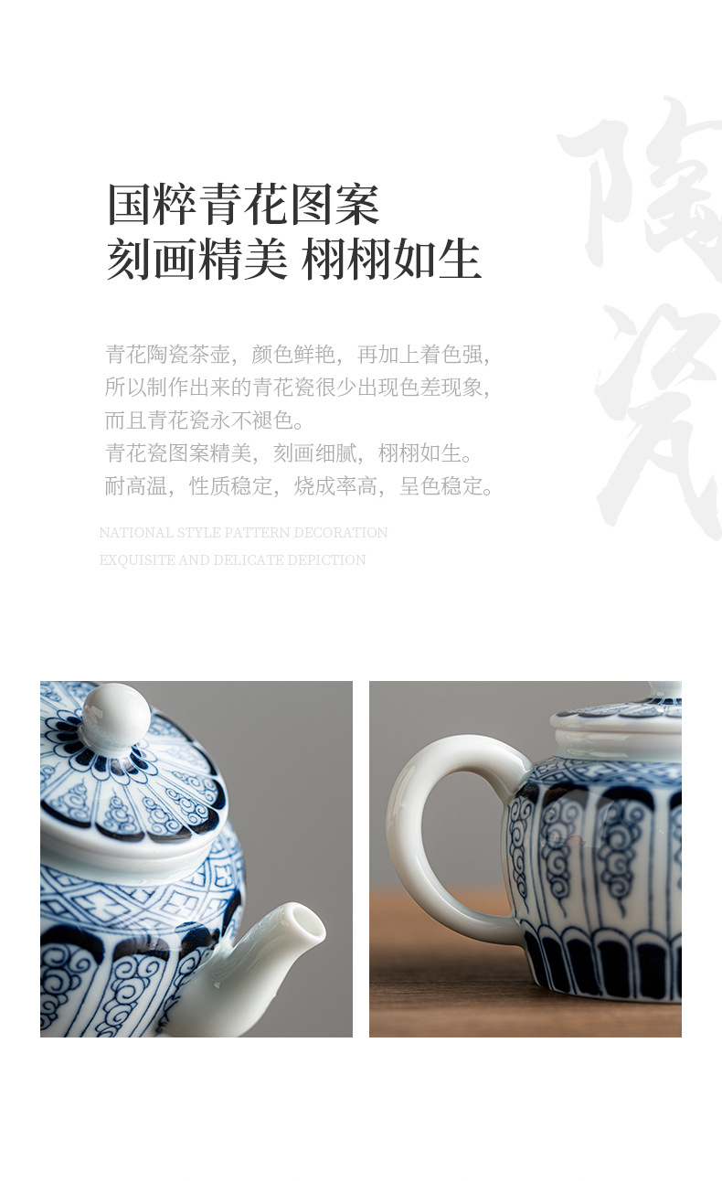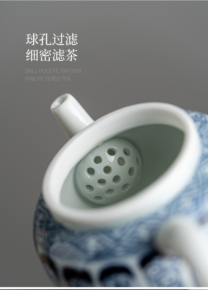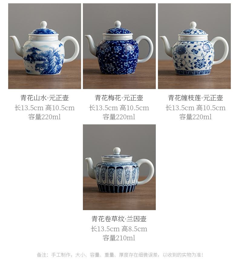 - Ấm trà hoa văn phong cảnh sứ trắng xanh tráng men kiểu Trung Quốc dụng cụ pha trà sứ Kung Fu gia dụng ấm đơn mini tráng men