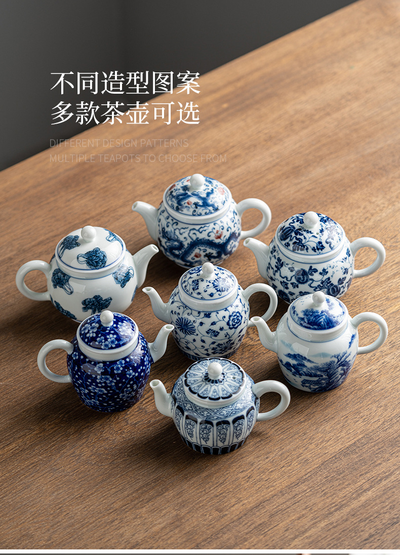 Ấm trà hoa văn phong cảnh sứ trắng xanh tráng men kiểu Trung Quốc dụng cụ pha trà sứ Kung Fu gia dụng ấm đơn mini tráng men