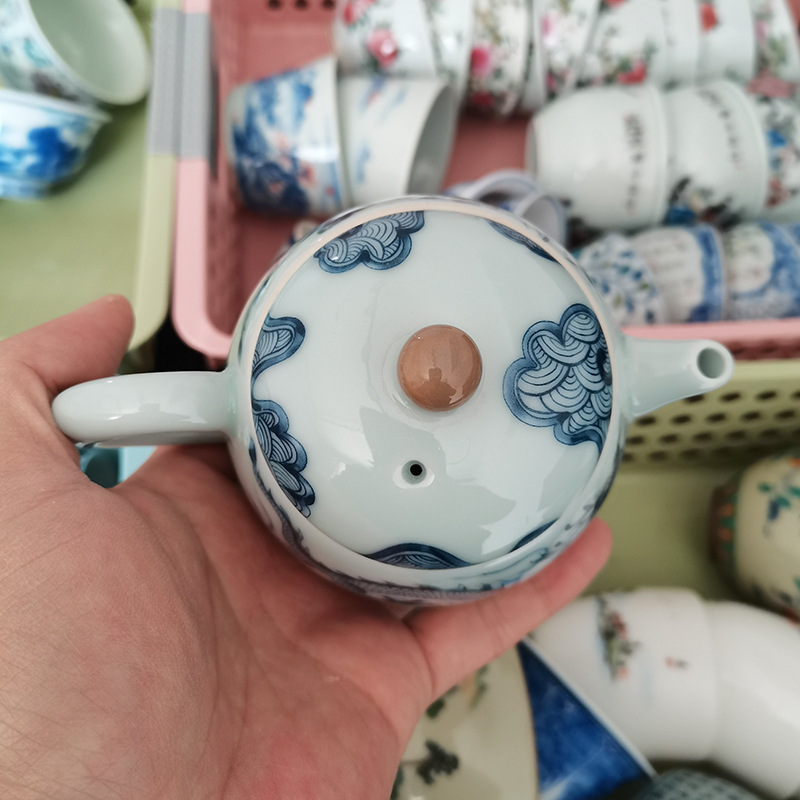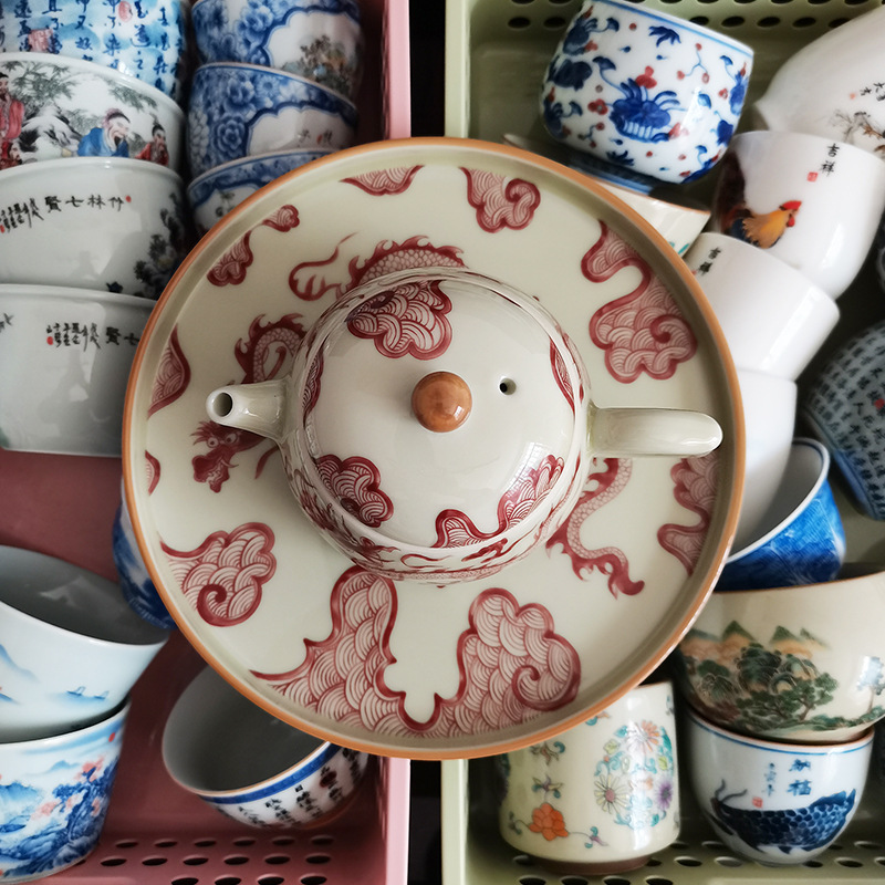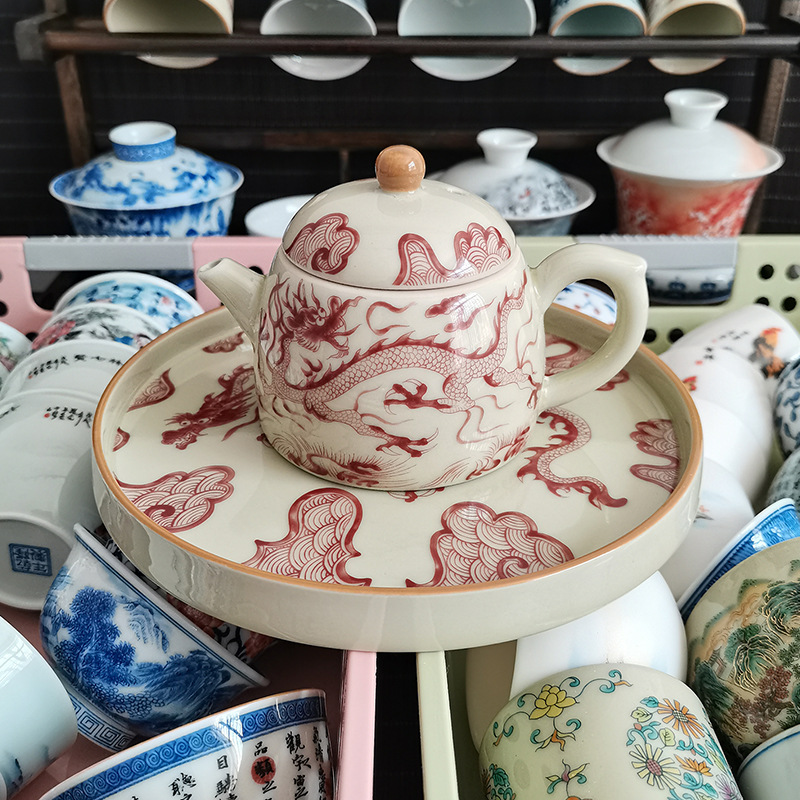 Ấm trà hoa văn rồng trắng gốm sứ Jingdezhen ấm lọc bộ trà Kung Fu gia dụng cao cấp ấm pha trà có khay đựng trà