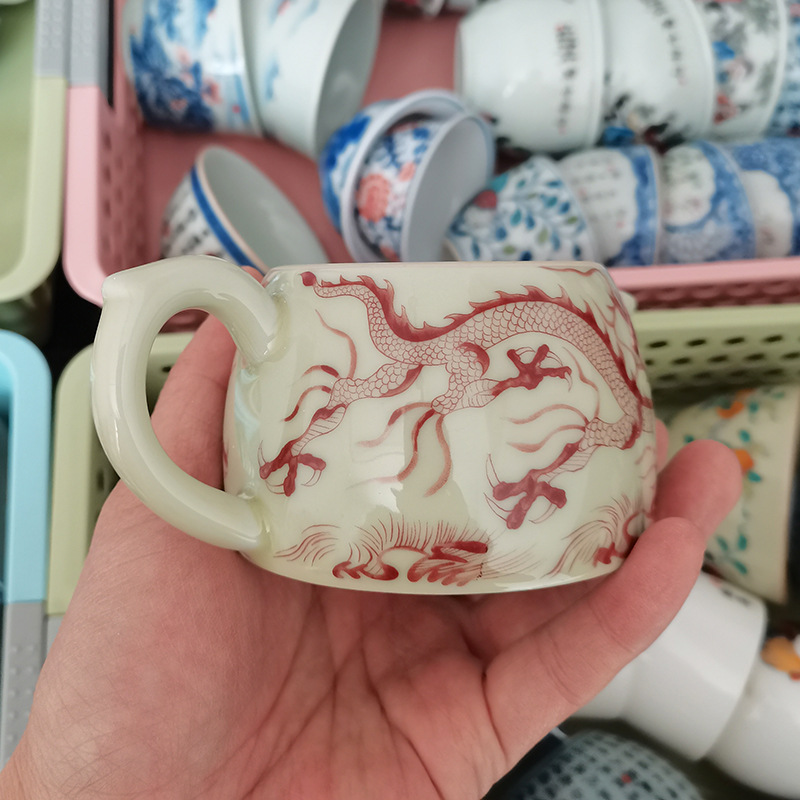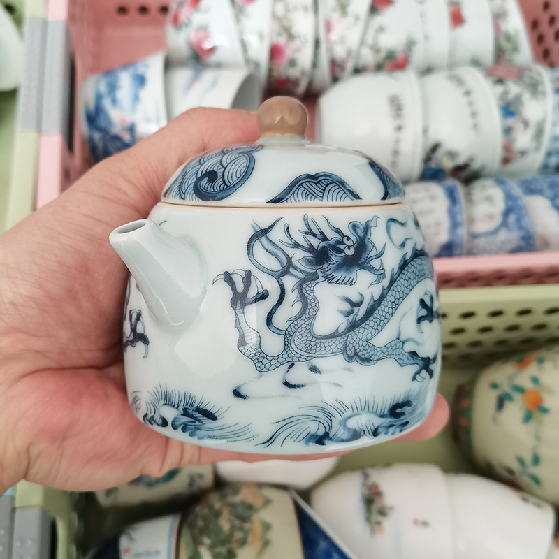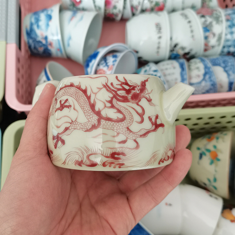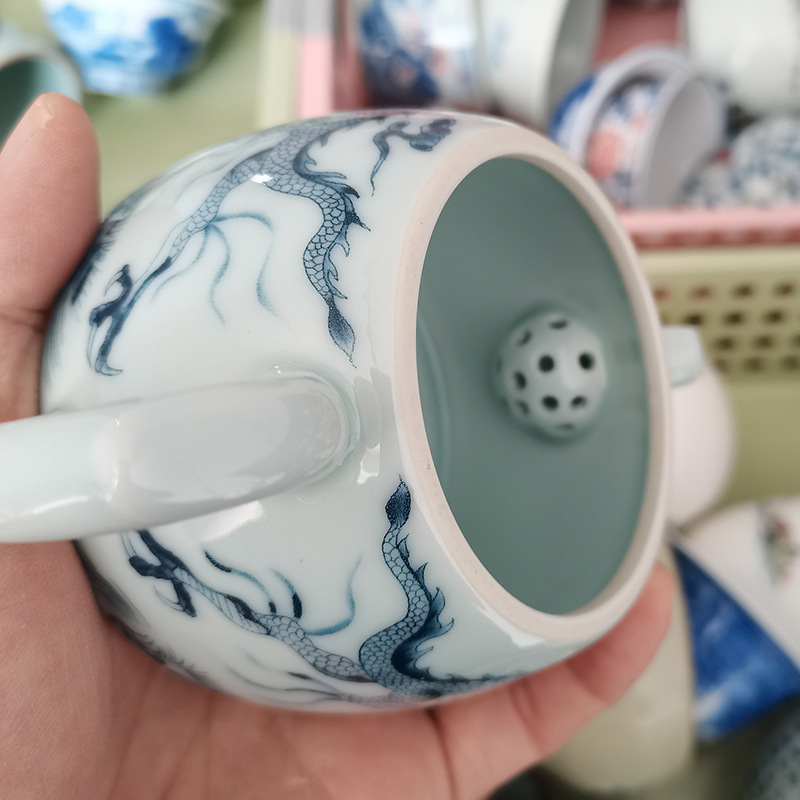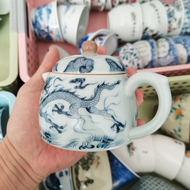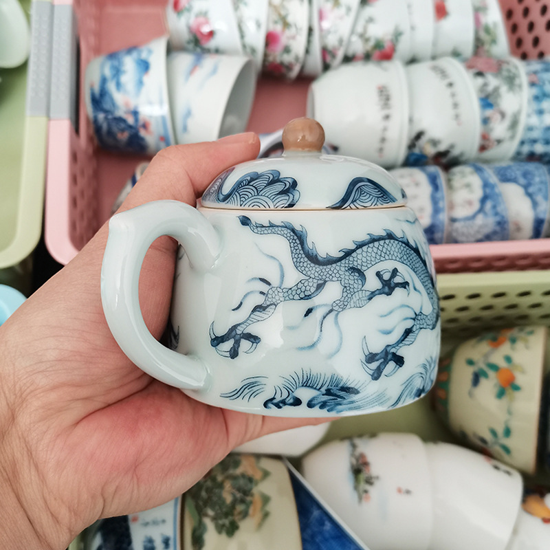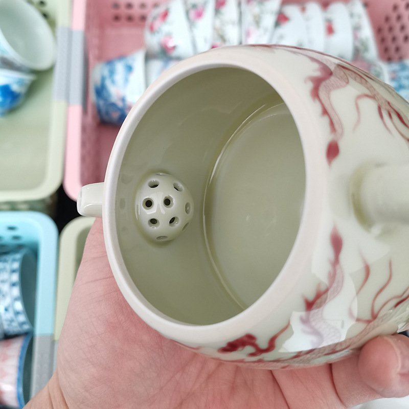 - Ấm trà hoa văn rồng trắng gốm sứ Jingdezhen ấm lọc bộ trà Kung Fu gia dụng cao cấp ấm pha trà có khay đựng trà