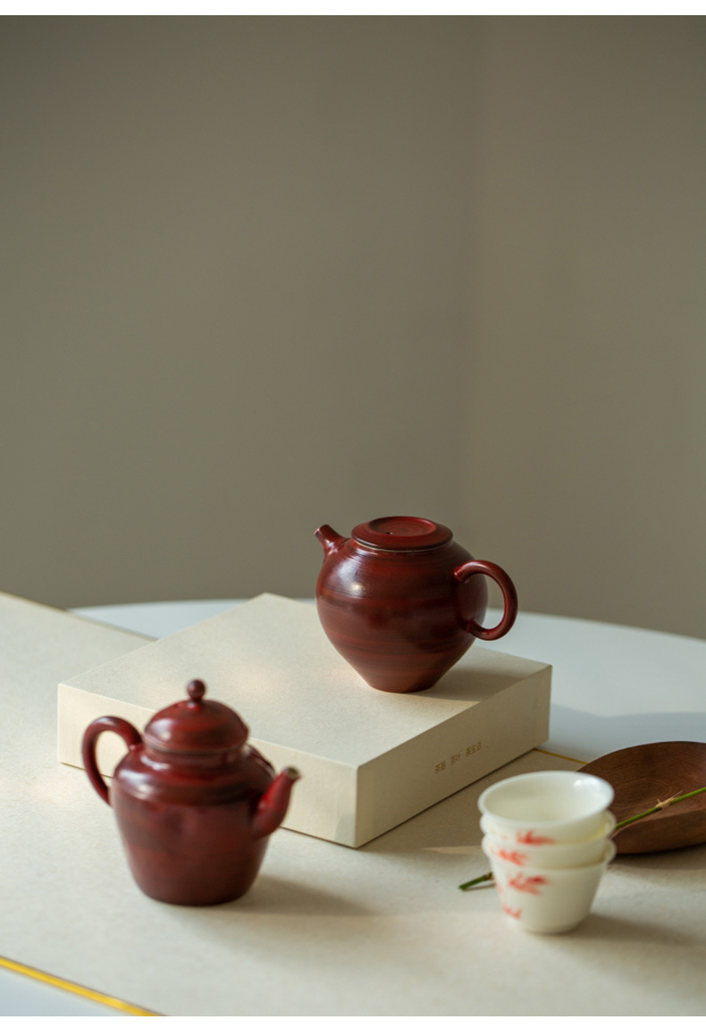 Ấm trà hồng, bộ trà gốm phong cách Wabi-jifeng, ấm trà thủ công gia dụng kiểu Nhật, ấm trà pha trà dung tích lớn