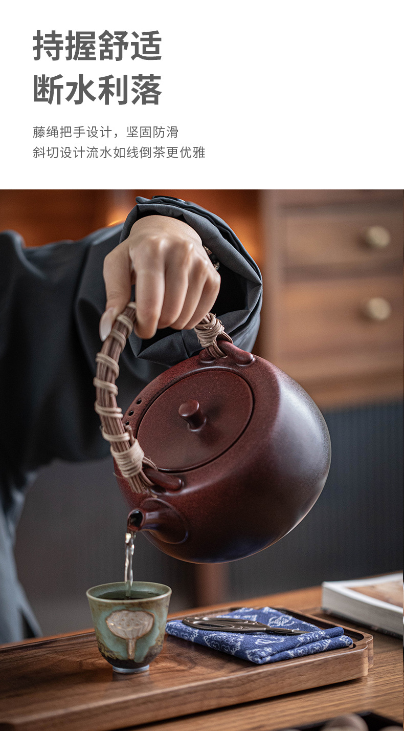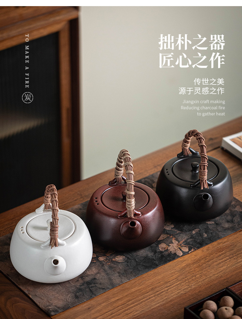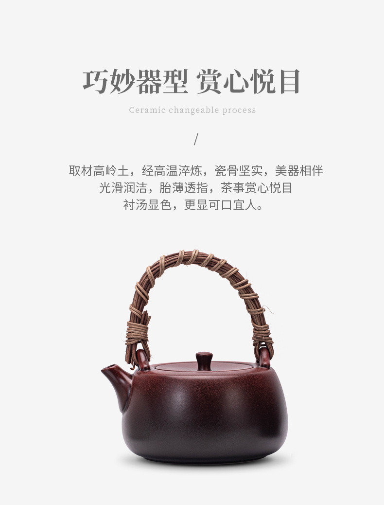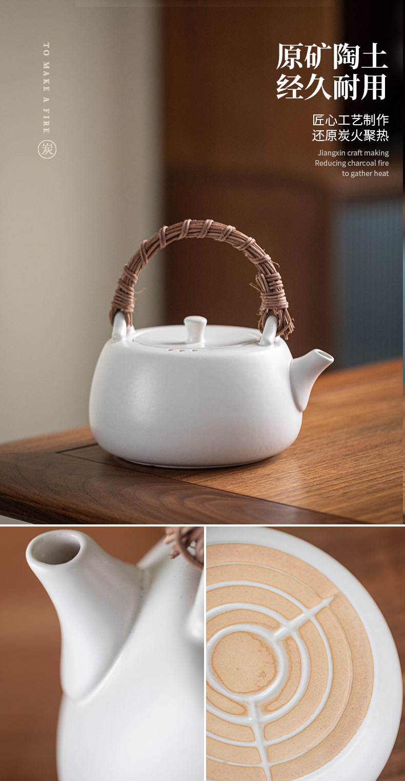 Ấm trà Kung Fu gốm sứ thủ công ấm trà Kung Fu gia dụng ấm trà đơn dệt mây đơn giản