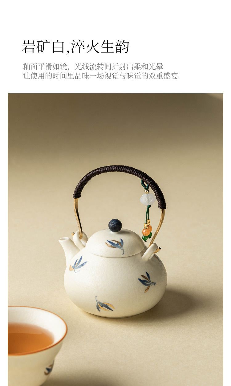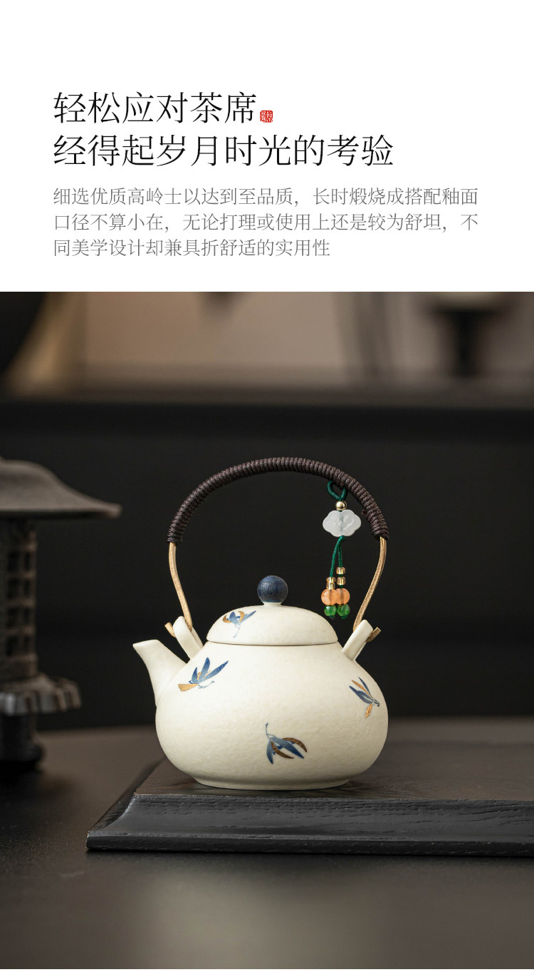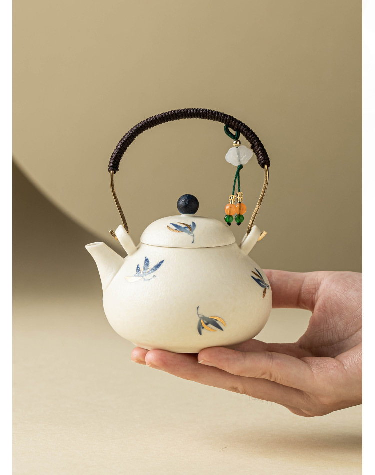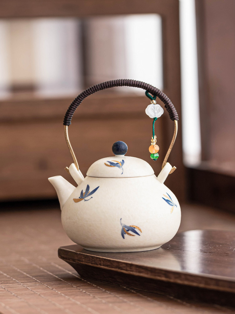 Ấm trà lan hồ điệp vàng vẽ màu trắng mỏ đá ấm trà gốm sứ cao cấp gia dụng ấm trà nhỏ trang nhã ấm đơn