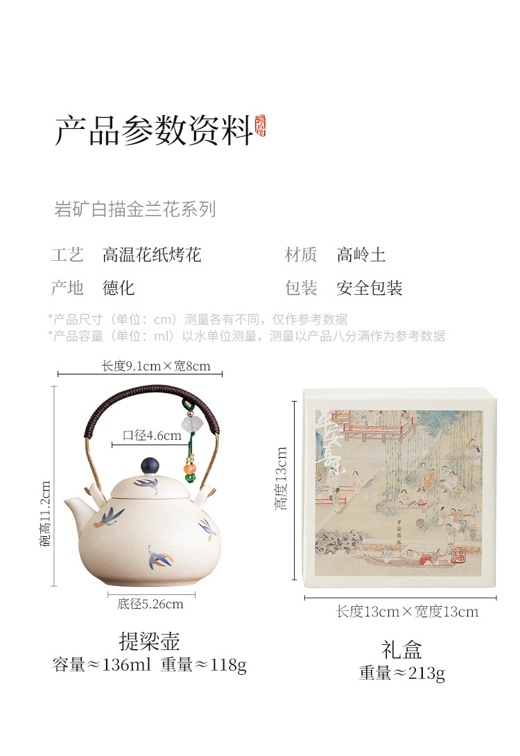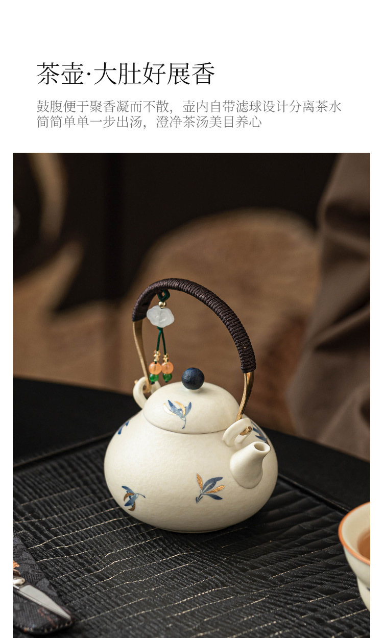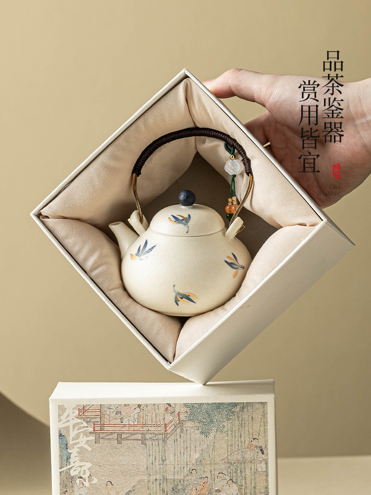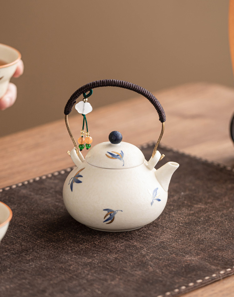 Ấm trà lan hồ điệp vàng vẽ màu trắng mỏ đá ấm trà gốm sứ cao cấp gia dụng ấm trà nhỏ trang nhã ấm đơn
