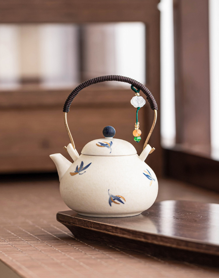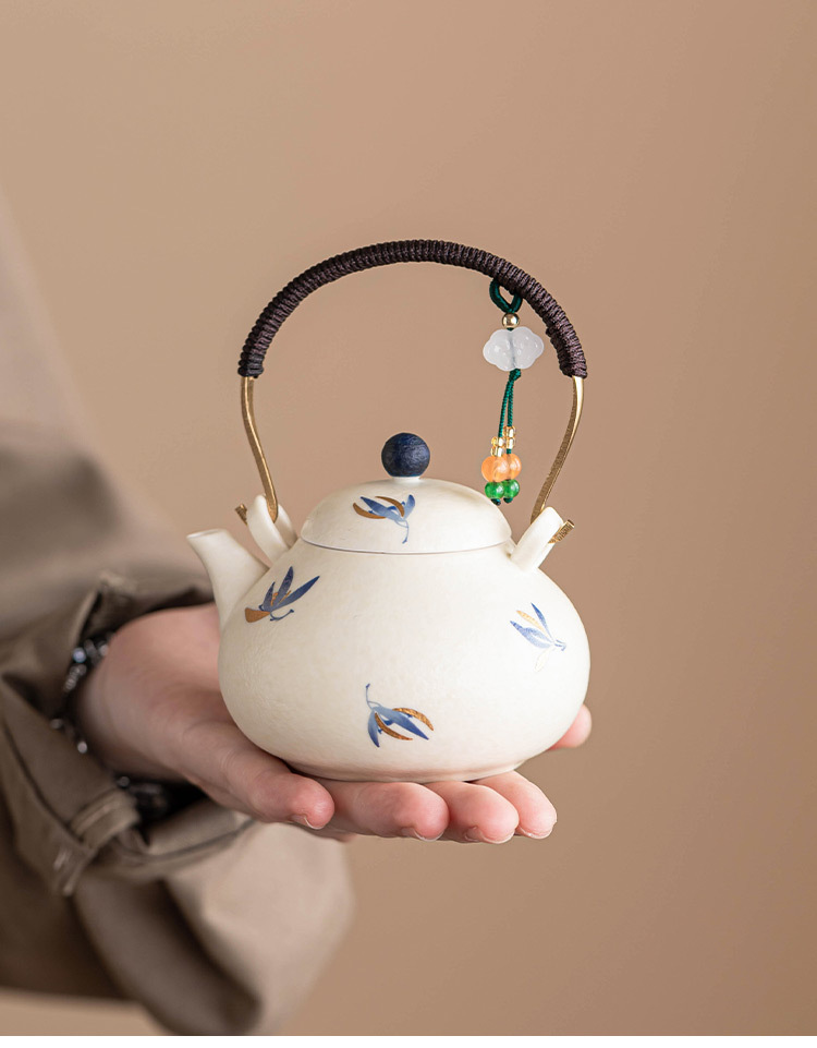 - Ấm trà lan hồ điệp vàng vẽ màu trắng mỏ đá ấm trà gốm sứ cao cấp gia dụng ấm trà nhỏ trang nhã ấm đơn