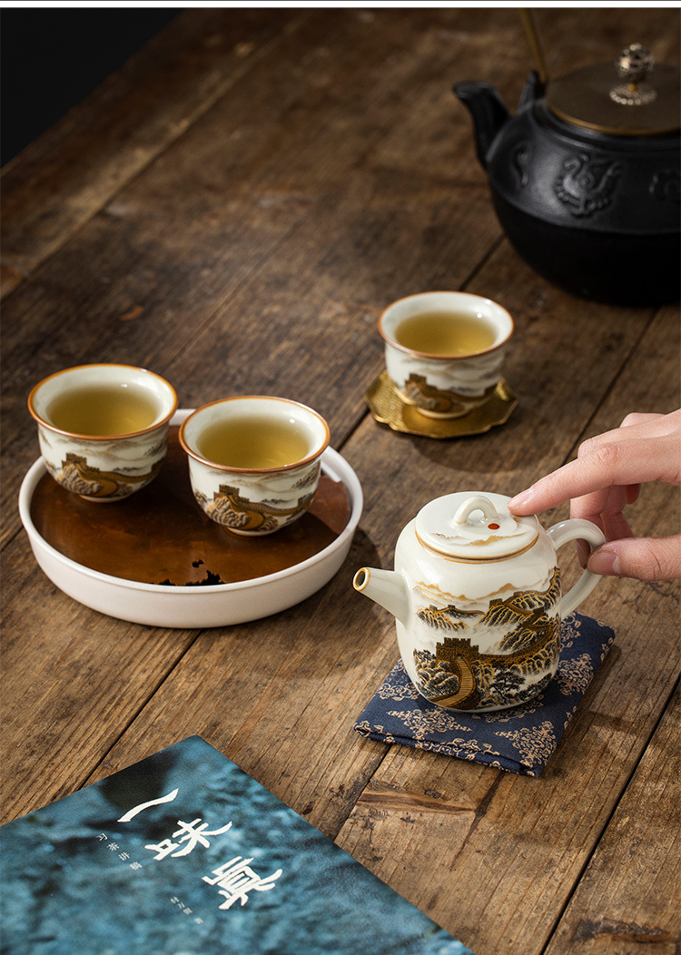Ấm trà lớn có hình vuông, ấm trà công phu, ấm trà, dụng cụ pha trà gốm sứ gia dụng, ấm trà