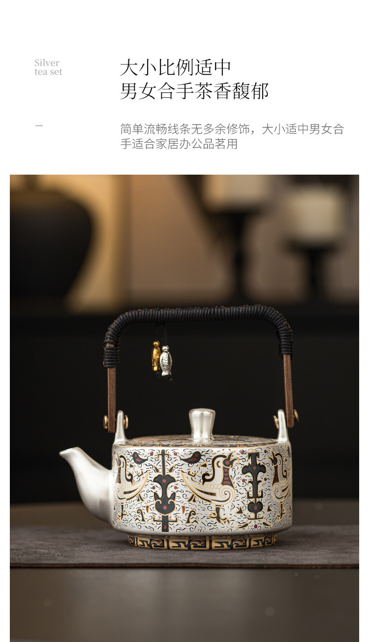 - Ấm trà mạ bạc 999 ấm trà gia dụng hình chim phượng hoàng
