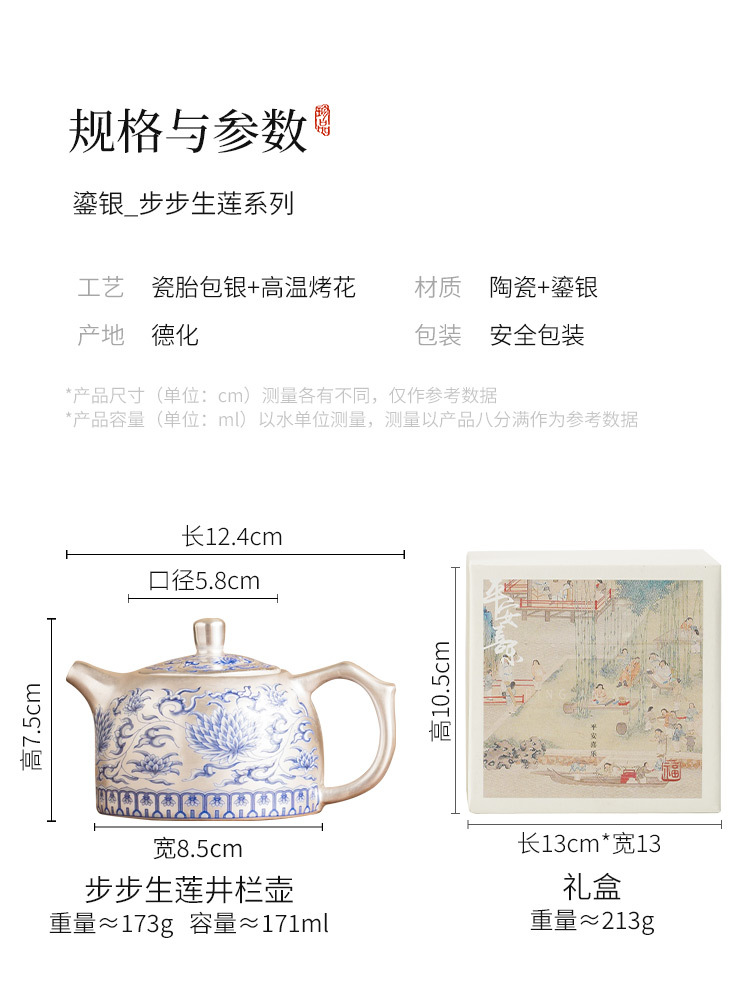 Ấm trà mạ bạc 999 ấm trà hàng rào sen từng bước gia dụng bằng gốm sứ dụng cụ trà Kung Fu gia dụng quà tặng
