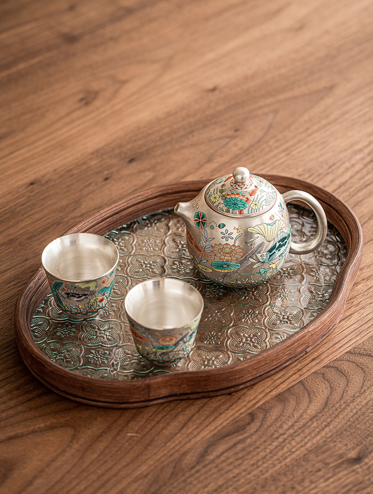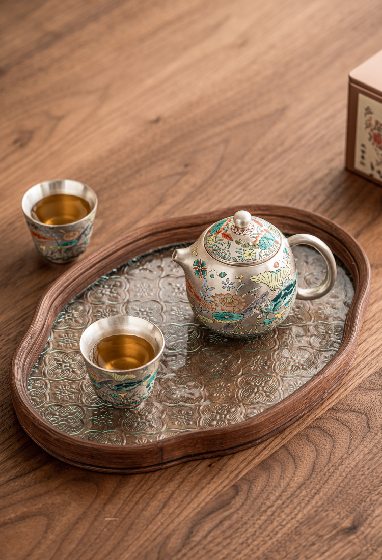 Ấm trà mạ bạc 999 hoa văn tảo trà ấm đơn lọc gia dụng ấm trà Bộ trà Kung Fu cao cấp Trung Quốc ấm Trứng Rồng