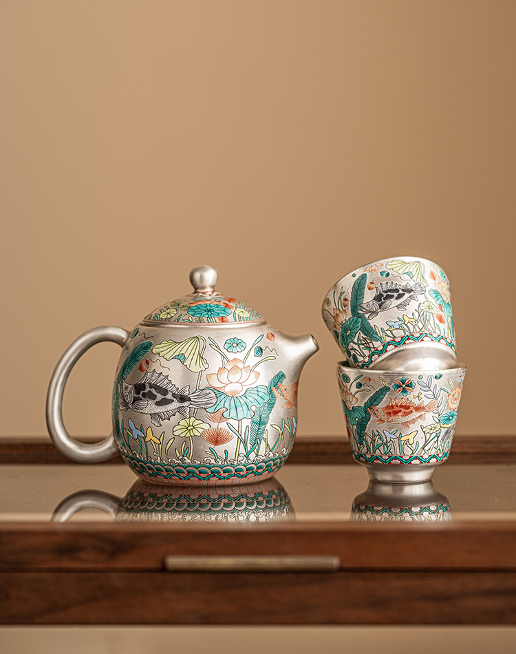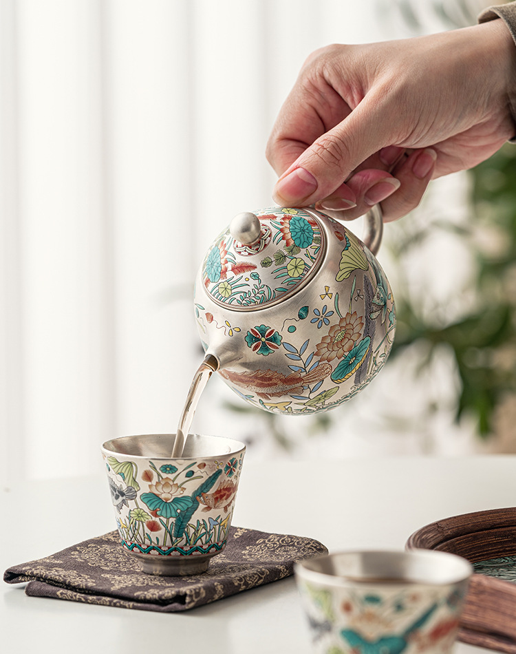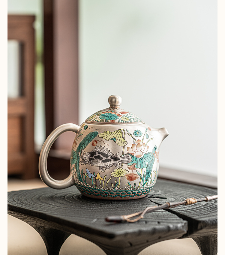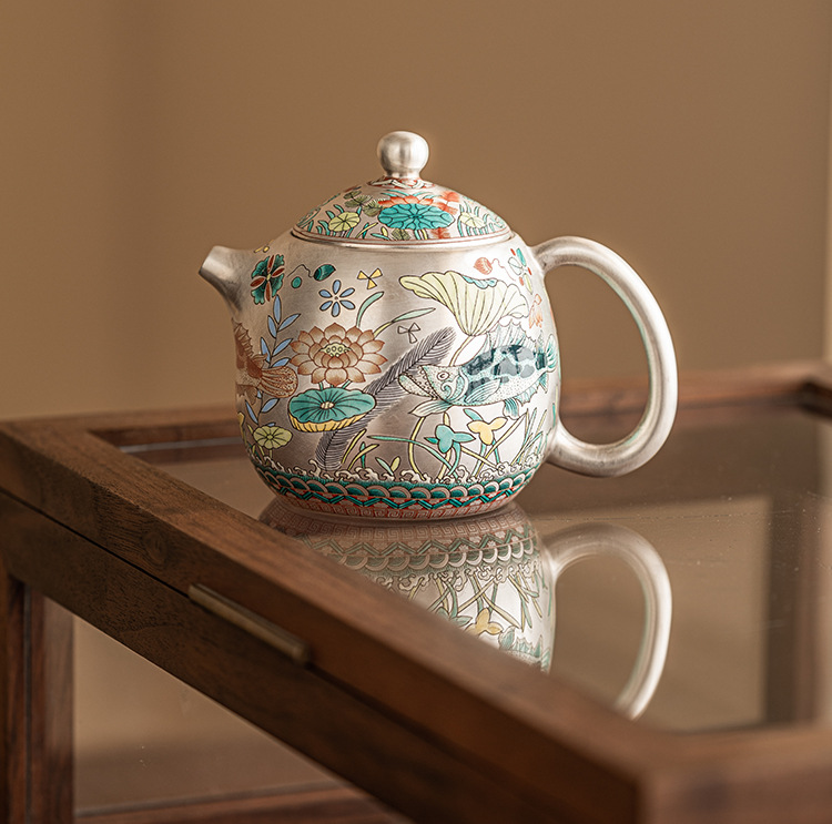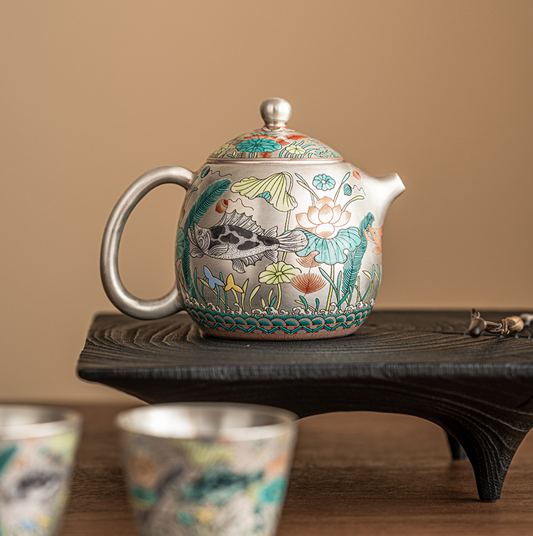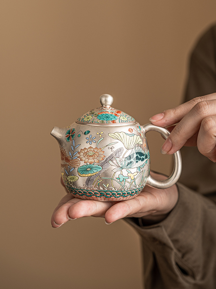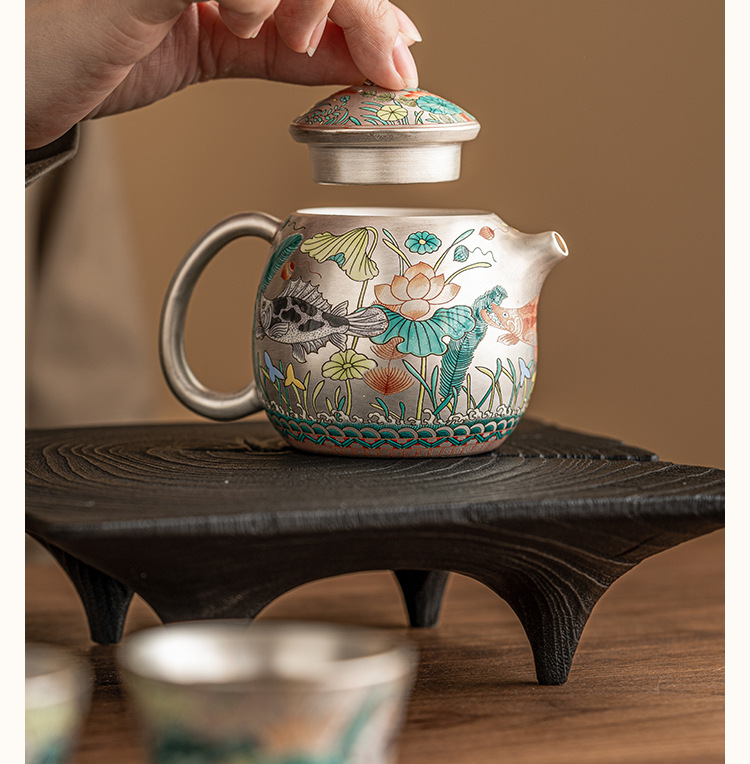 - Ấm trà mạ bạc 999 hoa văn tảo trà ấm đơn lọc gia dụng ấm trà Bộ trà Kung Fu cao cấp Trung Quốc ấm Trứng Rồng