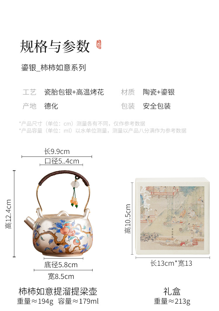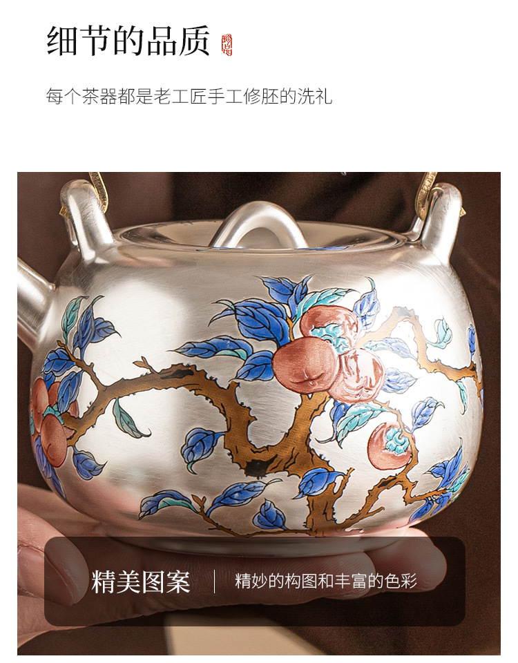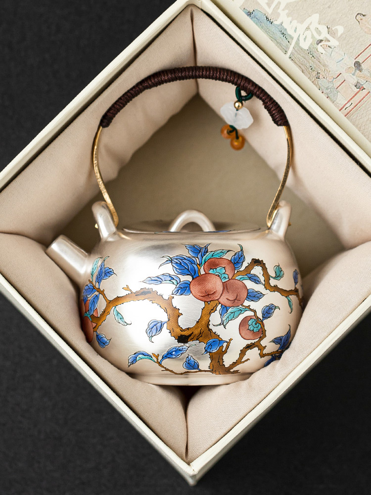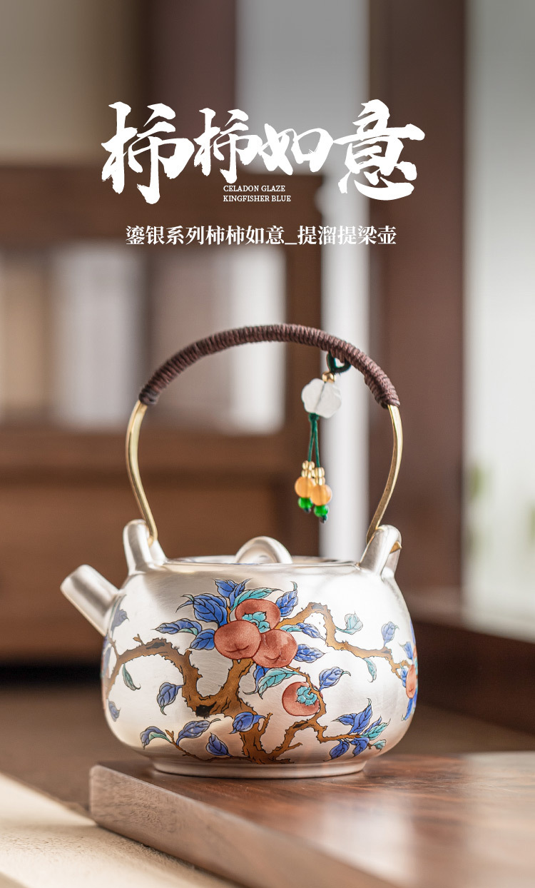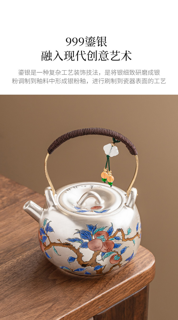 - Ấm trà mạ bạc Guofeng 999, ấm trà cầm xà nâng hồng Ruyi, ấm trà chống bỏng gốm sứ, quà tặng gia dụng cao cấp