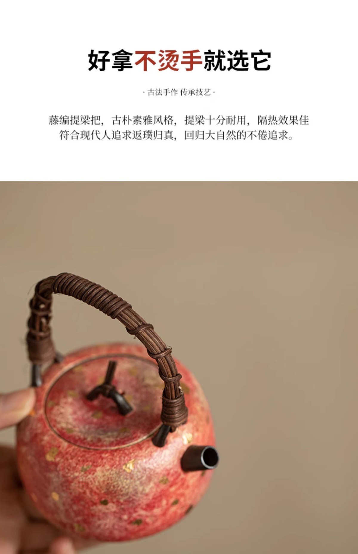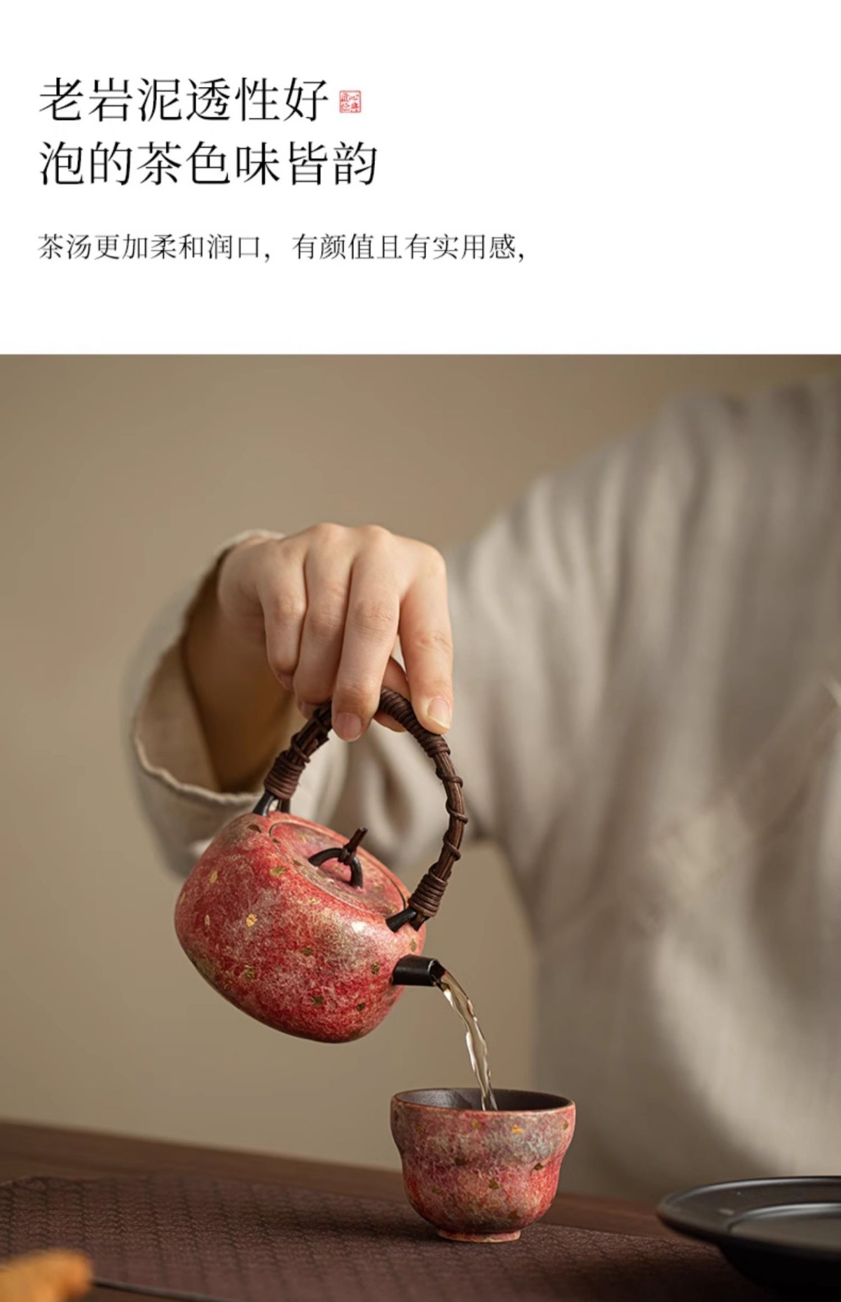 - Ấm trà màu đỏ gốm đá mỏ, dụng cụ pha trà cổ, dụng cụ pha trà Kung Fu, ấm trà dung tích lớn, ấm trà đơn