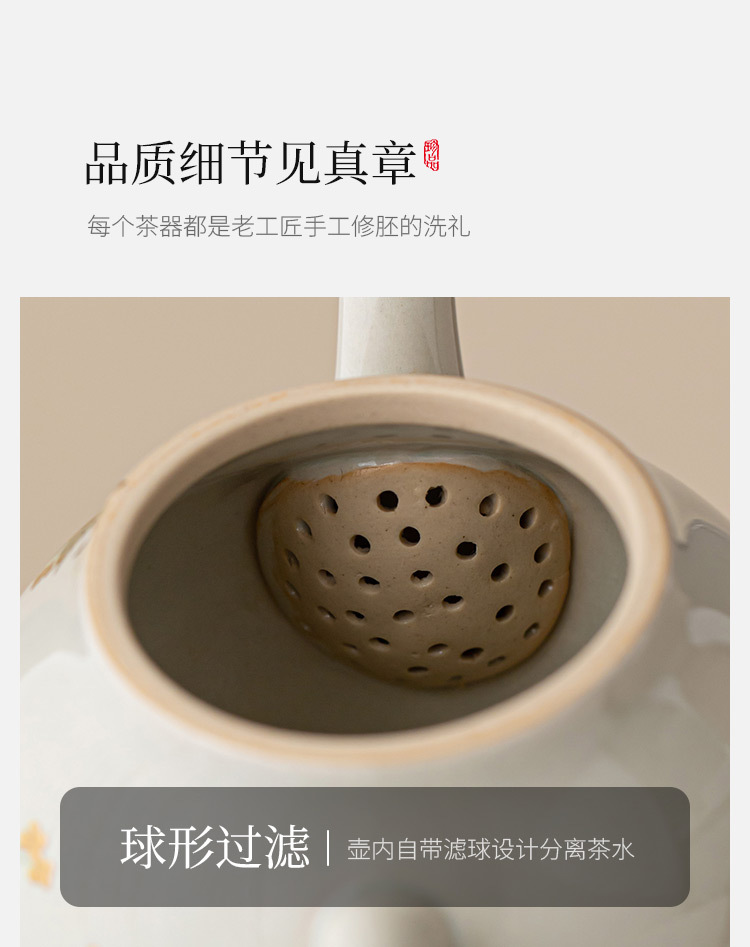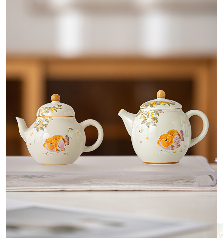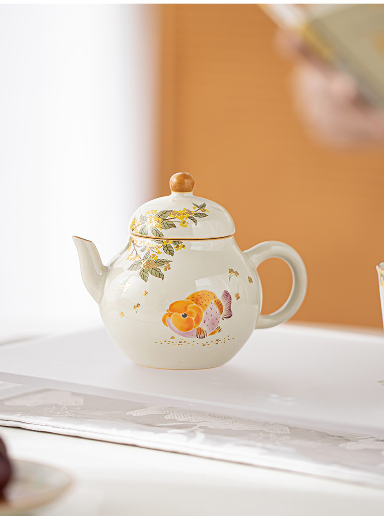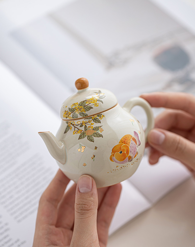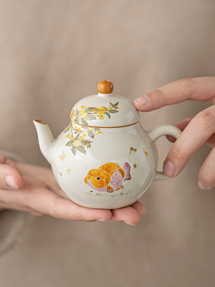 Ấm trà màu xám cỏ cây phong cách Trung Quốc Zen Osmanthus Golden Fish Ruyi Ấm cầm tay tinh xảo Ấm trà đơn