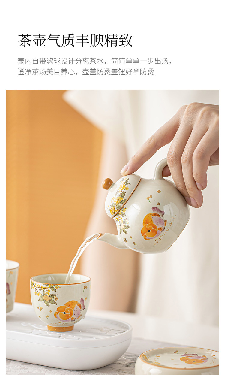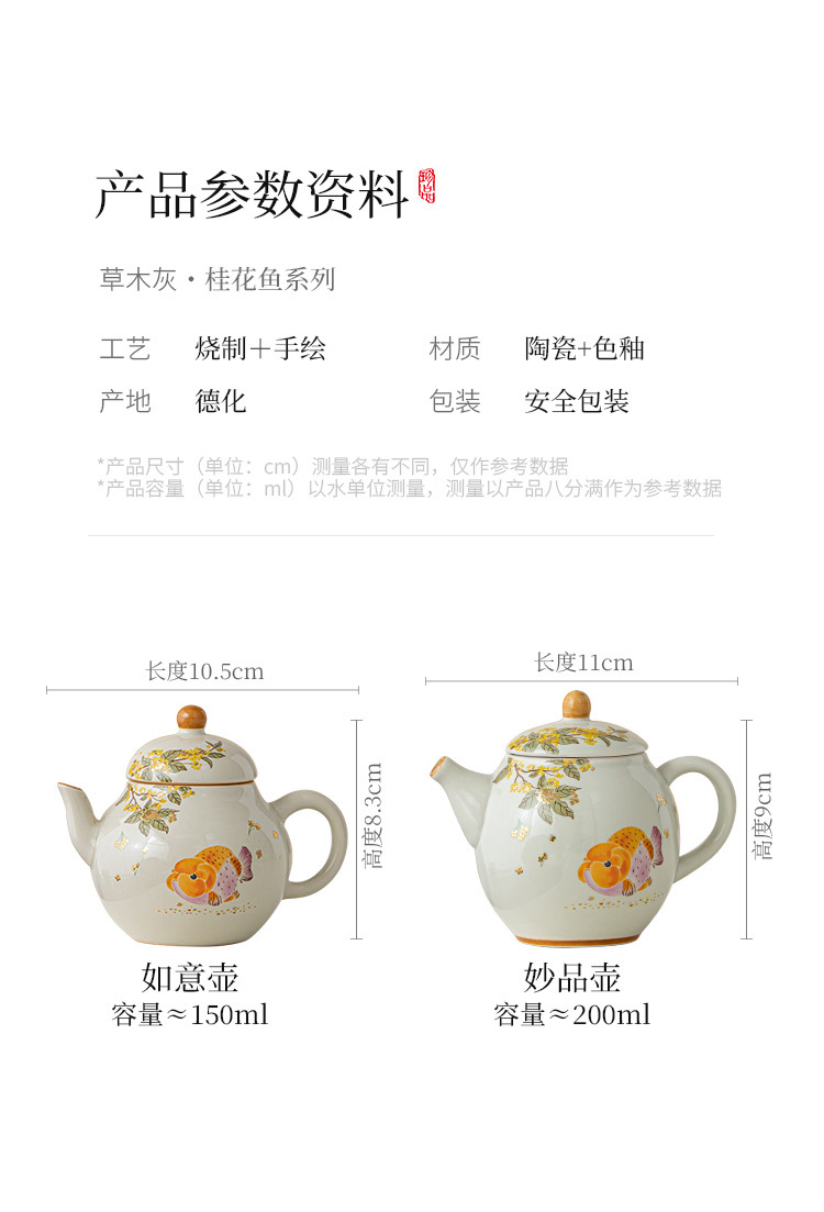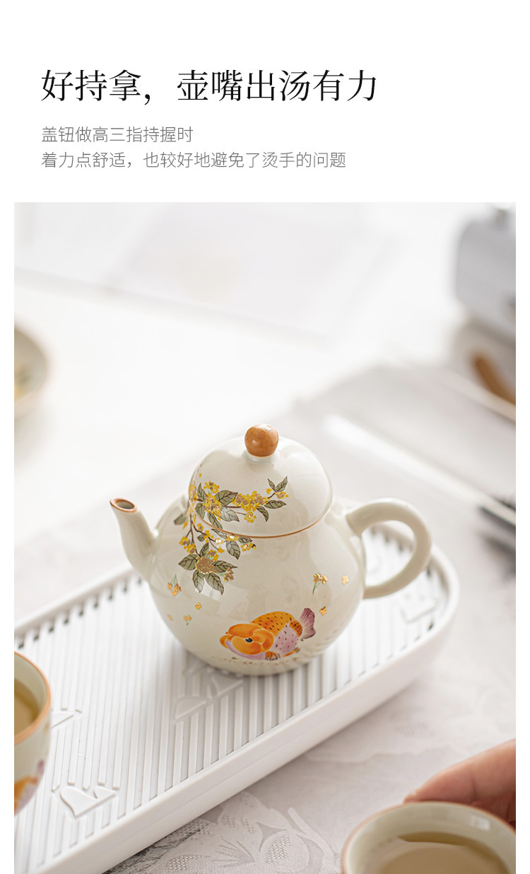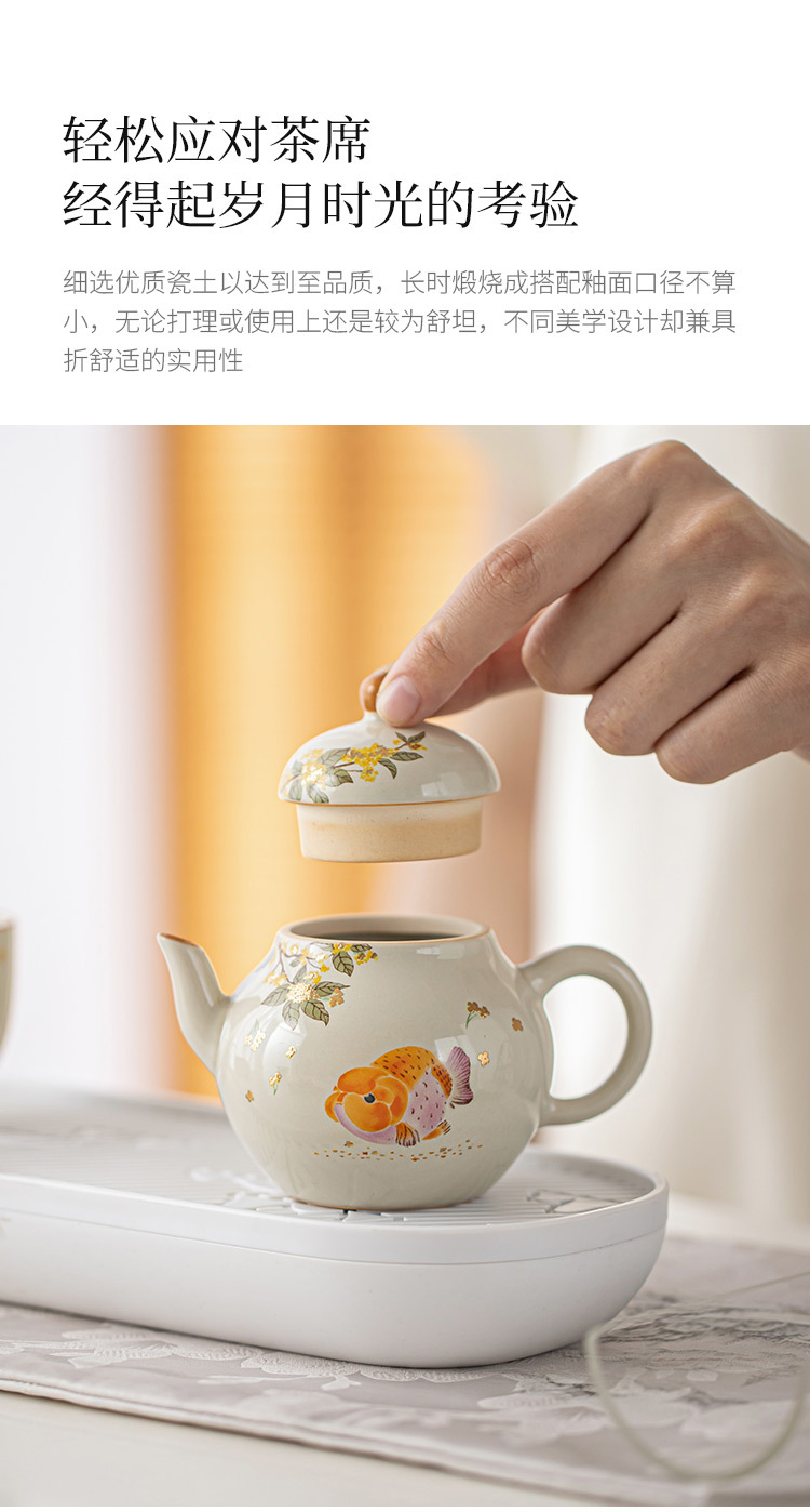 - Ấm trà màu xám cỏ cây phong cách Trung Quốc Zen Osmanthus Golden Fish Ruyi Ấm cầm tay tinh xảo Ấm trà đơn