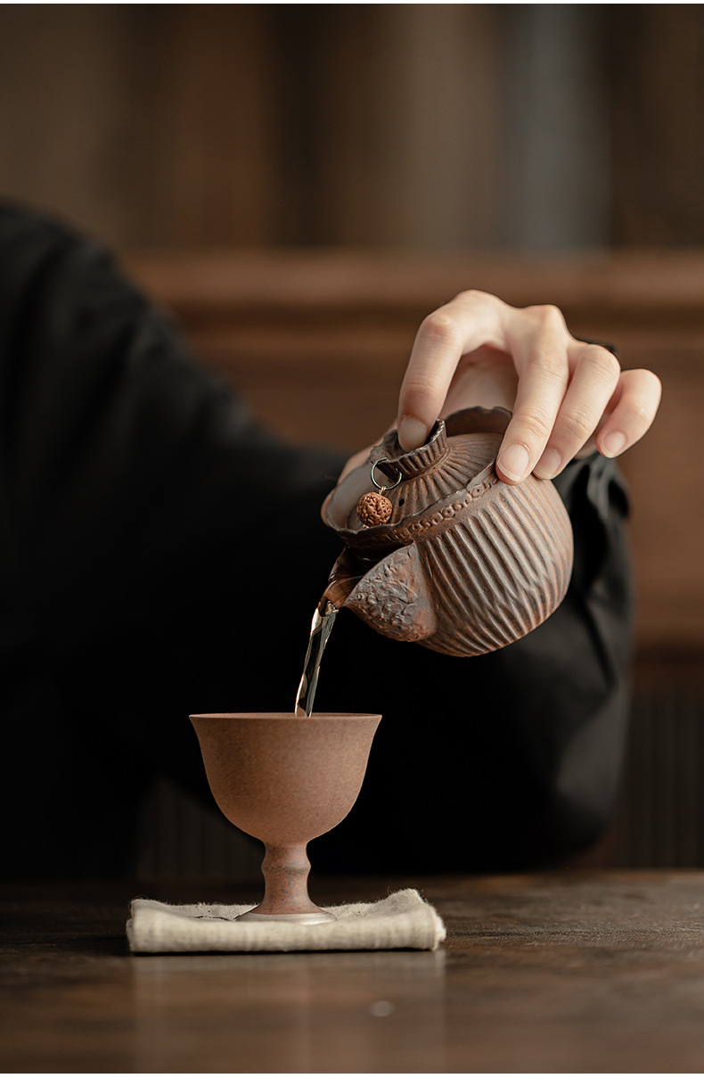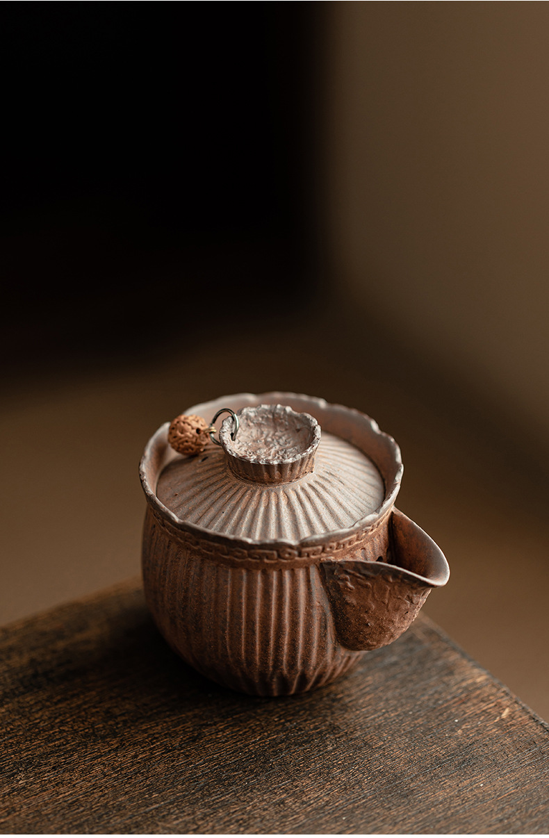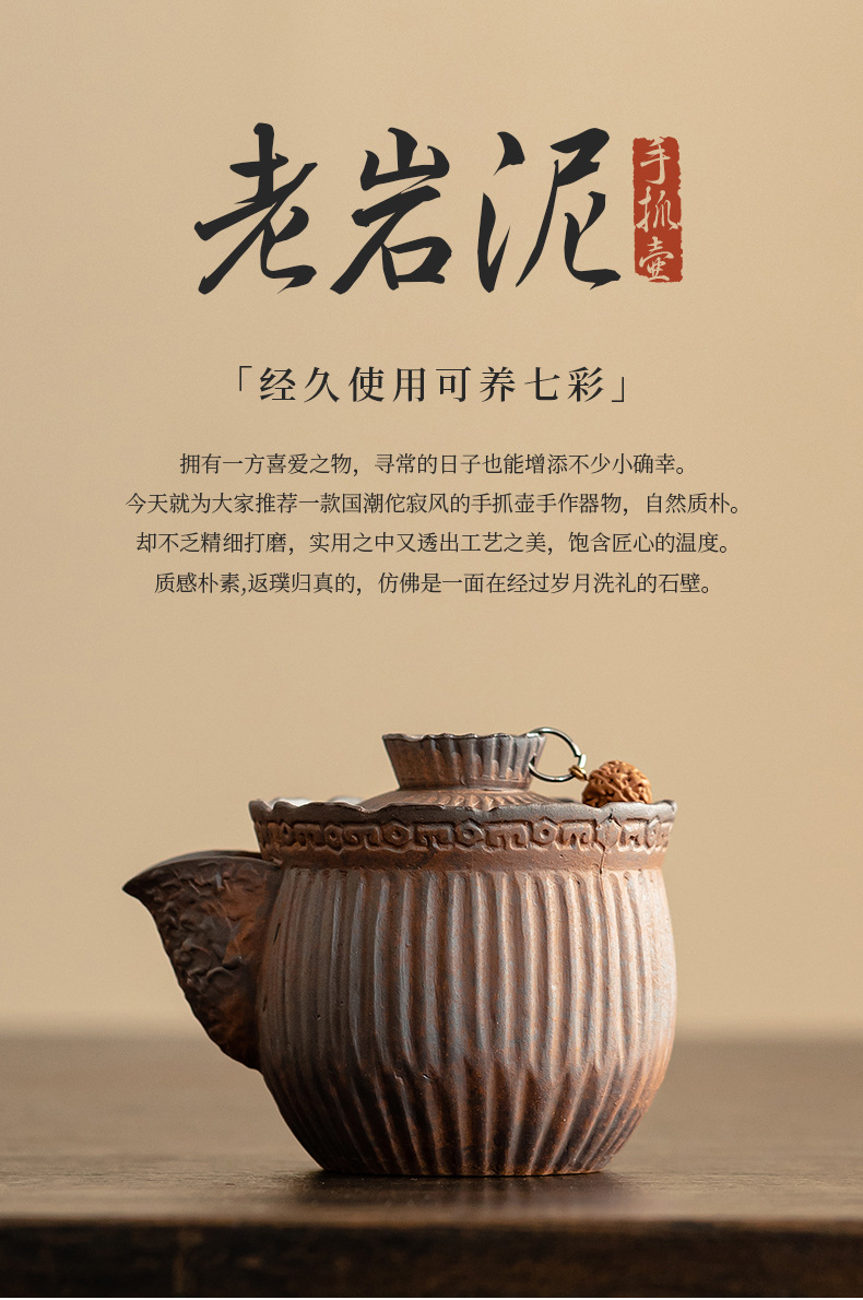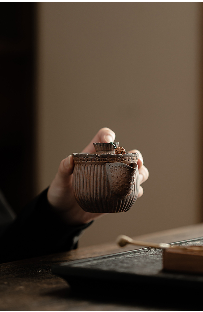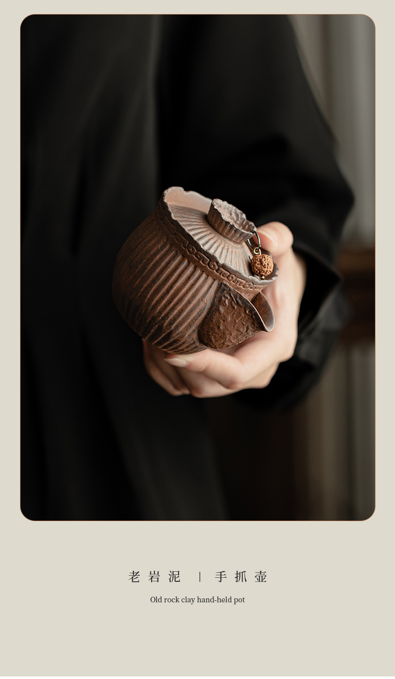 - Ấm trà nắm tay kẻ sọc bùn đá cổ dụng dụng cụ pha trà kungfu gốm thô dung tích nhỏ cổ điển kiểu Trung Quốc ấm trà đơn dụng cụ pha trà gia dụng