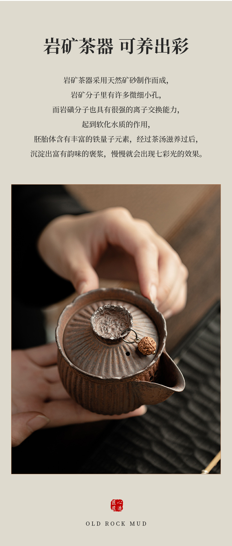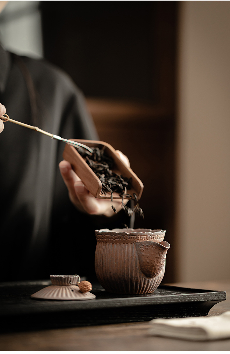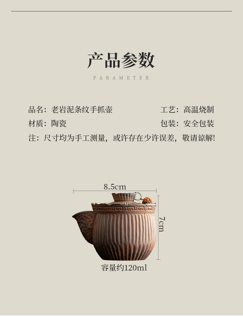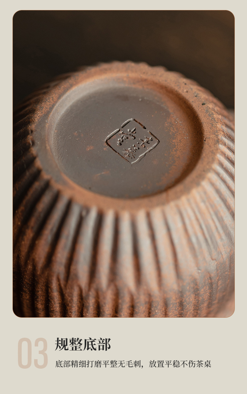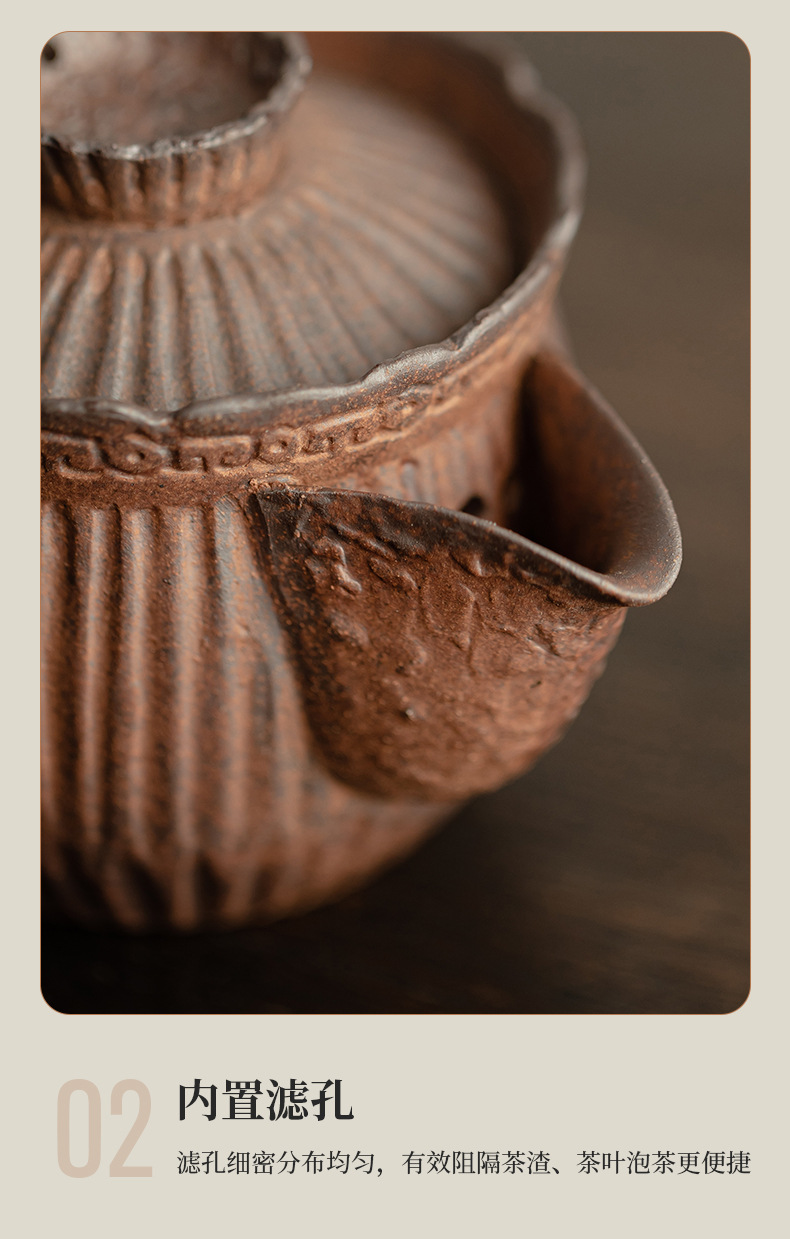 - Ấm trà nắm tay kẻ sọc bùn đá cổ dụng dụng cụ pha trà kungfu gốm thô dung tích nhỏ cổ điển kiểu Trung Quốc ấm trà đơn dụng cụ pha trà gia dụng