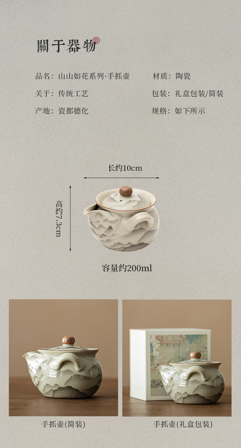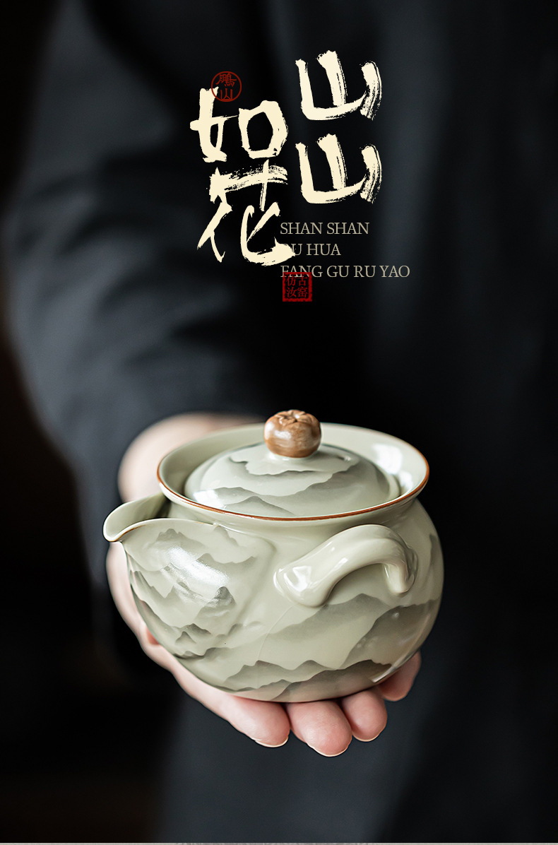 - Ấm trà nắm tay Ruyao Mountain Ruhua Bộ trà Kung Fu gốm sứ Ấm trà Bình Bảo Bình Đồ pha trà đơn gia dụng cổ điển