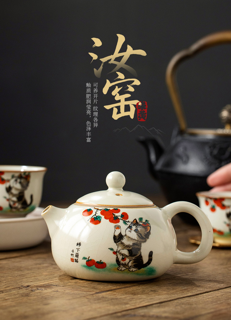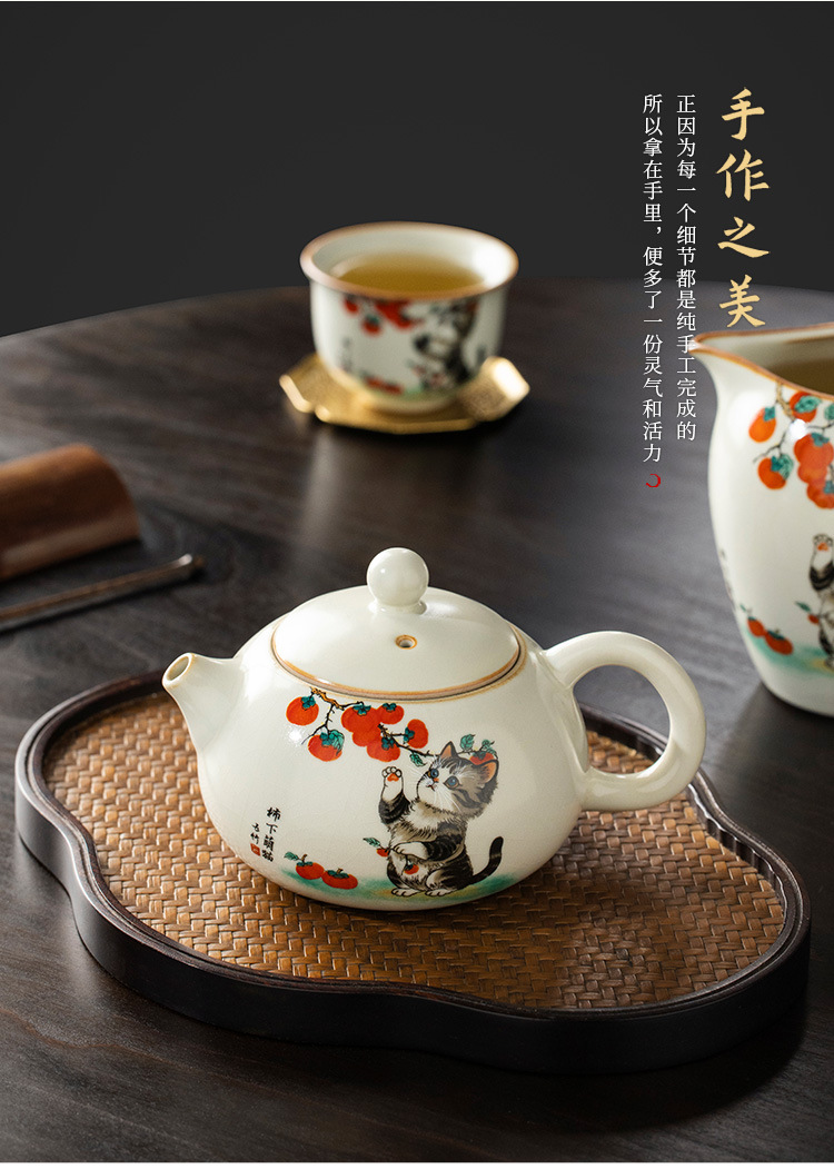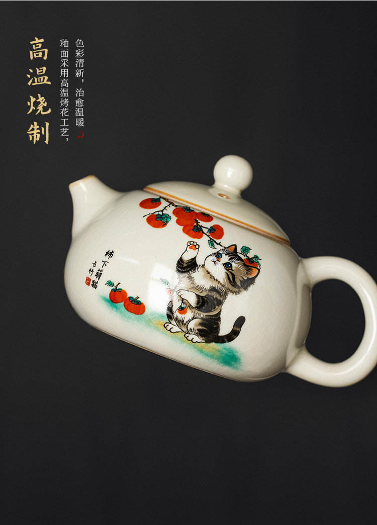 Ấm trà nhỏ pha trà mèo dễ thương dưới hồng Ruyao ấm trà gốm sứ kiểu Trung Quốc mới cho một người