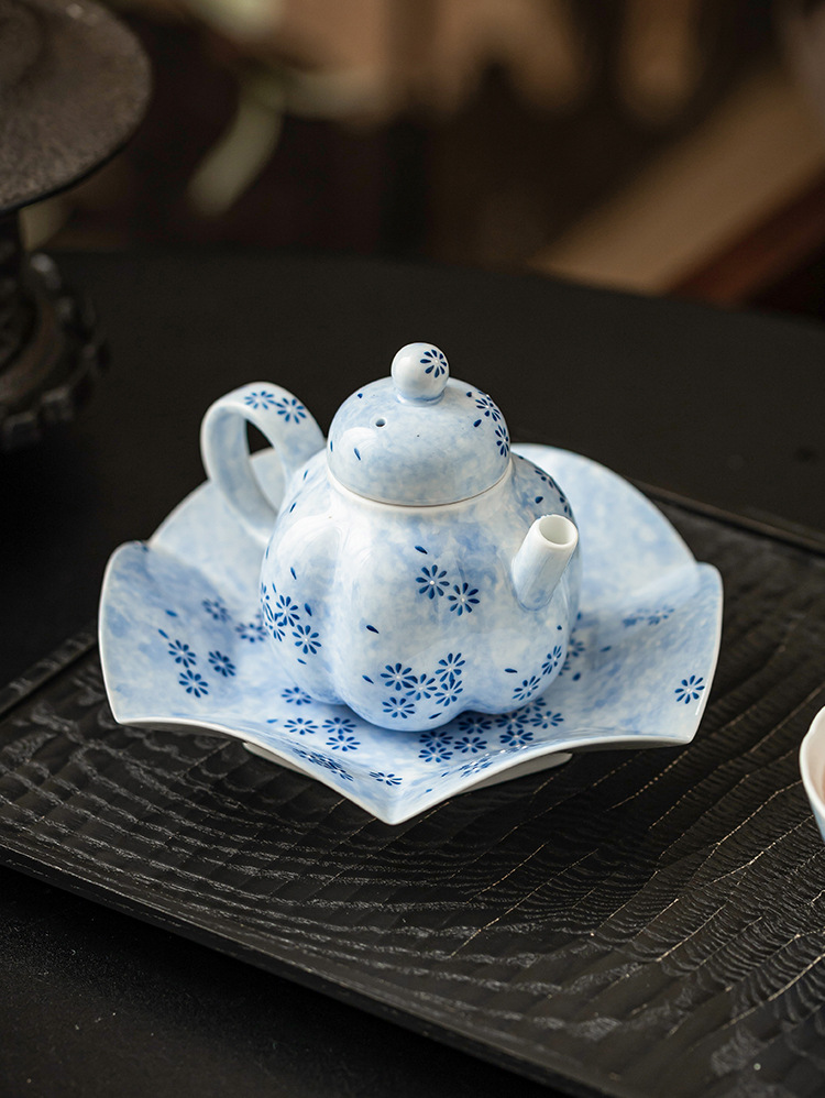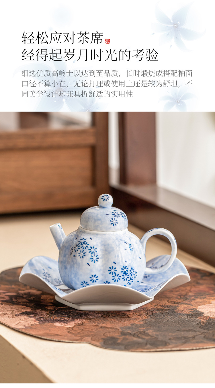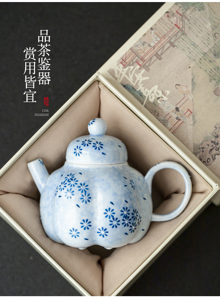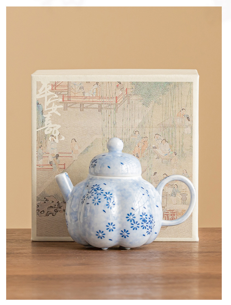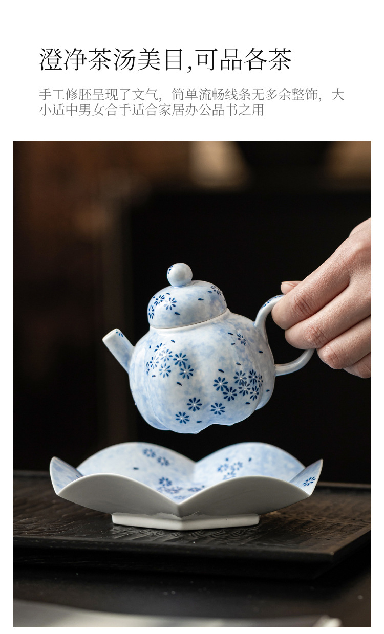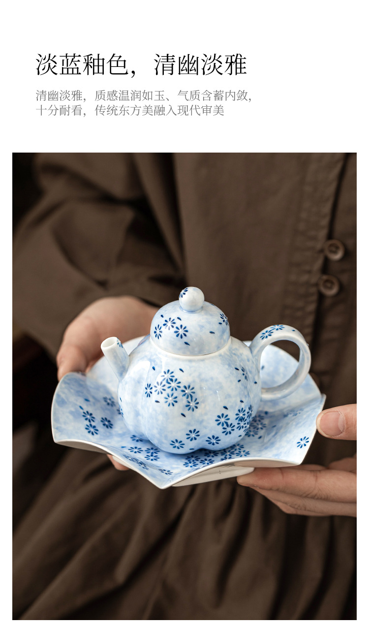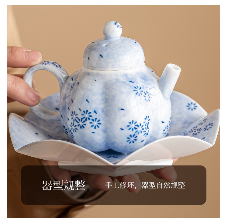 Ấm trà nhỏ tinh tế cổ điển màu xám thực vật ấm hình quả dưa hoa cúc xanh bộ trà Kung Fu gia dụng kiểu Trung Quốc bộ pha trà một ấm