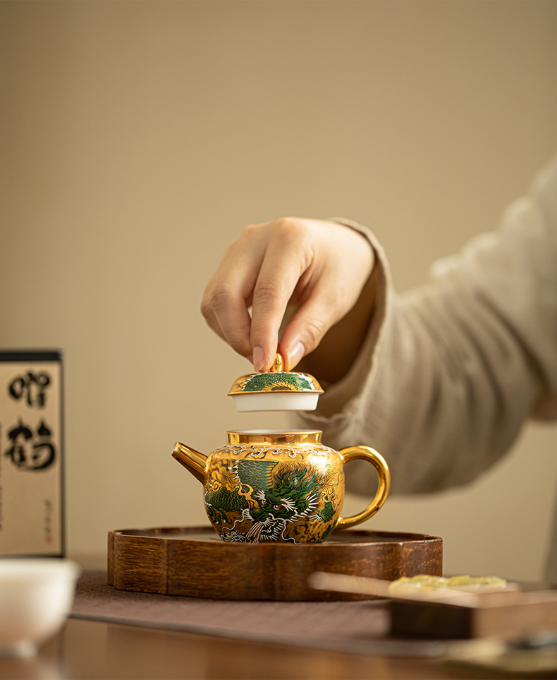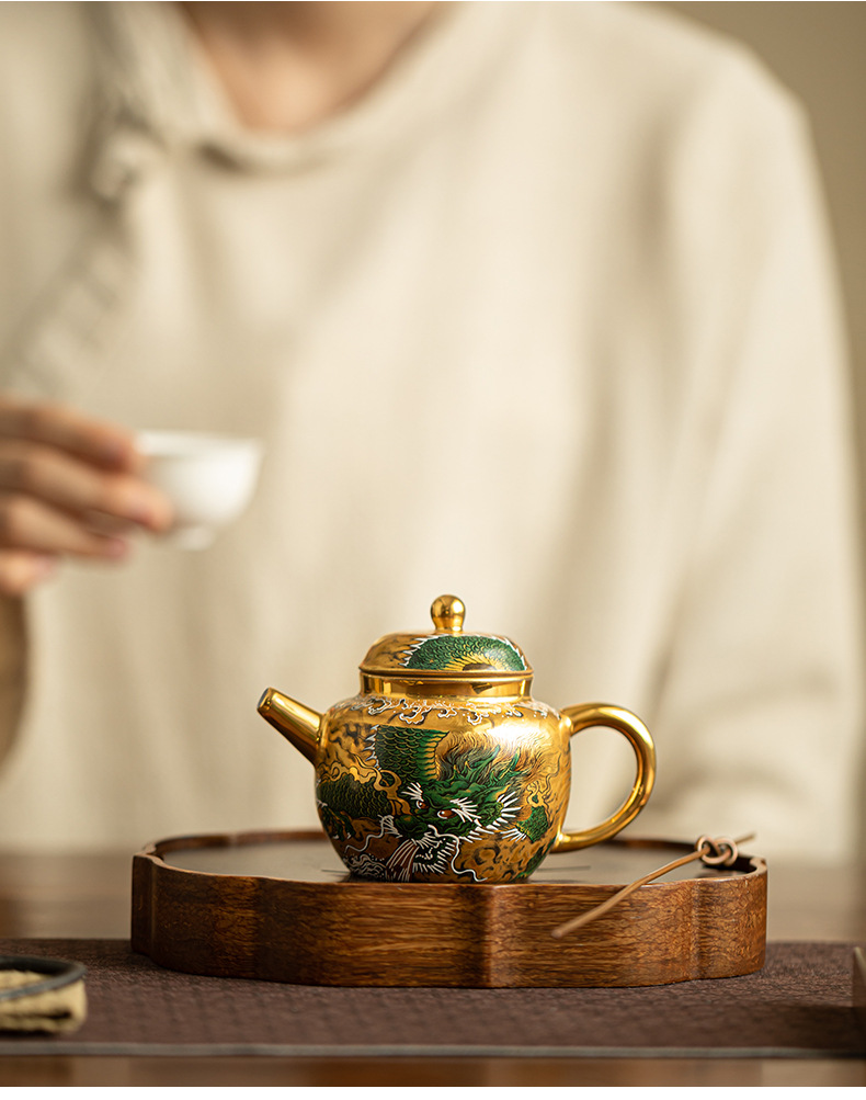 - Ấm trà rồng xanh mạ vàng ấm pha trà thủ công gốm sứ cao cấp ấm pha trà công phu gia dụng ấm trà đơn hộp quà