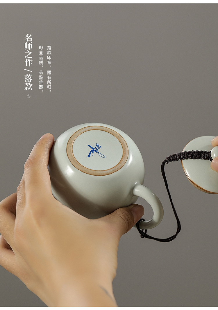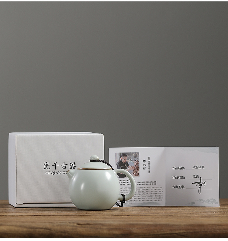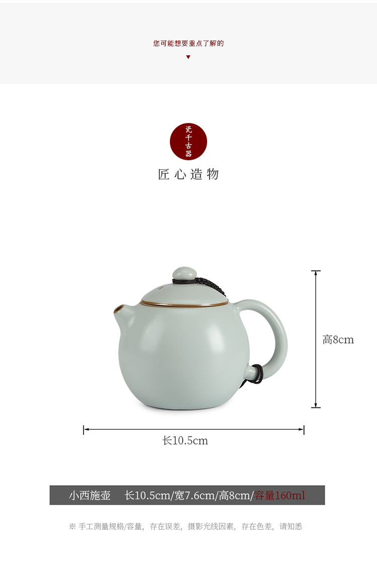 Ấm trà Ru Kiln Ấm trà Xi Shi Ấm trà làm bằng tay của bậc thầy Ấm trà đơn cao cấp gốm sứ cổ điển Bộ trà có thể mở bằng sứ Ru