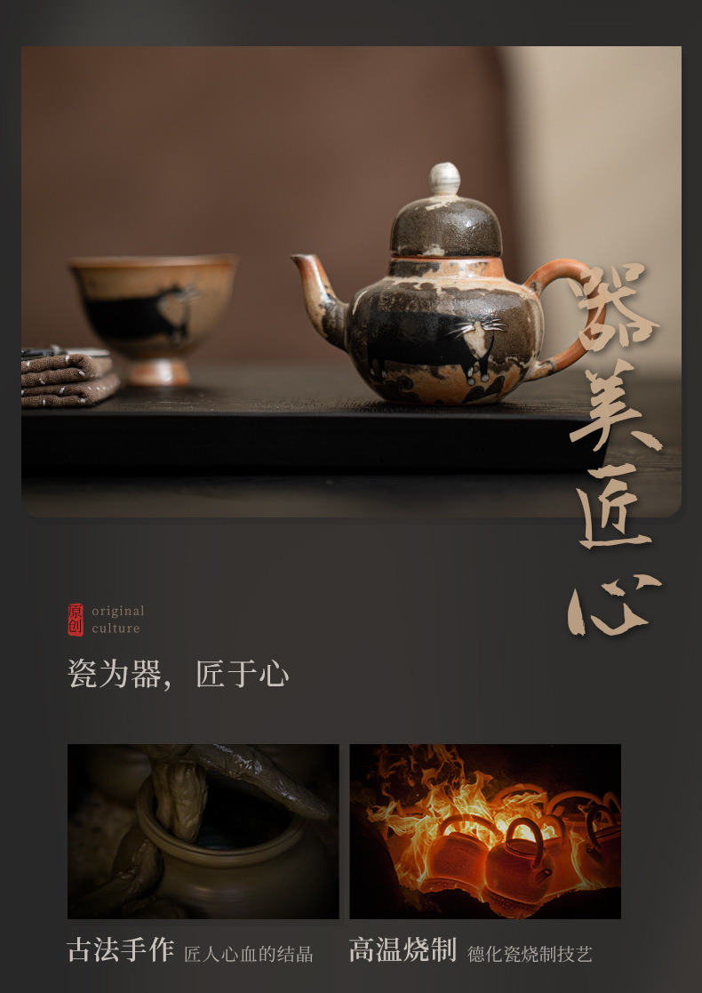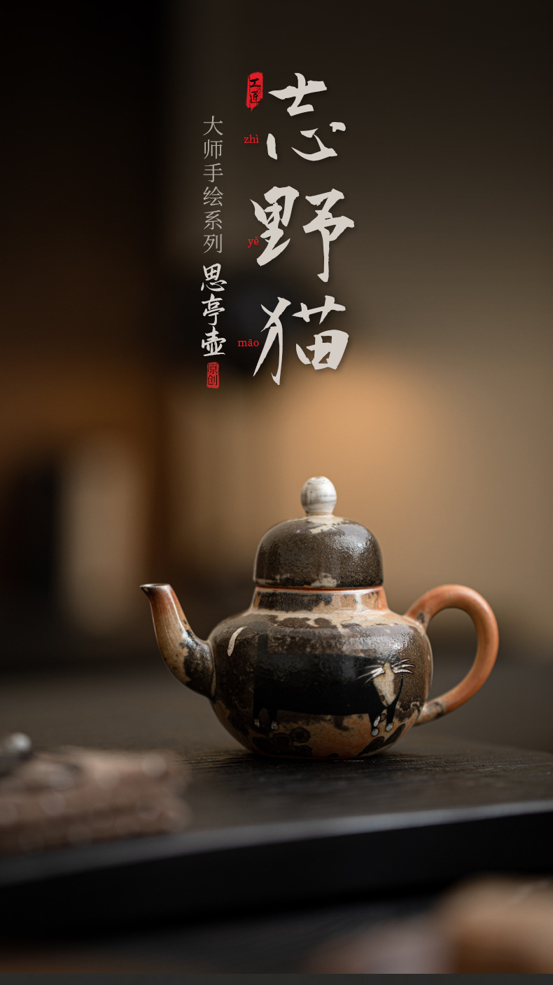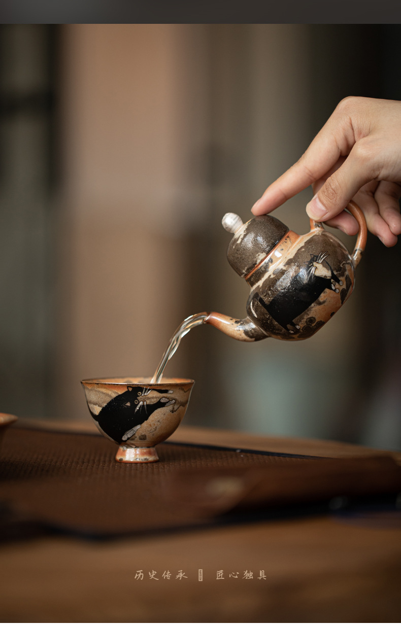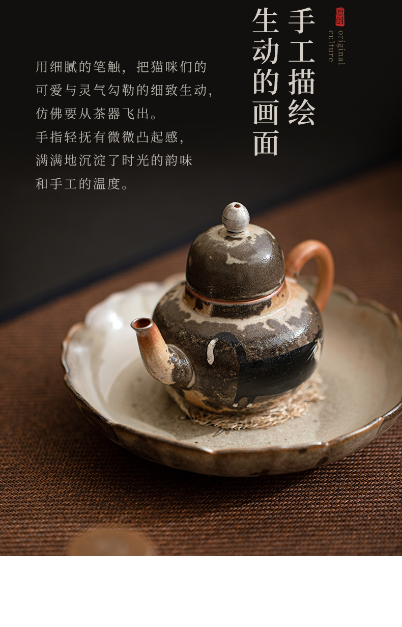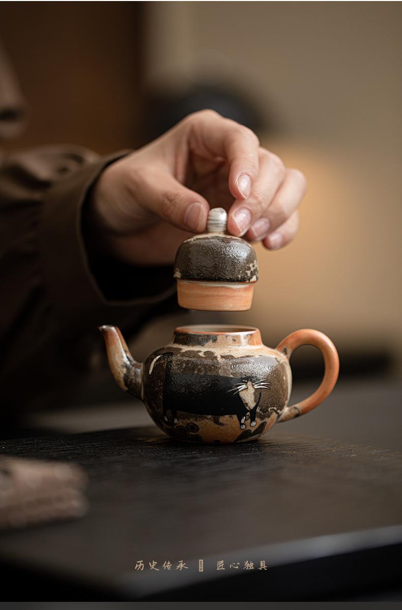 Ấm trà Siting mèo Shiye phong cách Nhật Bản ấm trà gốm sứ bạc vẽ tay Bộ trà Kung Fu cổ điển có lọc tách trà