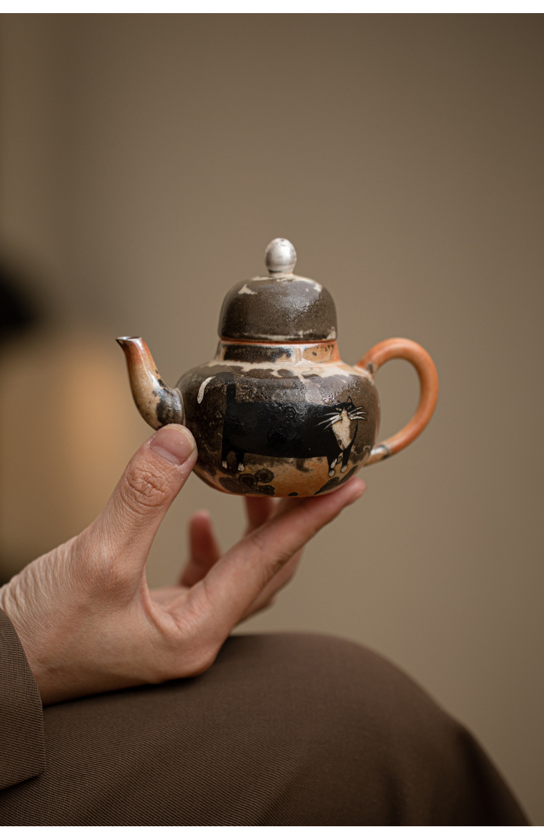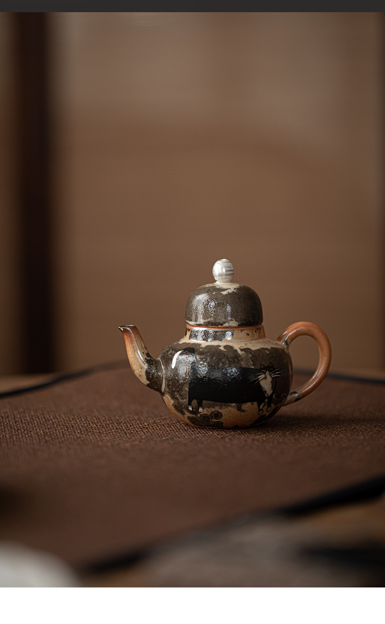 - Ấm trà Siting mèo Shiye phong cách Nhật Bản ấm trà gốm sứ bạc vẽ tay Bộ trà Kung Fu cổ điển có lọc tách trà
