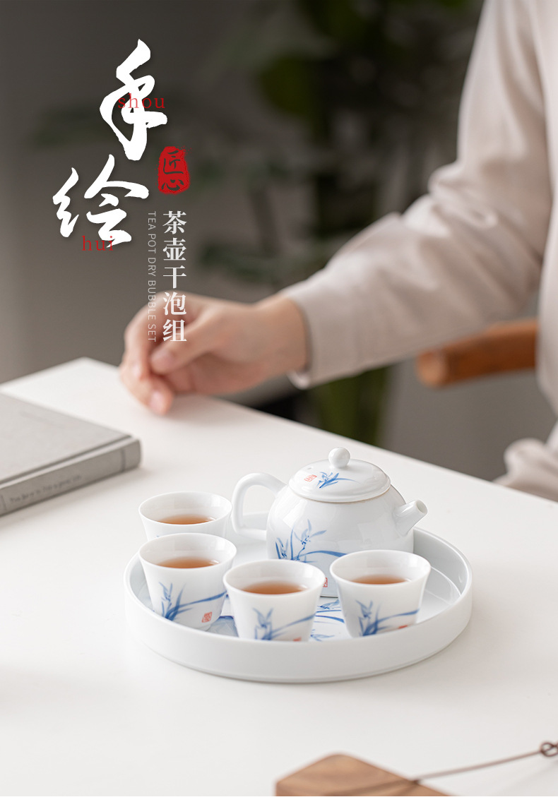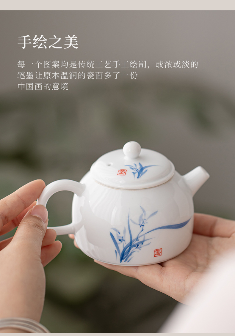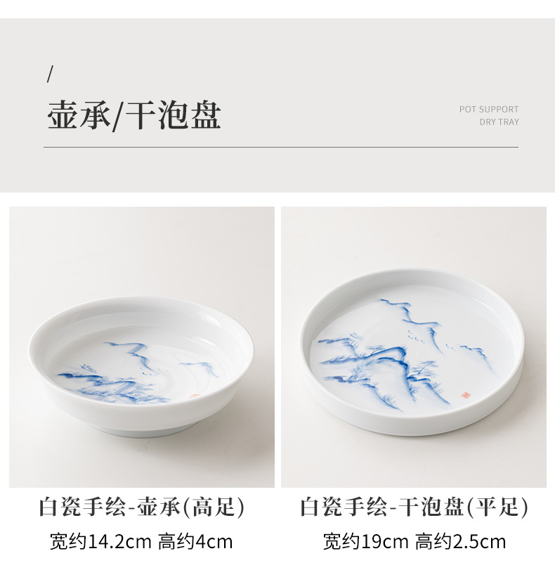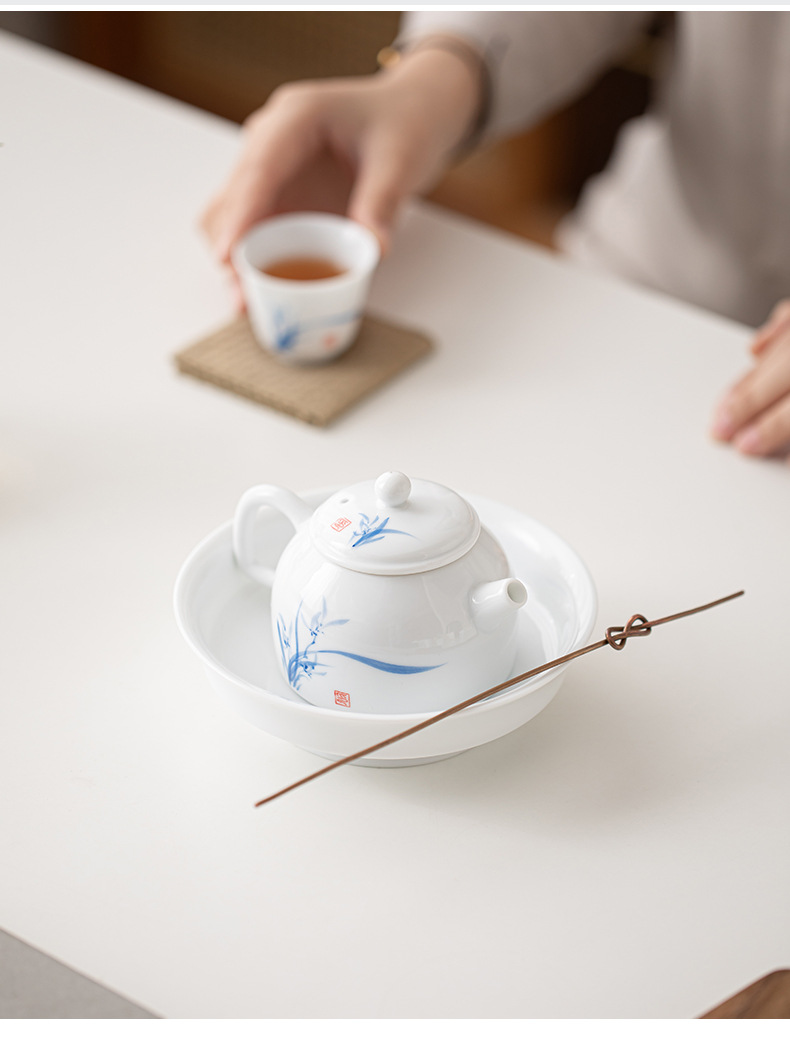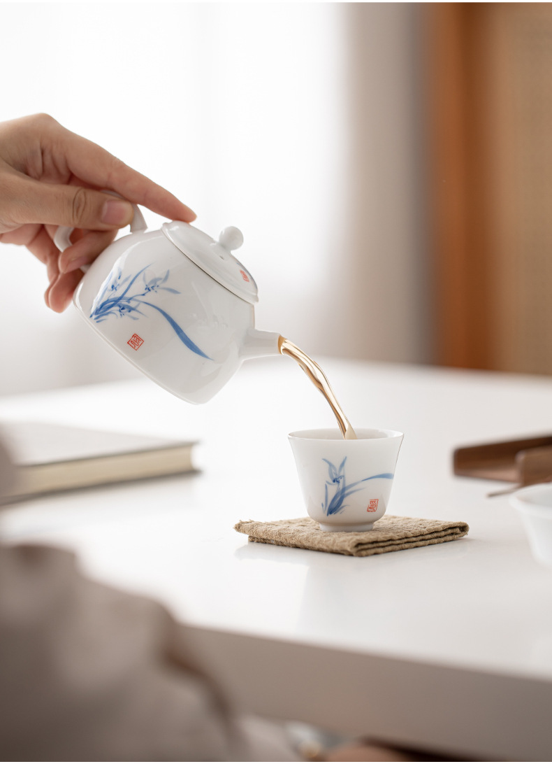 Ấm trà sứ trắng Đức Hoa vẽ tay, dụng cụ pha trà lọc gia dụng, cốc trà đơn, khay pha khô, bộ trà Kung Fu nhỏ