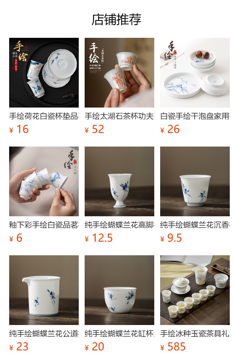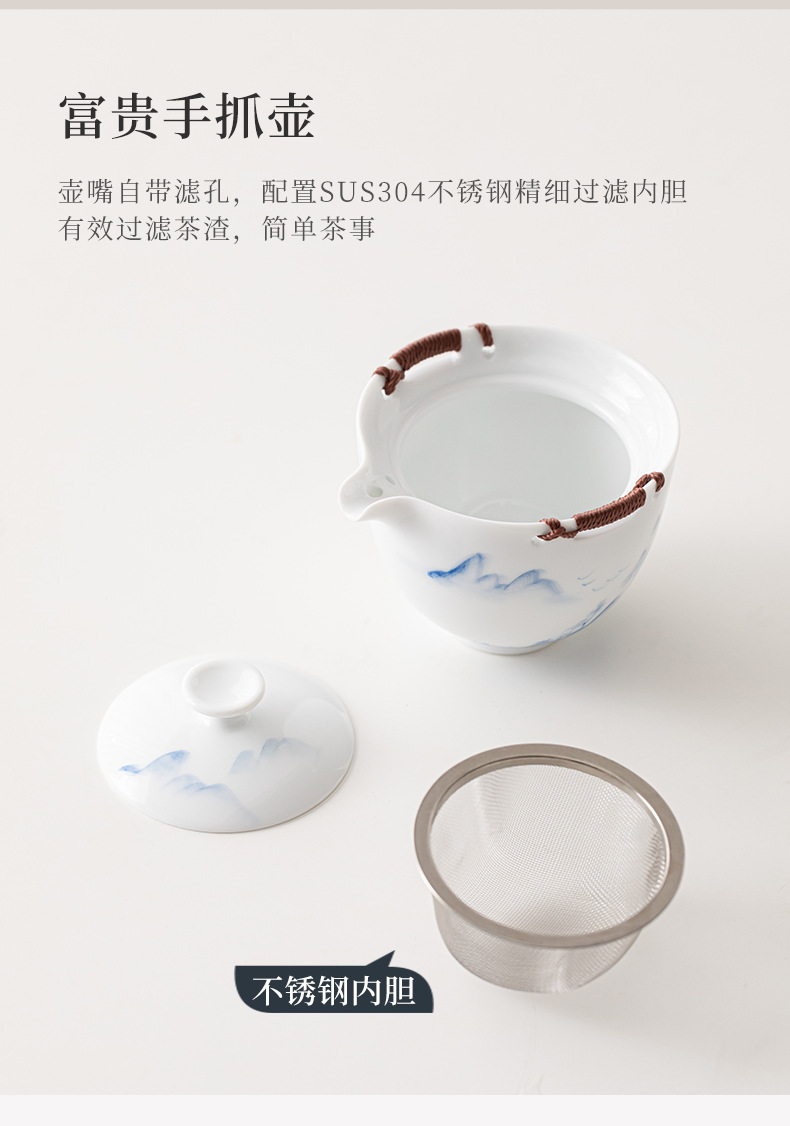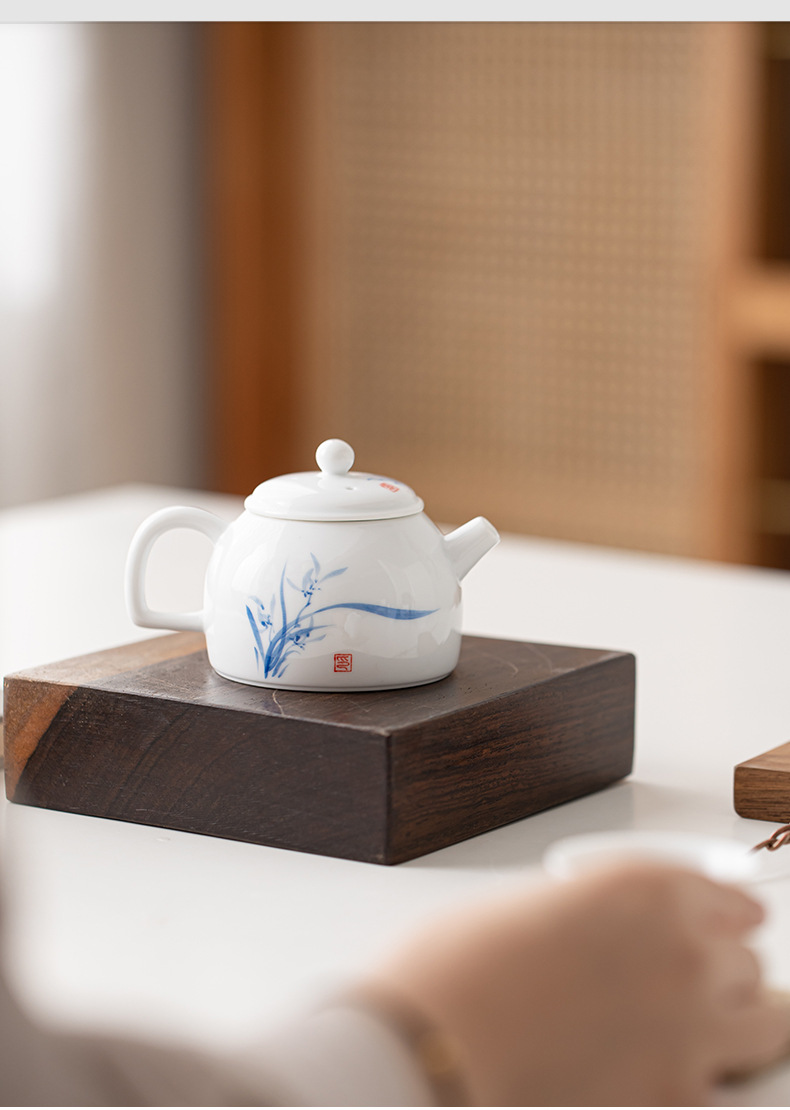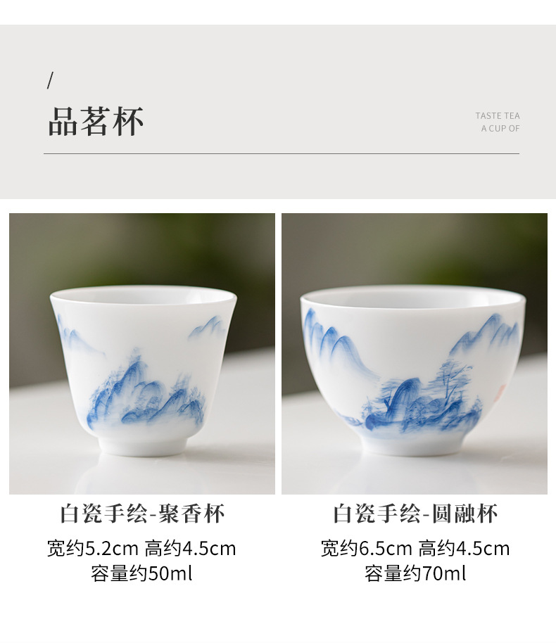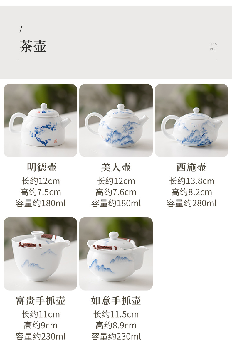 Ấm trà sứ trắng Đức Hoa vẽ tay, dụng cụ pha trà lọc gia dụng, cốc trà đơn, khay pha khô, bộ trà Kung Fu nhỏ
