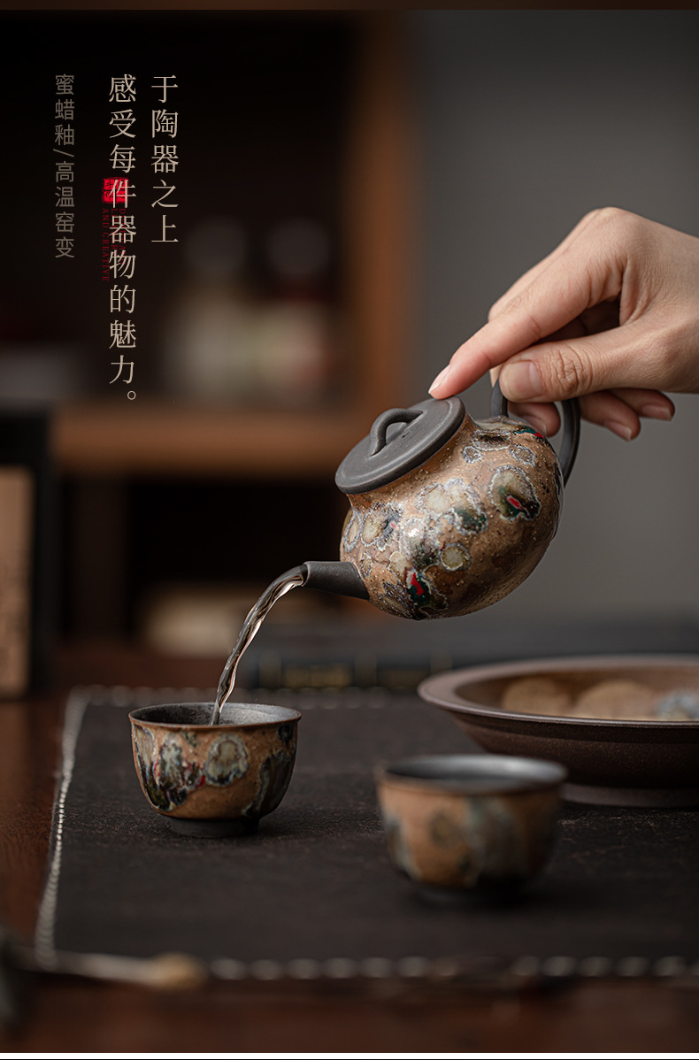 - Ấm trà sứ tráng men sáp ong lò nung ấm bát có nắp ấm bộ trà Kung Fu cổ điển ấm trà sáng tạo ấm lọc ấm đơn