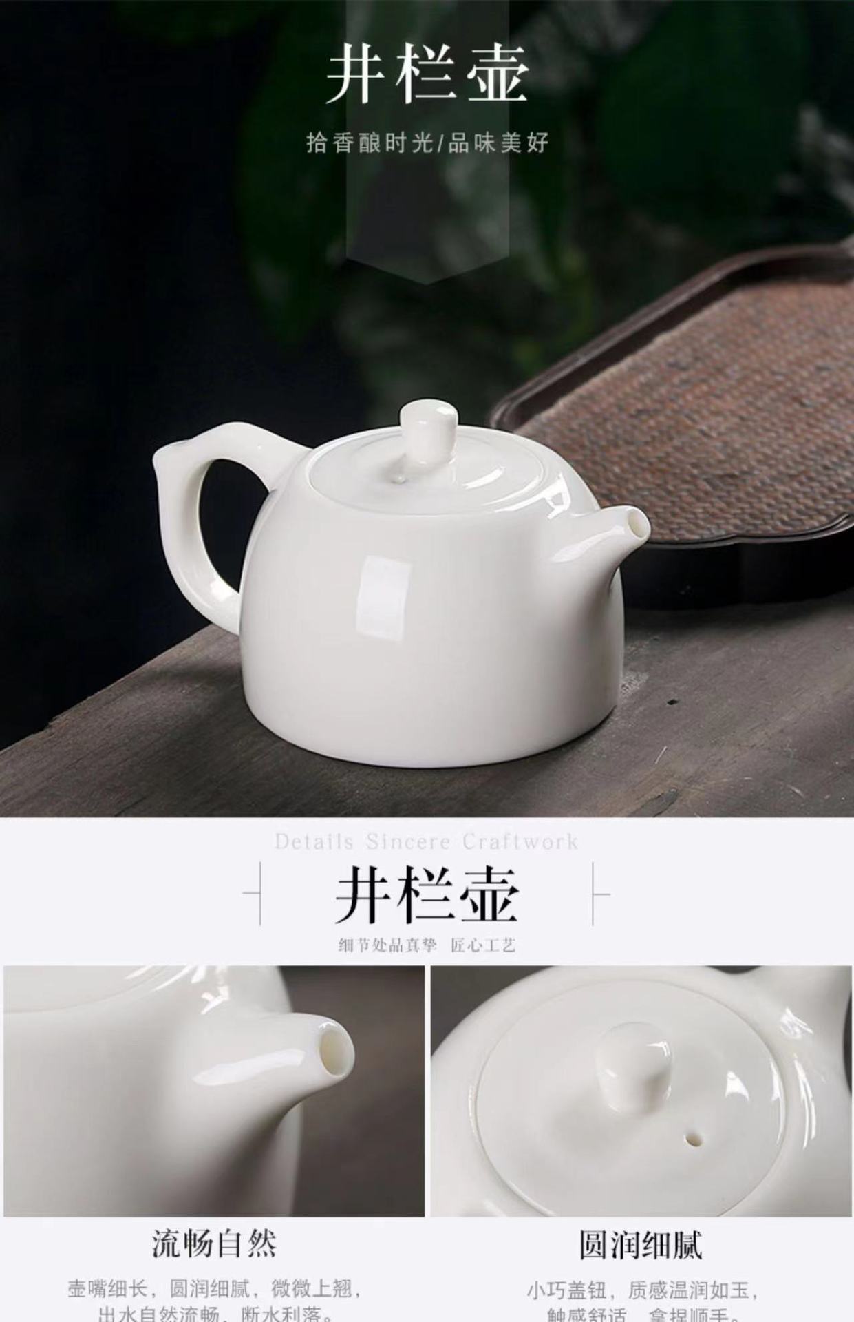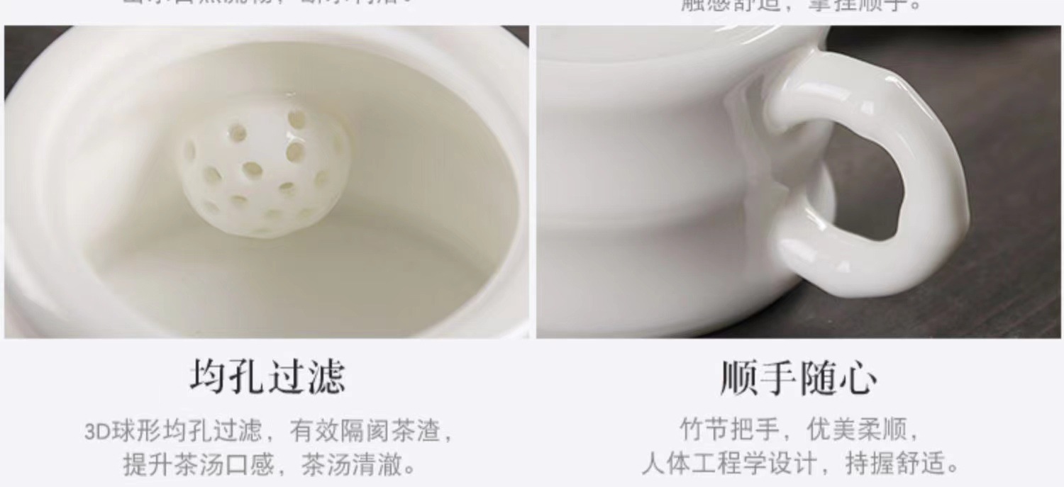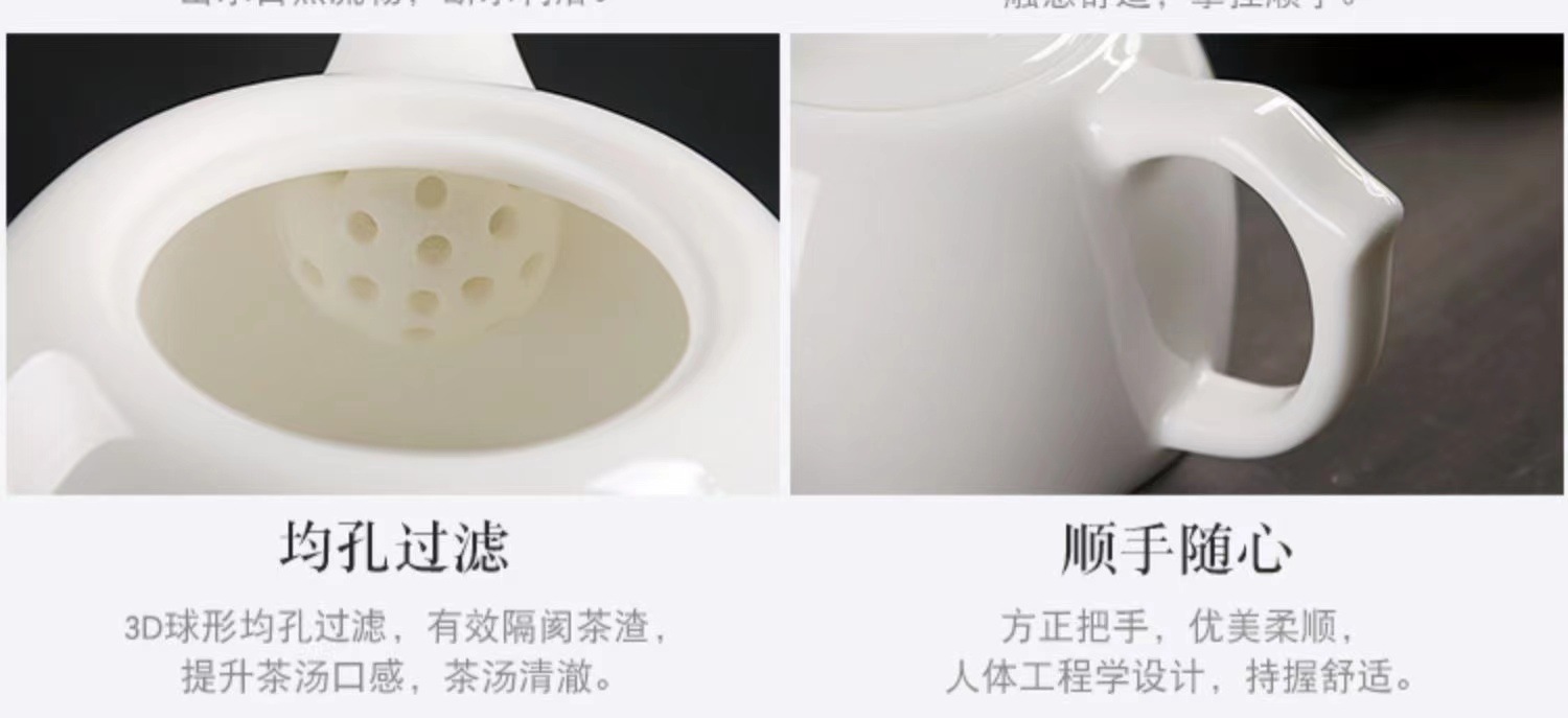 - Ấm trà sứ Xishi, bộ lọc trà bằng gốm sứ cao cấp Dehua Sheep Fat Jade, có lỗ lọc bi, ấm đơn, phong cách Kung Fu.