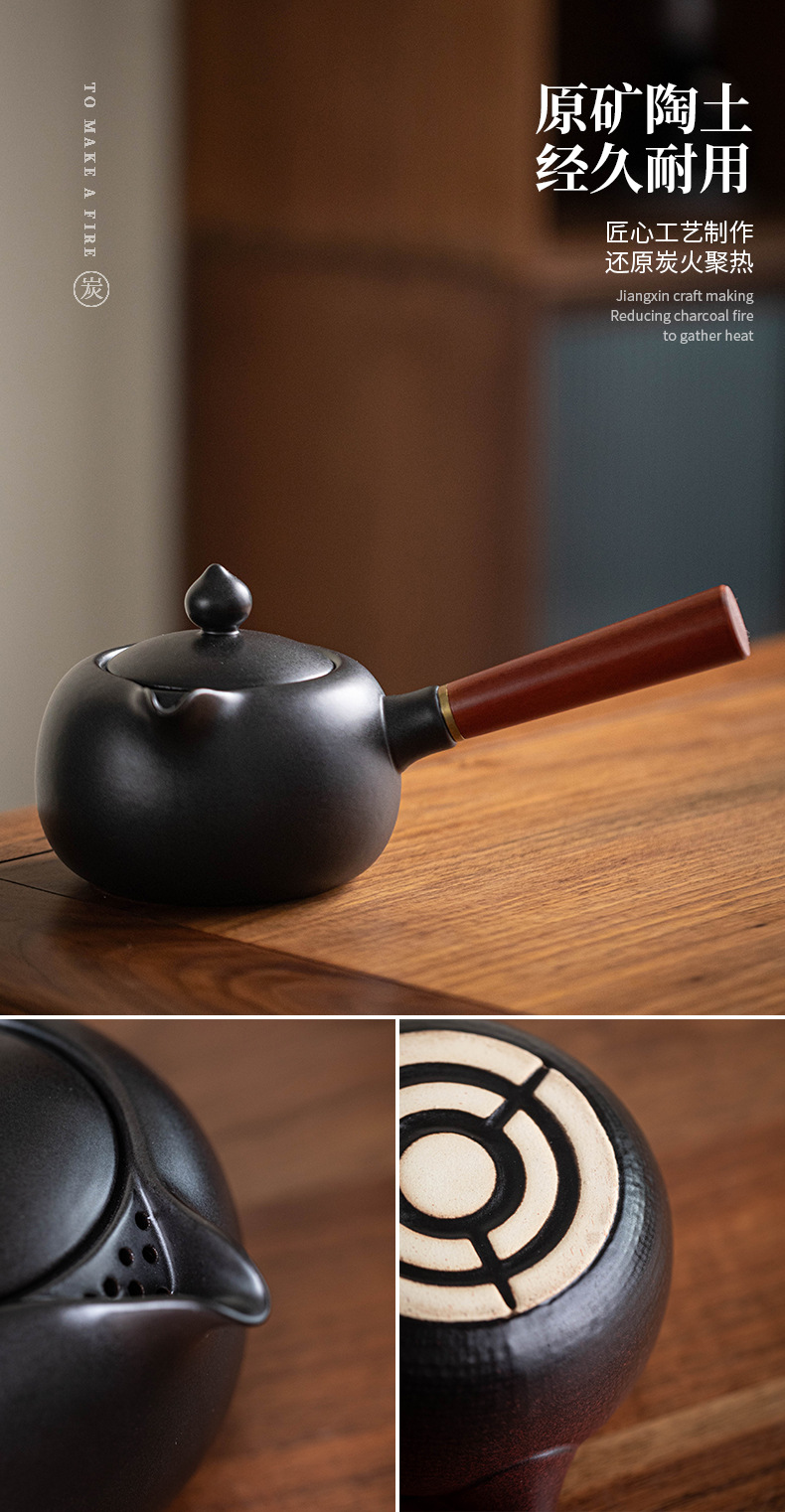 Ấm trà tay cầm bên Baolian ấm pha trà đơn giản kiểu Trung Quốc ấm trà tay cầm bên bằng gốm sứ ấm đun trà quanh bếp