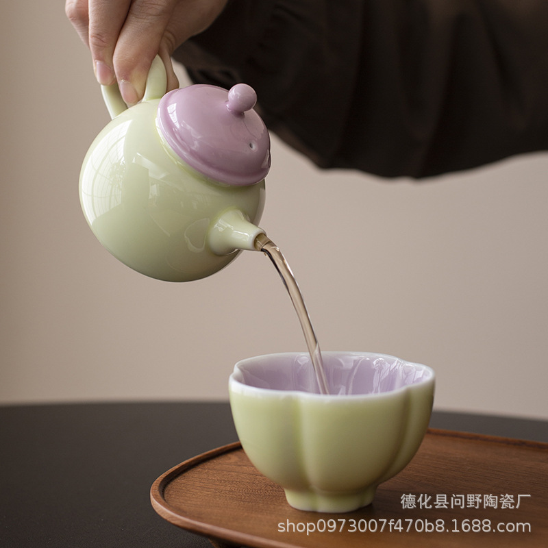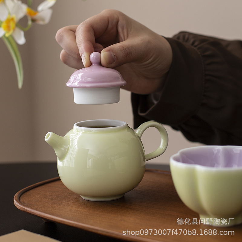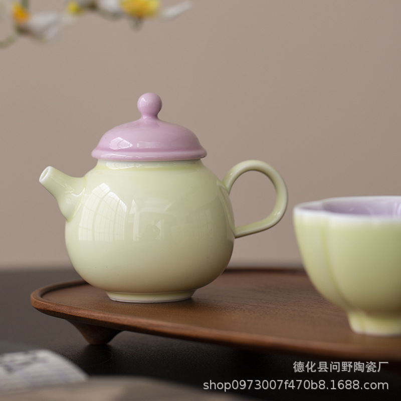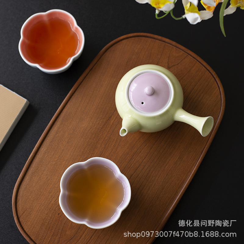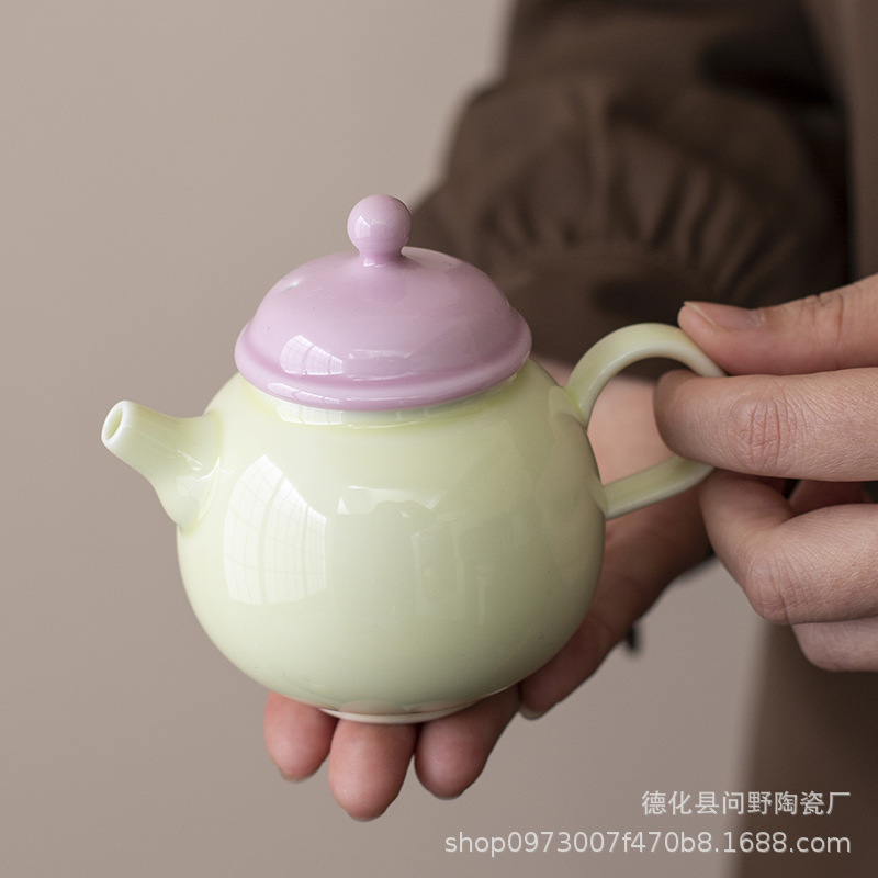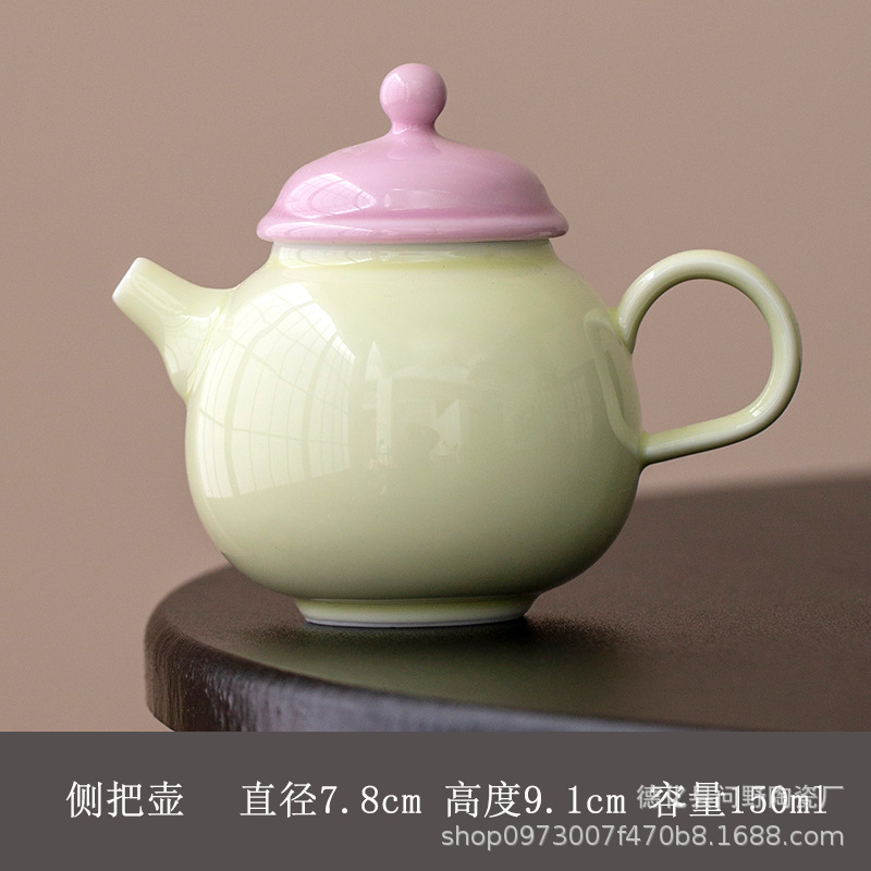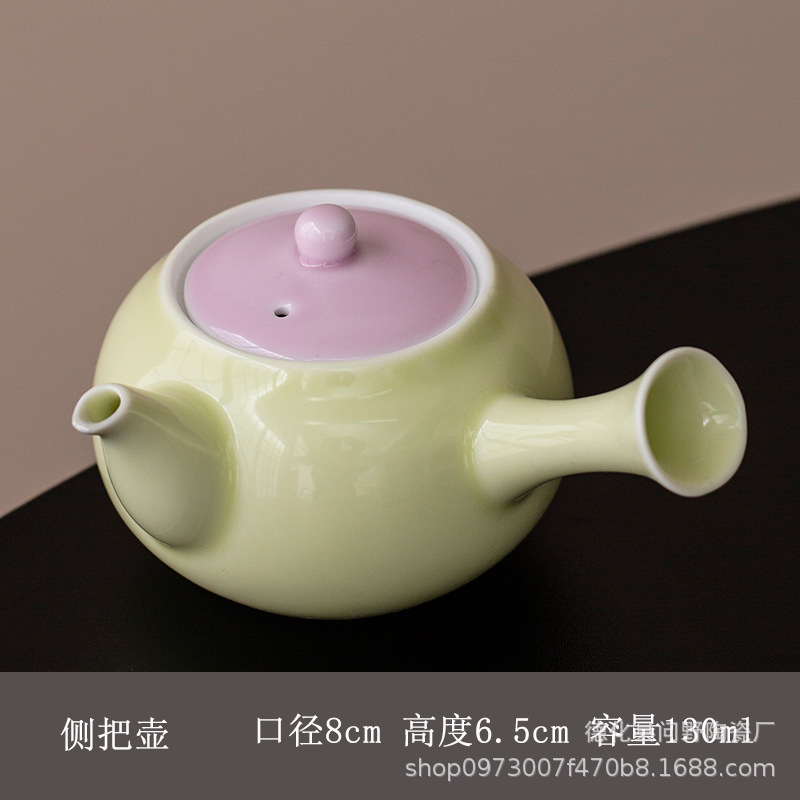 Ấm trà tay cầm bên gốm sứ tươi mới ấm trà ấm trà ấm trà ấm trà phòng trà cổ điển ấm trà tráng men màu Trung Quốc gia dụng