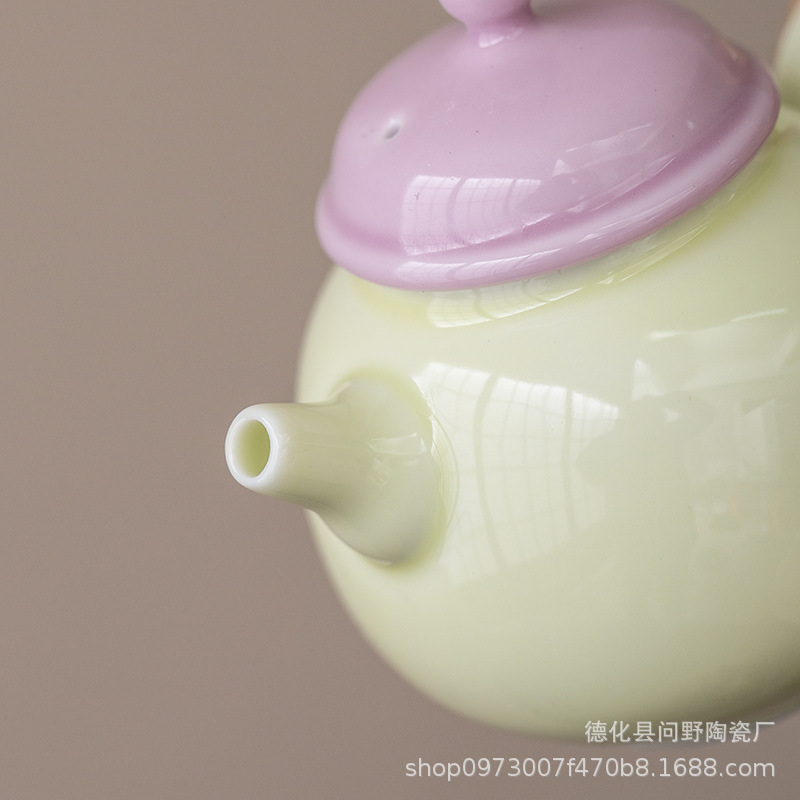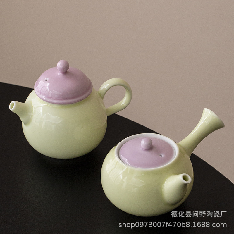 - Ấm trà tay cầm bên gốm sứ tươi mới ấm trà ấm trà ấm trà ấm trà phòng trà cổ điển ấm trà tráng men màu Trung Quốc gia dụng