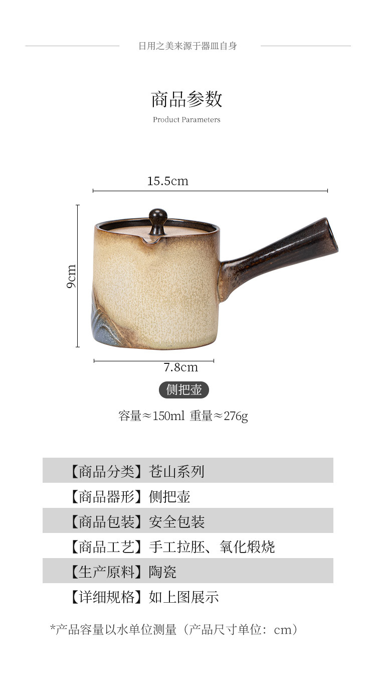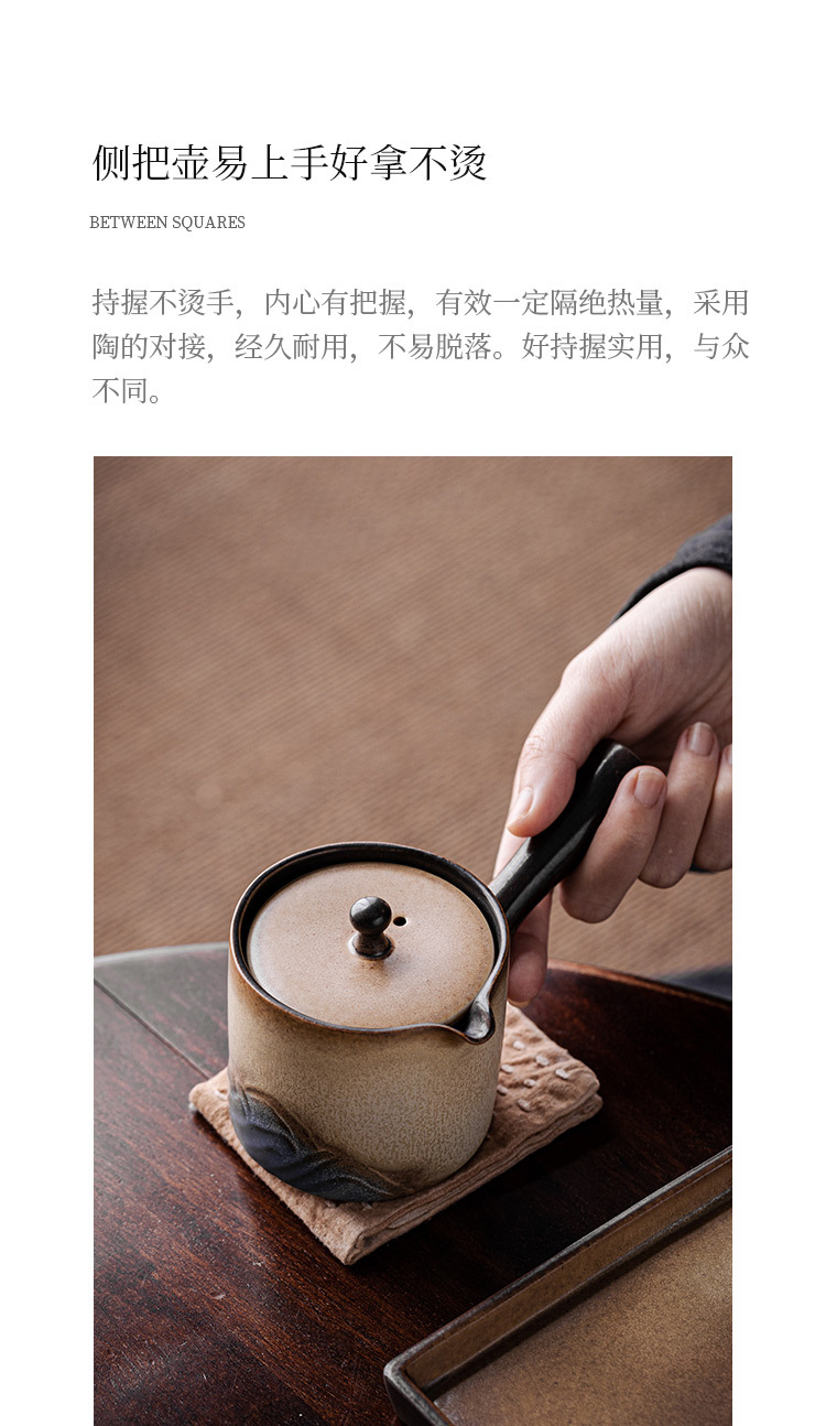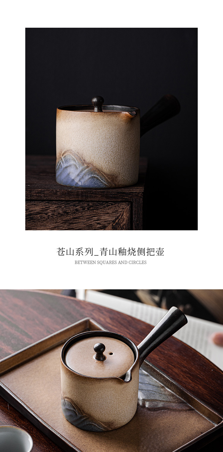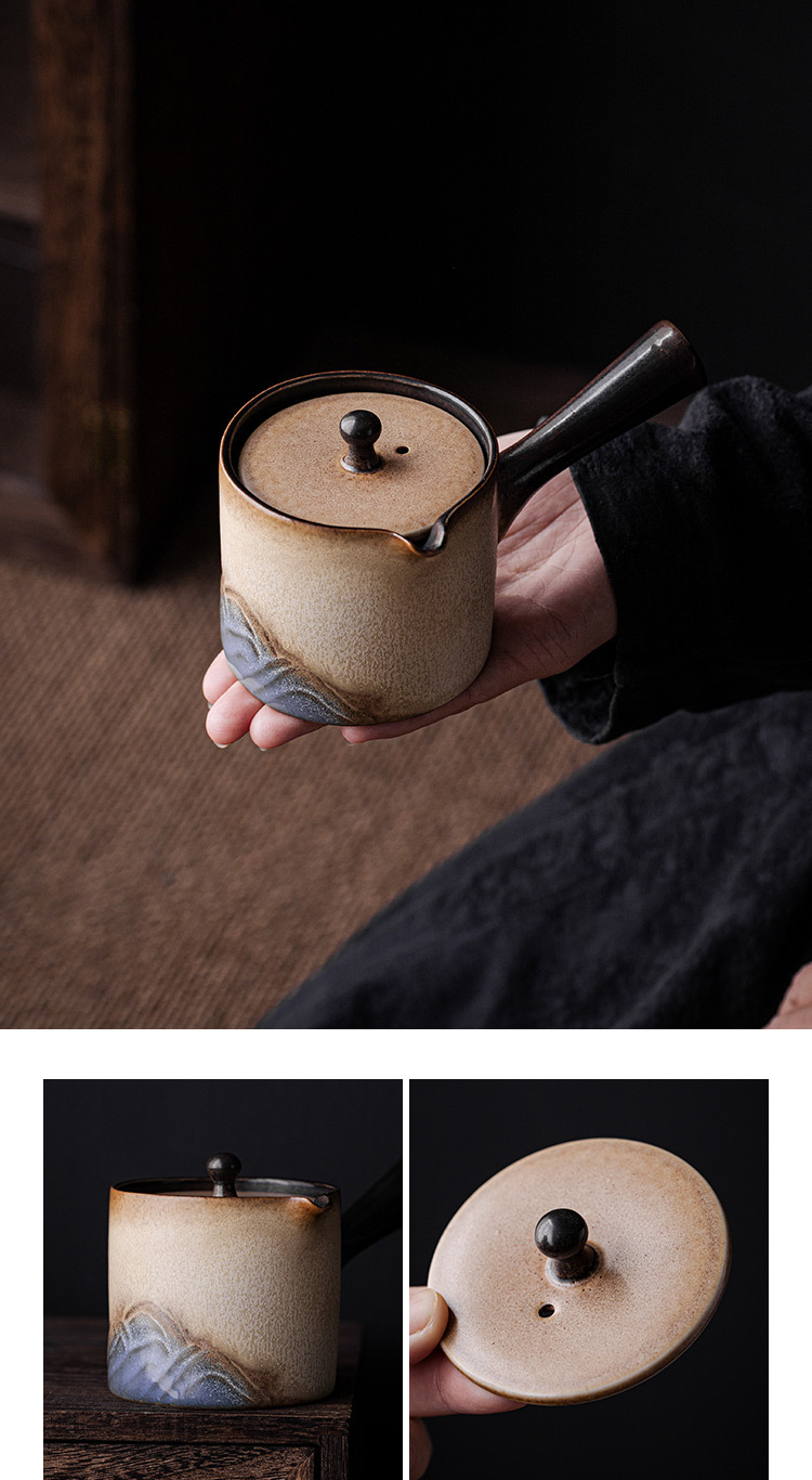 - Ấm trà tay cầm bên Lò Nung Cangshan dụng cụ pha trà Kung Fu gốm cổ điển gia dụng có tay cầm chống bỏng Lọc ấm đơn
