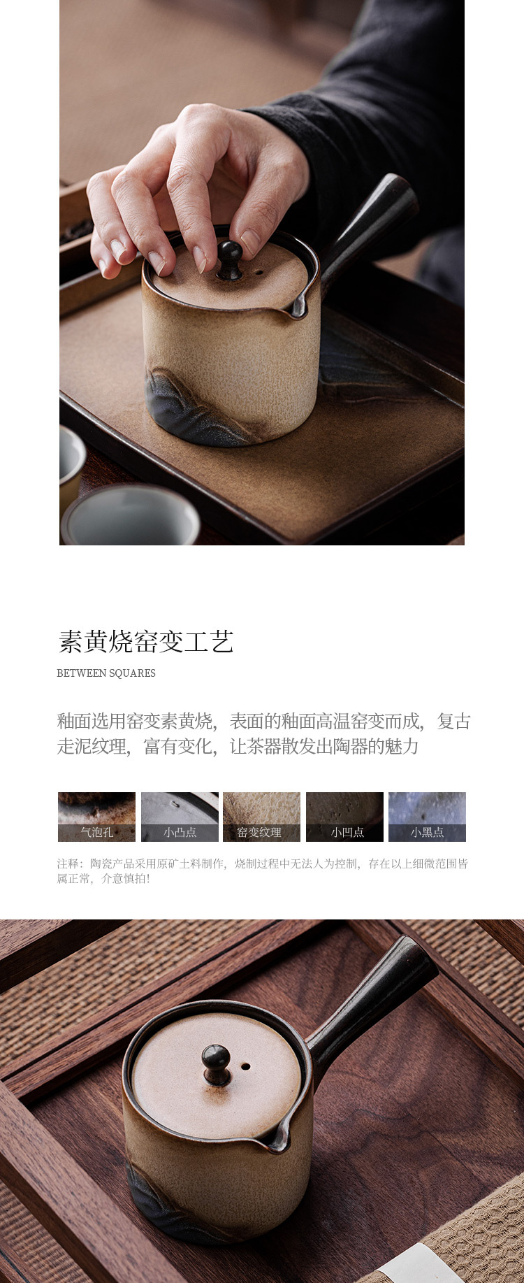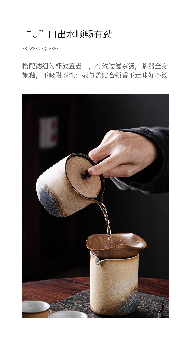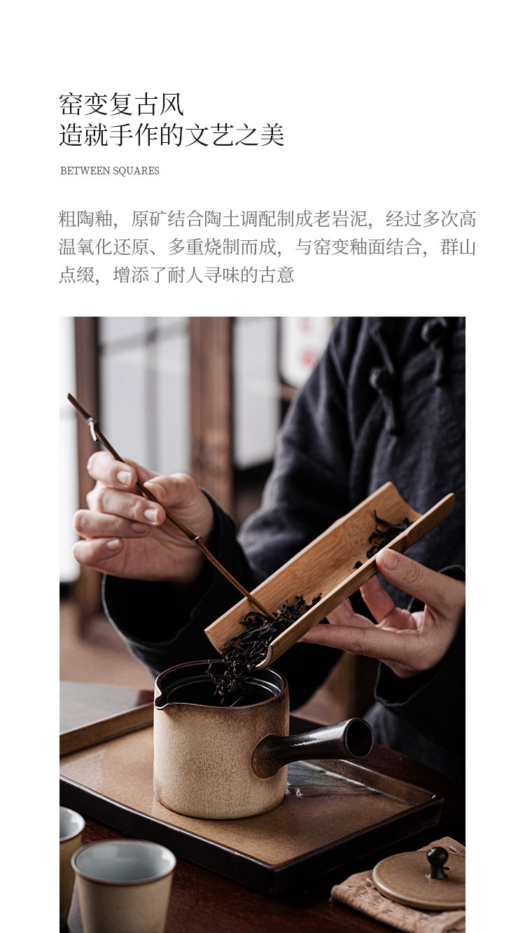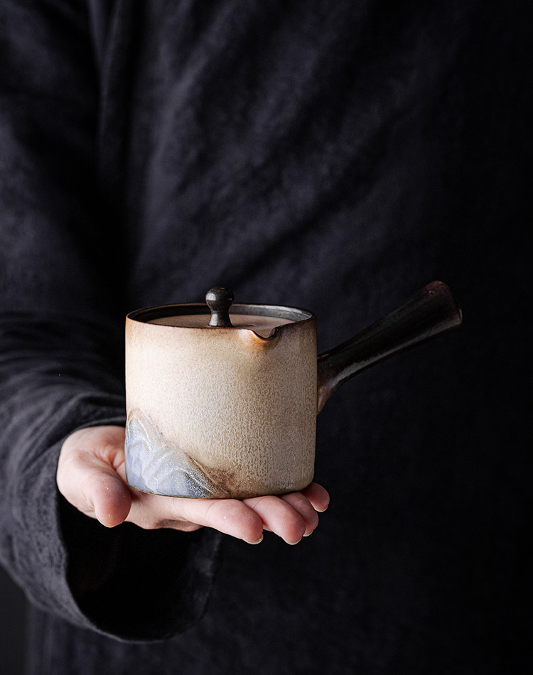 - Ấm trà tay cầm bên Lò Nung Cangshan dụng cụ pha trà Kung Fu gốm cổ điển gia dụng có tay cầm chống bỏng Lọc ấm đơn