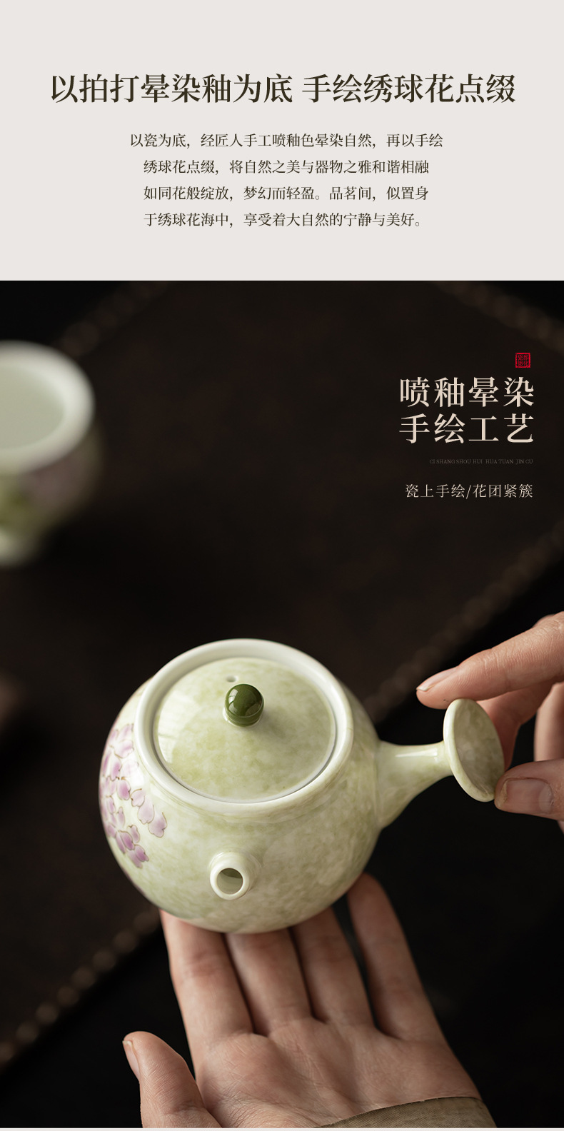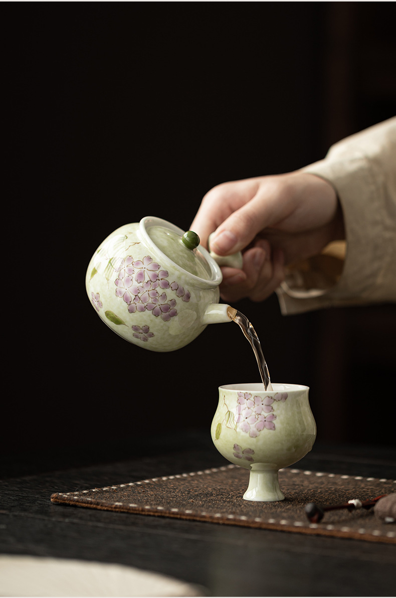 - Ấm trà tay cầm hoa cẩm tú cầu vẽ tay ấm trà gốm sứ gia dụng ấm trà Kung Fu thủ công Trung Quốc cho bé gái