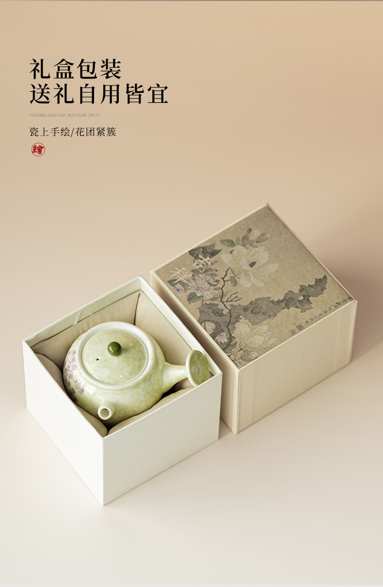 Ấm trà tay cầm hoa cẩm tú cầu vẽ tay ấm trà gốm sứ gia dụng ấm trà Kung Fu thủ công Trung Quốc cho bé gái