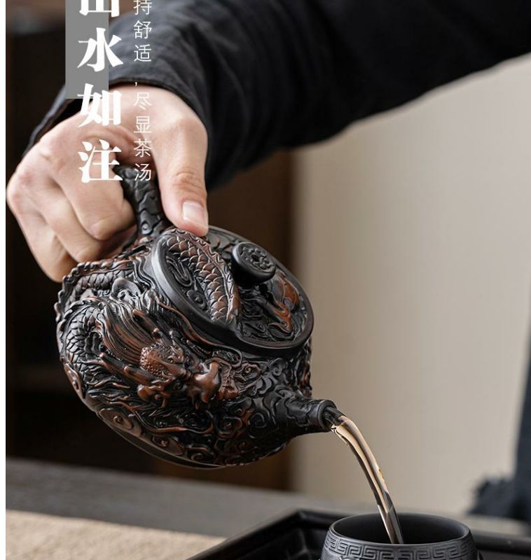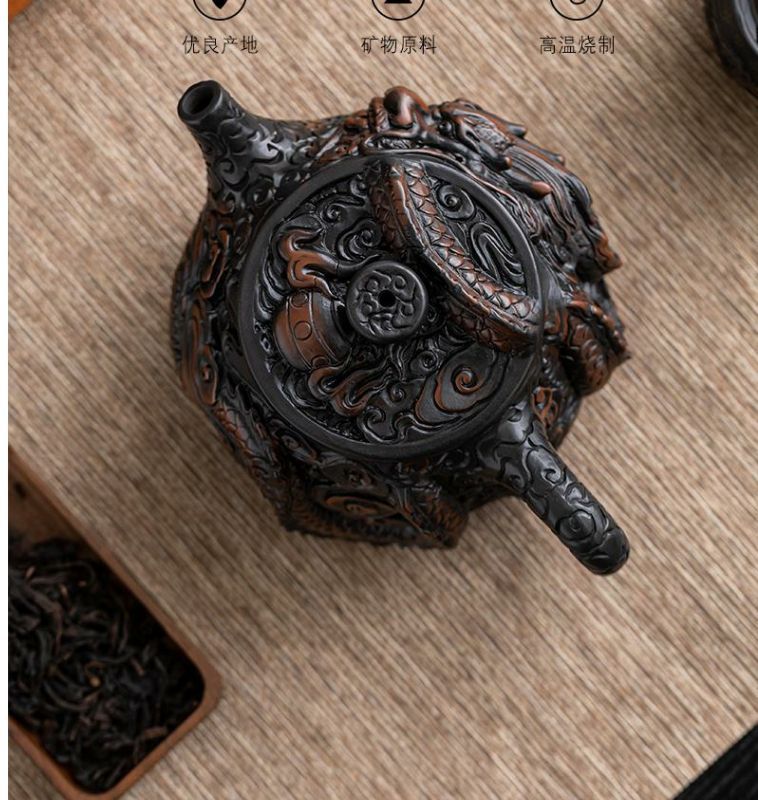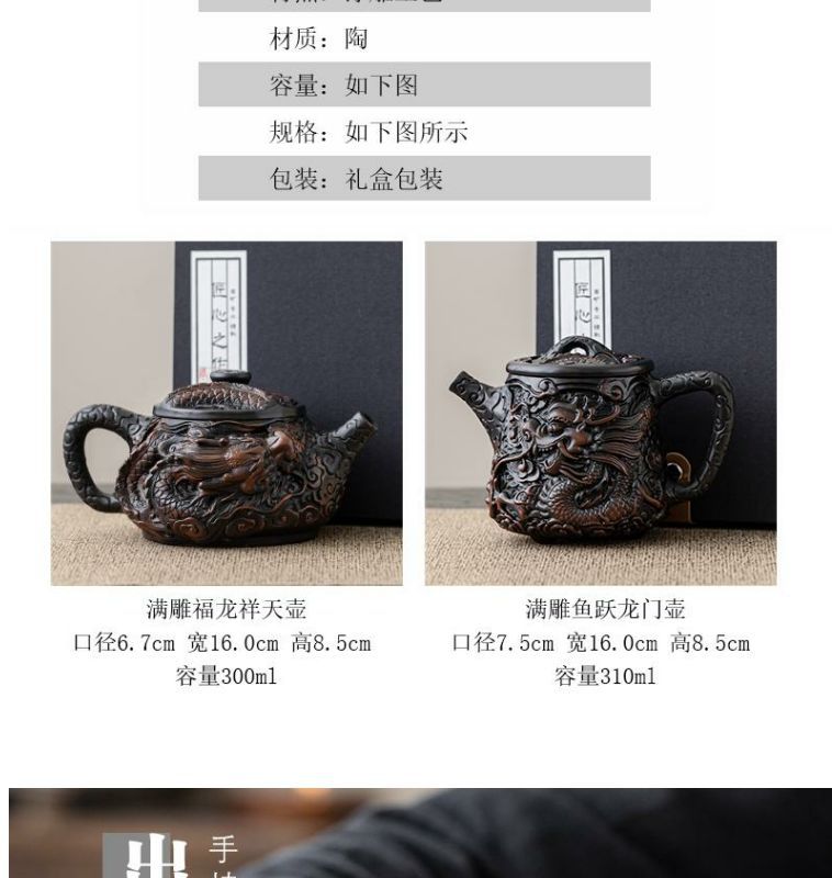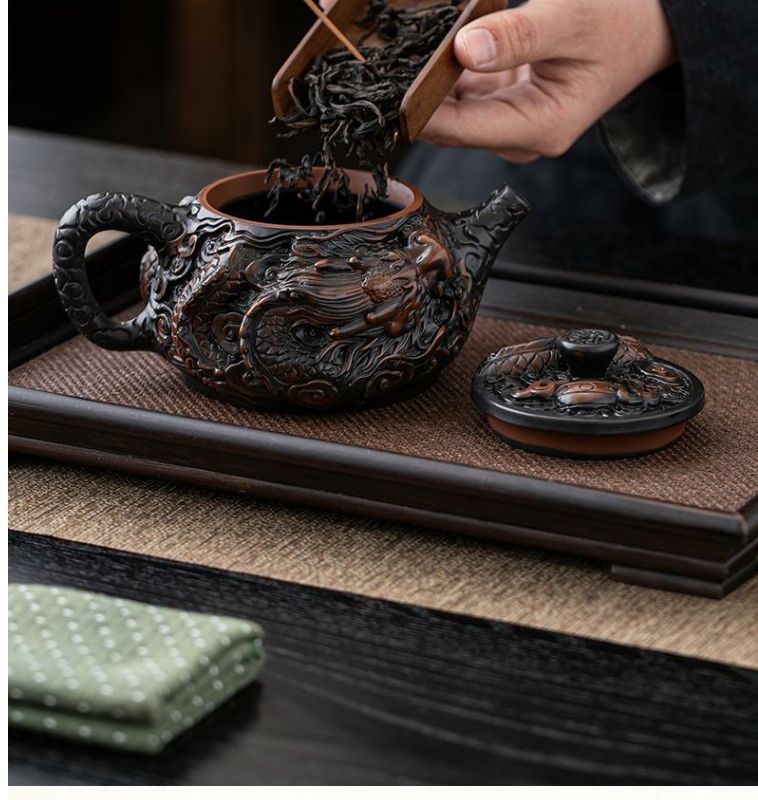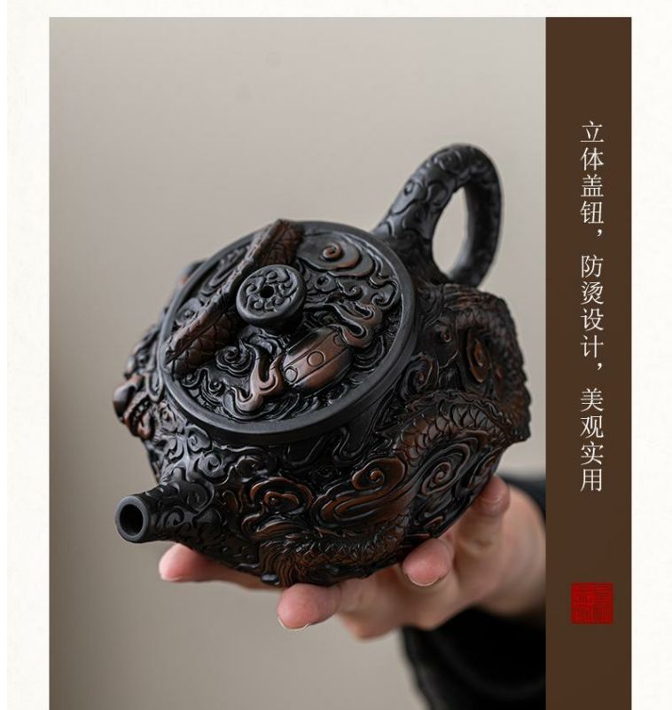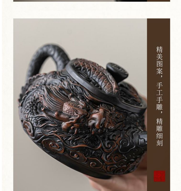 - Ấm trà thủ công ấm trà đất sét tím nguyên chất đầy chạm khắc rồng tốt lành dụng cụ pha trà Kung Fu dung tích lớn ấm trà cao cấp chạm khắc ba chiều